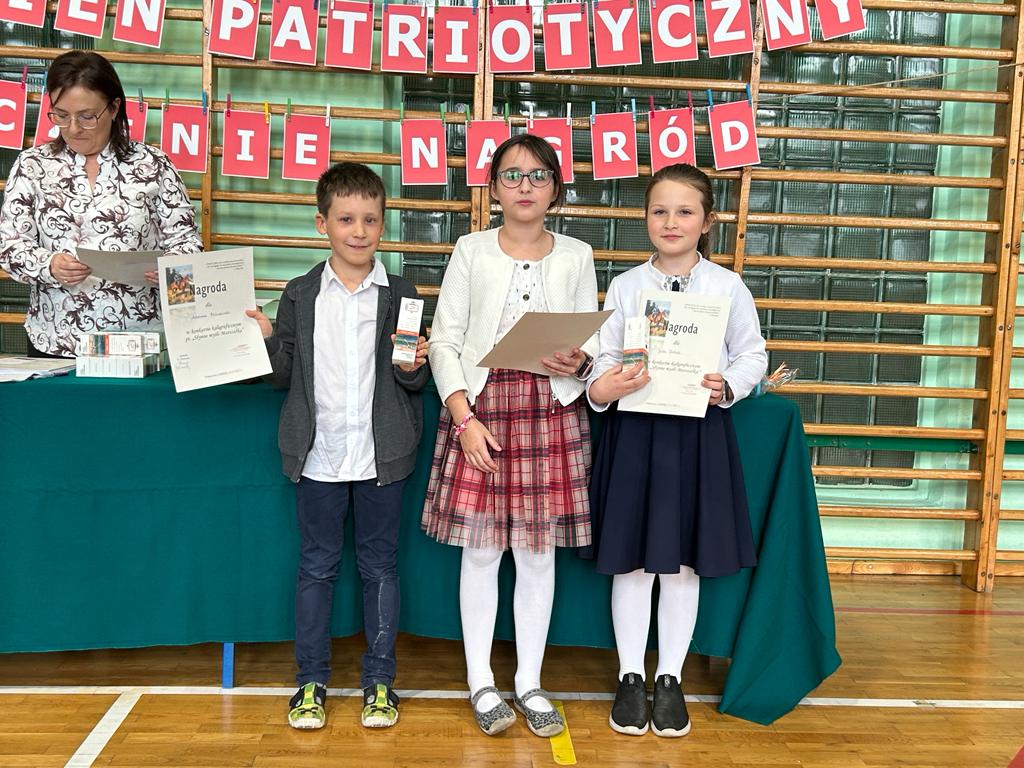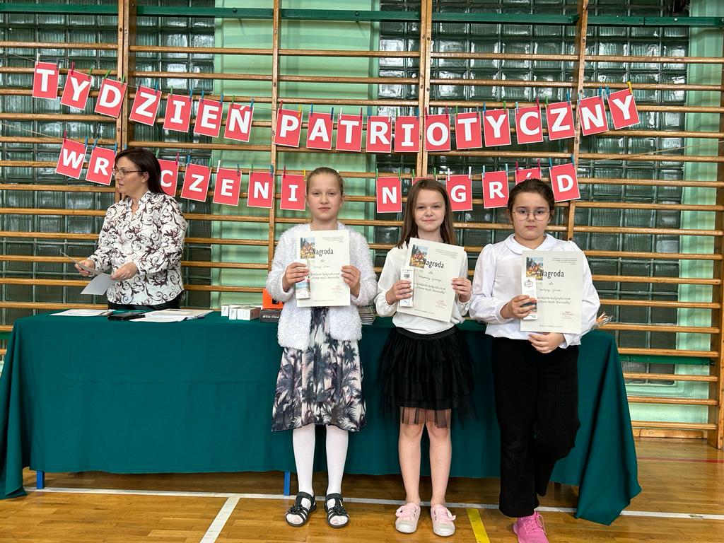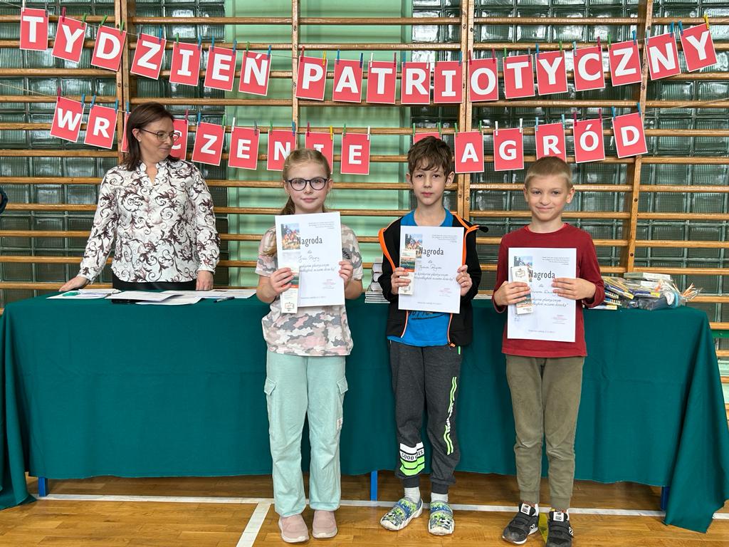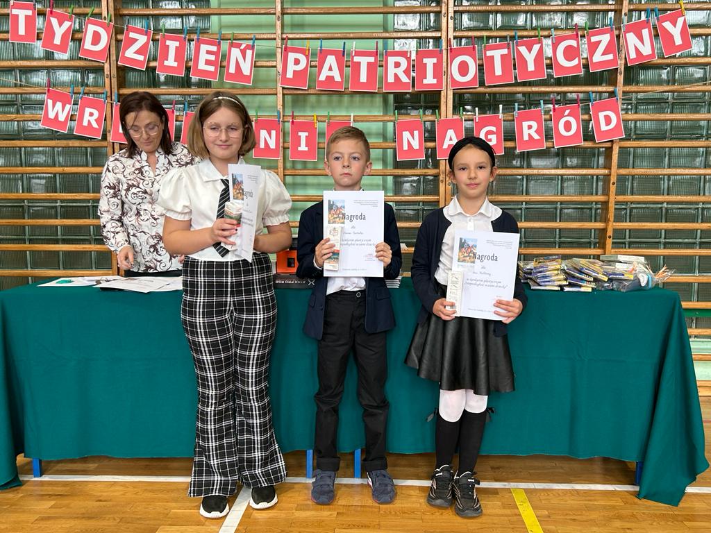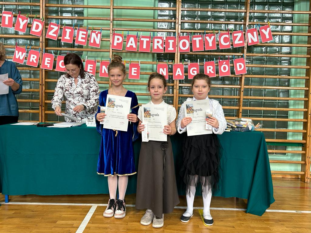 W tygodniu patriotycznym, poprzedzającym Święto Szkoły oraz Dzień Niepodległości, miało miejsce rozstrzygnięcie konkursów, w których brali udział uczniowie klas I, II i III. A oto lista tych, którzy otrzymali nagrody:
