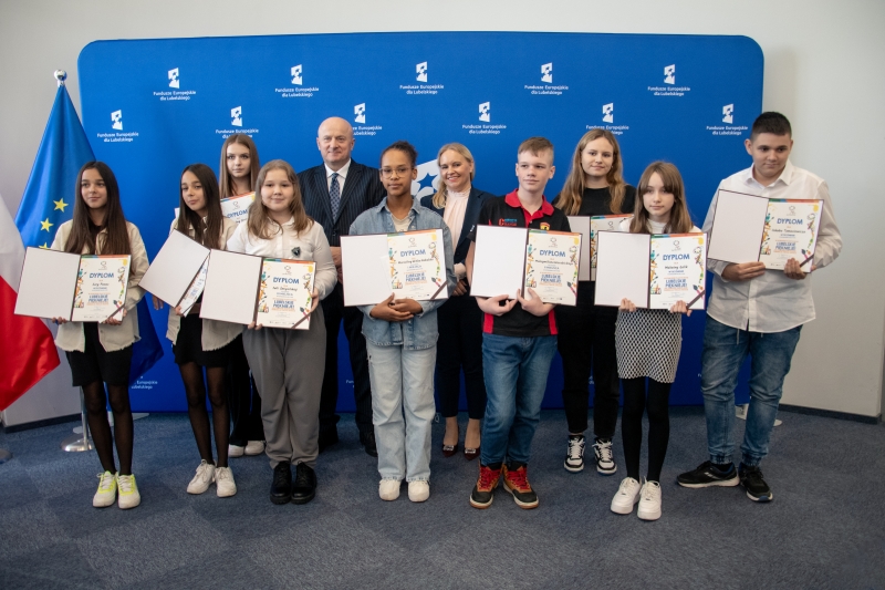 Kapituła konkursowa, na czele z Marszałkiem Województwa Lubelskiego Jarosławem Stawiarskim, spośród 421 nadesłanych prac, wybrała laureatów konkursu plastycznego, który skierowany był do uczniów klas I-VIII szkół podstawowych z województwa lubelskiego, a jego celem był rozwój umiejętności plastycznych wśród dzieci oraz popularyzowanie wiedzy o Funduszach Europejskich. Reprezentujące naszą szkołę i nasze miasto Laura i Sara PANAS z kl. VII B zostały laureatkami konkursu, zdobywając za swoje prace wyróżnienia. Zadanie konkursowe polegało na stworzeniu pracy plastycznej , której tematem są zmiany, jakie zaszły w najbliższym otoczeniu Uczestnika, dzięki środkom z Funduszy Europejskich. Była to dobra okazja do oderwania się od ekranu komputera czy smartfona i pobudzenia kreatywności u dzieci i młodzieży. Konkurs podzielony został na dwie kategorie wiekowe. W każdej z kategorii Jury konkursu wybrało 3 laureatów i 10 wyróżnionych. Celem konkursu było także zachęcenie nauczycieli i uczniów do czynnego zainteresowania się tematyką Funduszy Europejskich, skierowanie uwagi najmłodszych na zmiany, jakie nastąpiły w uch otoczeniu dzięki środkom z Unii Europejskiej, a także promocja efektów wdrażania Funduszy Europejskich w województwie lubelskim. To także okazja do zaprezentowania szerszej publiczności swojej twórczości. Konkursy plastyczne połączone z Funduszami Europejskimi pozwalają rozwijać wyobraźnię plastyczną i uświadamiać, jak wiele w naszym otoczeniu zmienia się dzięki Unii Europejskiej.