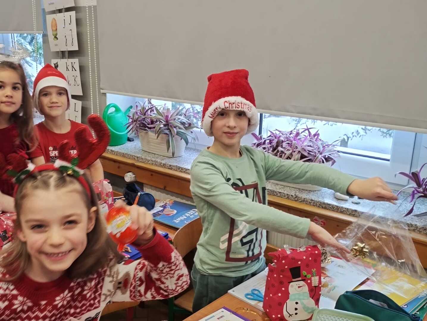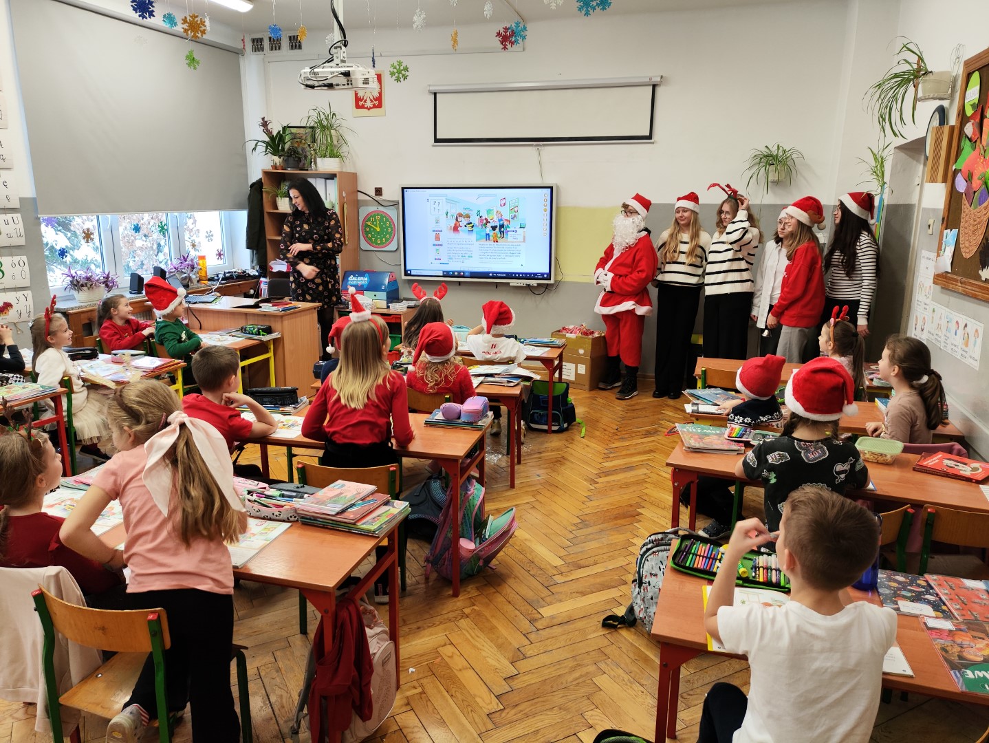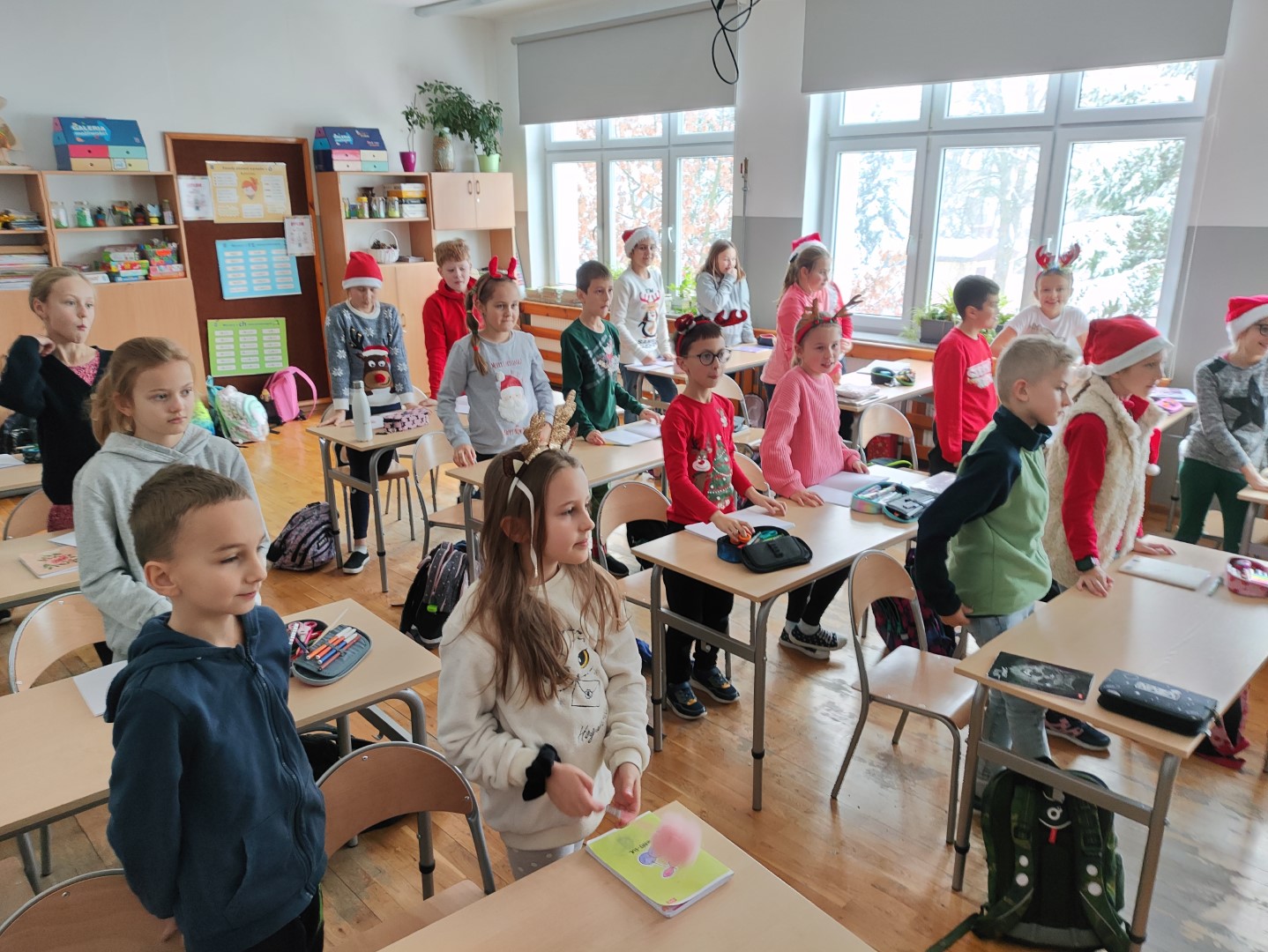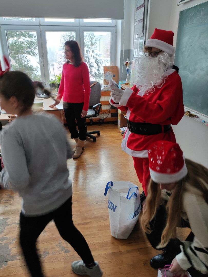 Szósty grudnia to data, którą zna każde dziecko i każdy dorosły. Mikołajki w naszej szkole już na stałe wpisały się w kalendarz wydarzeń. W tym roku również nie zabrakło radości i uśmiechów. Wszyscy uczniowie ubrani byli dziś w stroje z akcentem mikołajkowym a Samorząd Uczniowski w strojach elfów i Świętego Mikołaja obdarowywał prezentami uczniów i nauczycieli.