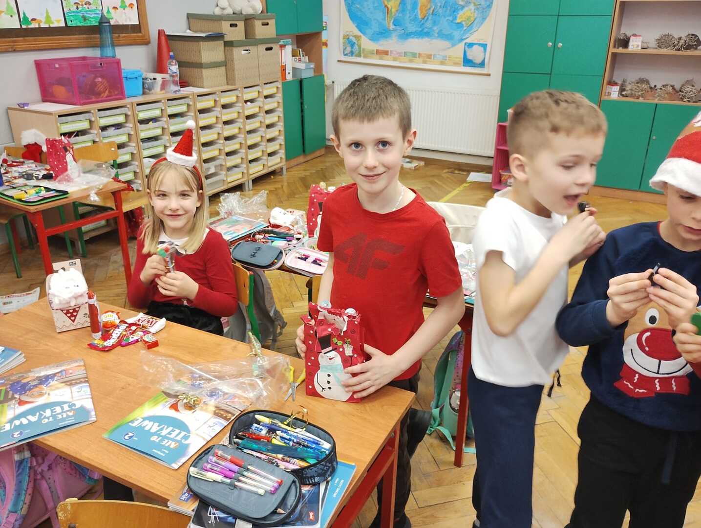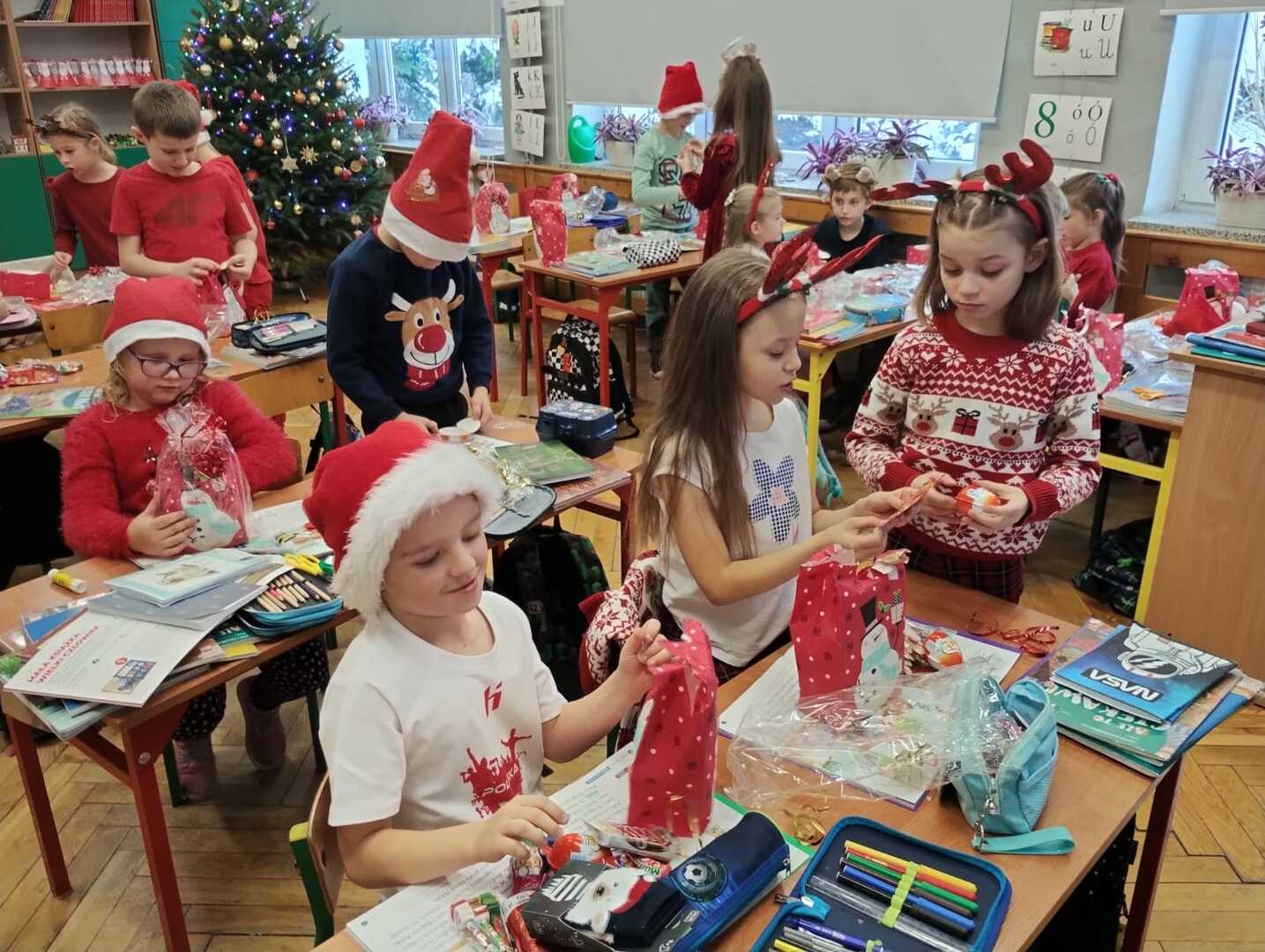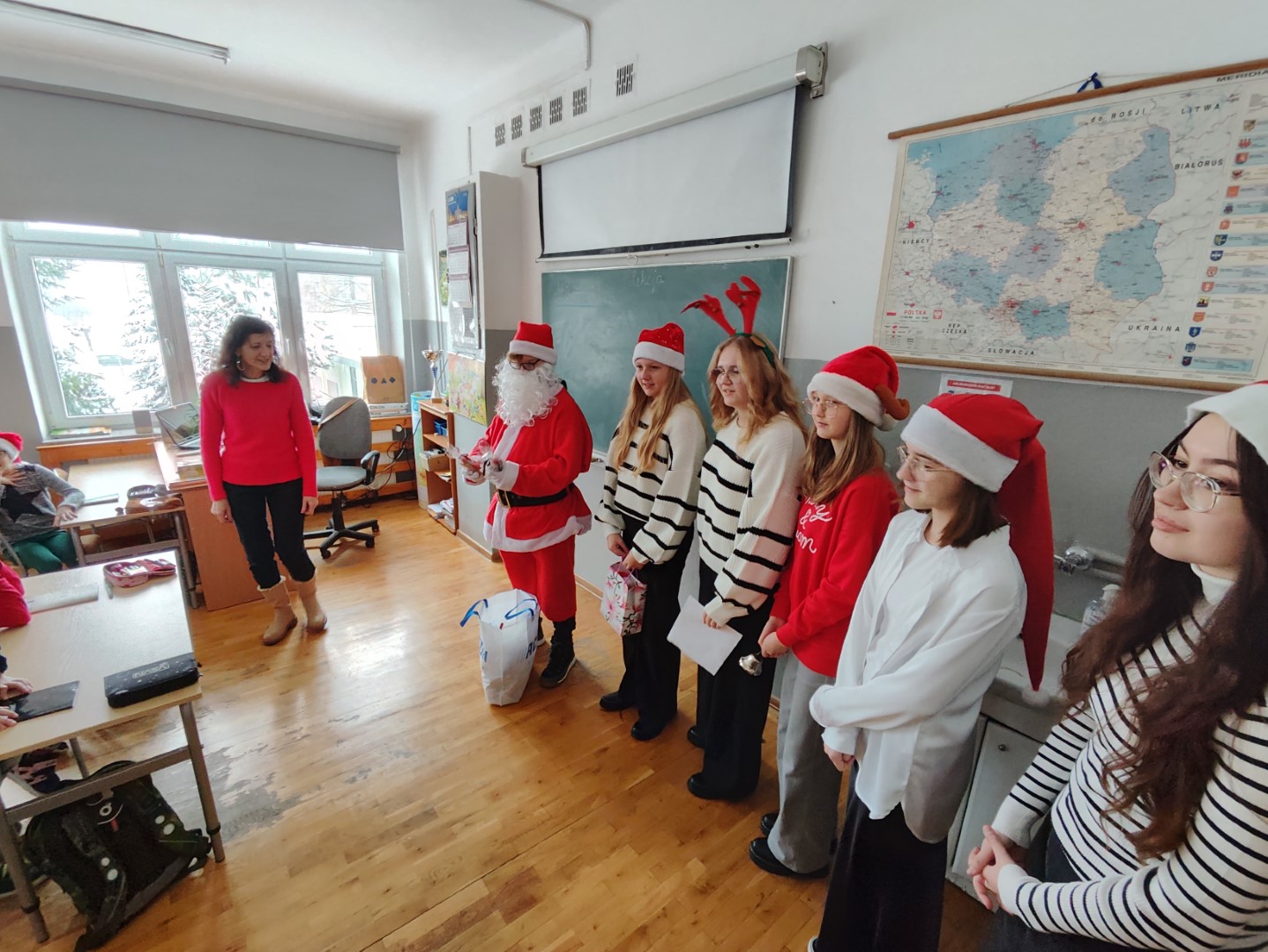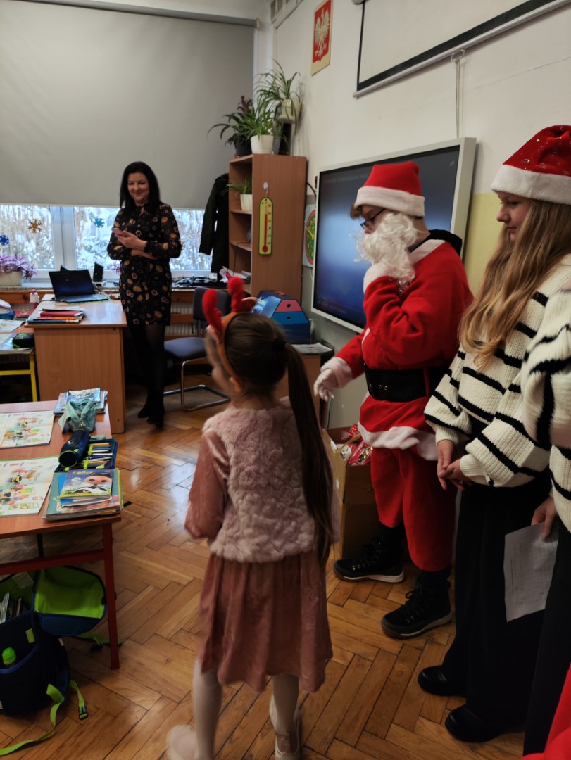 Szósty grudnia to data, którą zna każde dziecko i każdy dorosły. Mikołajki w naszej szkole już na stałe wpisały się w kalendarz wydarzeń. W tym roku również nie zabrakło radości i uśmiechów. Wszyscy uczniowie ubrani byli dziś w stroje z akcentem mikołajkowym a Samorząd Uczniowski w strojach elfów i Świętego Mikołaja obdarowywał prezentami uczniów i nauczycieli.