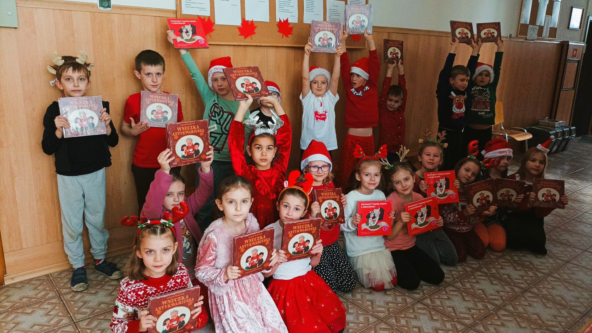 Jak co roku, Instytut Książki przeprowadził kolejną edycję kampanii „Mała książka – wielki człowiek”, której celem jest promocja czytelnictwa wśród dzieci. Jednym z jej elementów są działania na rzecz najmłodszych uczniów, którzy dopiero rozpoczynają naukę w szkole podstawowej. Wszyscy pragniemy zachęcić uczniów do częstego sięgania po książki i regularnego czytania, zarówno samodzielnego, jak i z udziałem najbliższych: rodziców, dziadków, opiekunów i nauczycieli. Aby zrealizować ten cel, każdemu uczniowi klasy pierwszej naszej szkoły podarowano specjalną Wyprawkę Czytelniczą. W skład Wyprawki wchodzi: