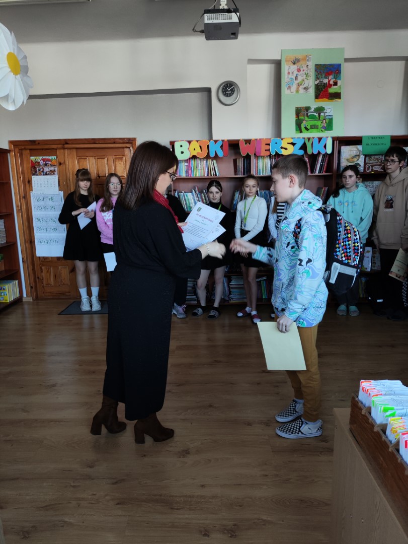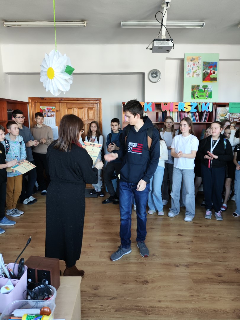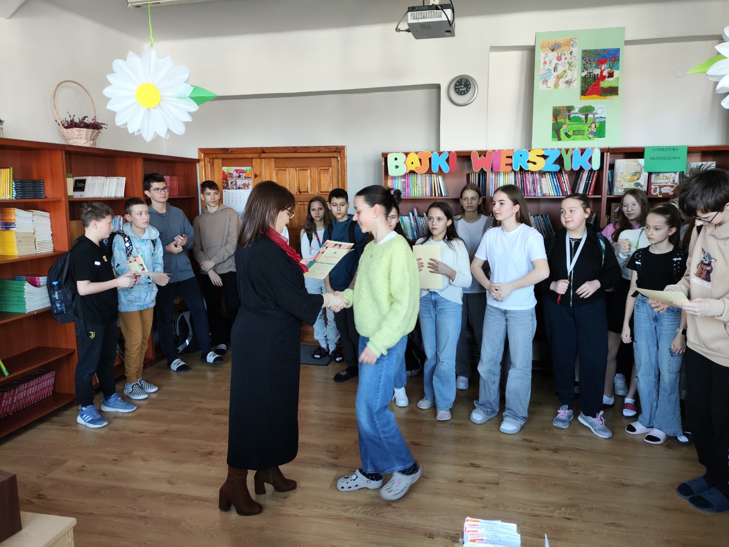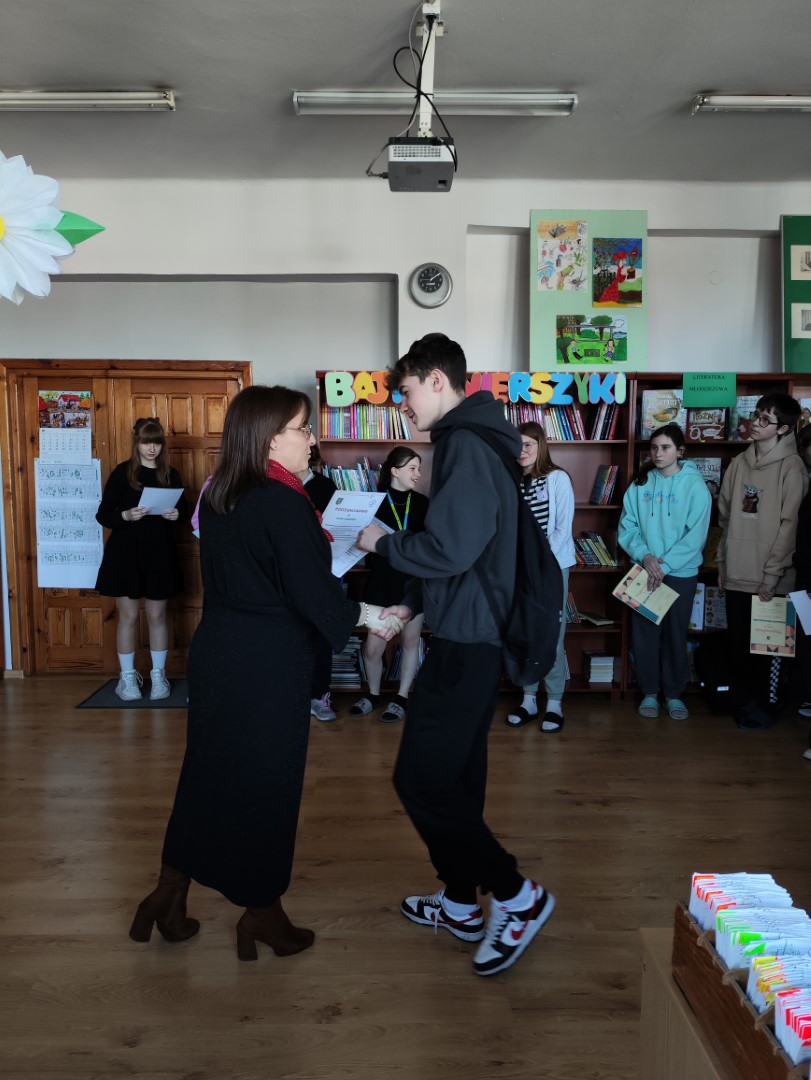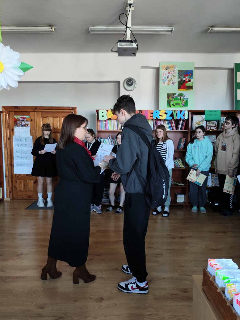W dniu 8 marca 2024 w bibliotece szkolnej zostały rozdane pamiątkowe dyplomy dla uczniów którzy otrzymali stypendia w perwszym półroczu za osiagnięcia naukowe i sportowe oraz uczestniczyli jako wolontariusze w róznych akcjach i przedsięwzięciach szkolnych. Gratulujemy wszystkim wyróżnionym 👏