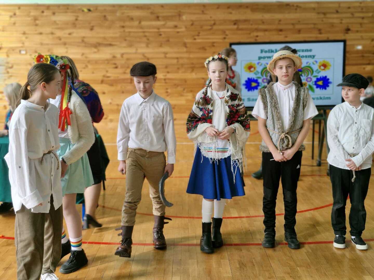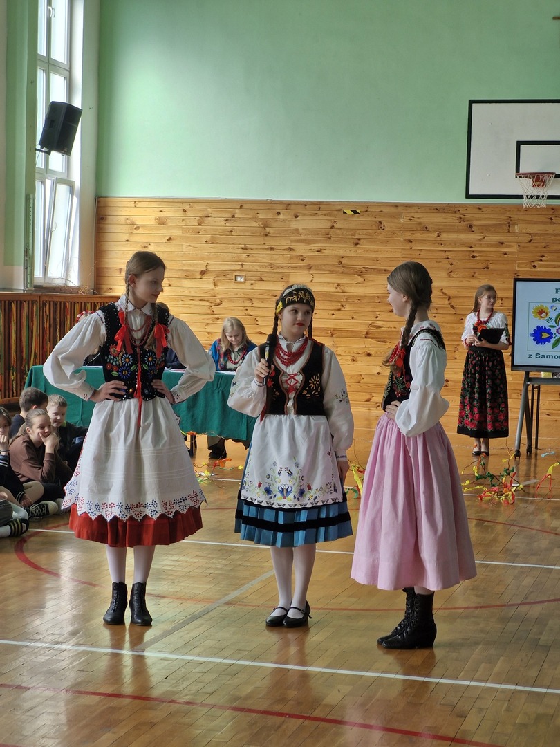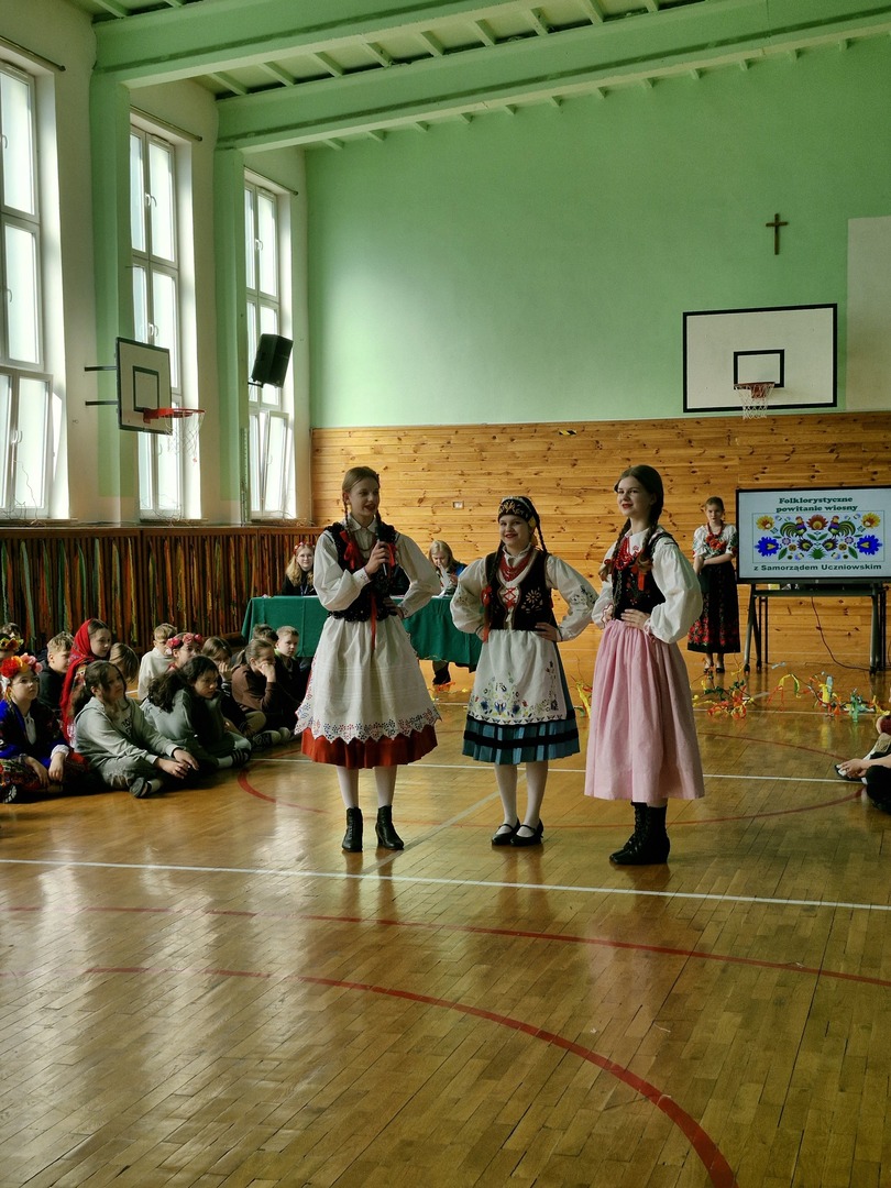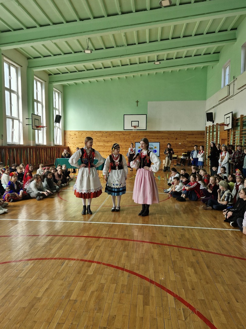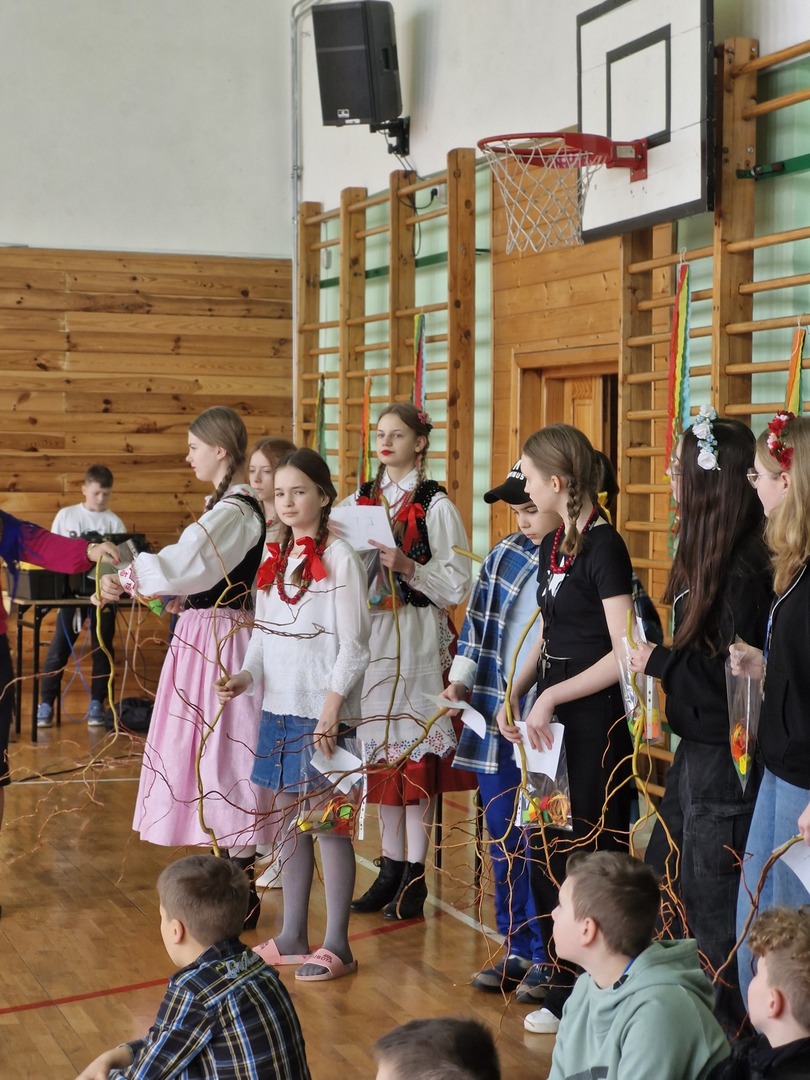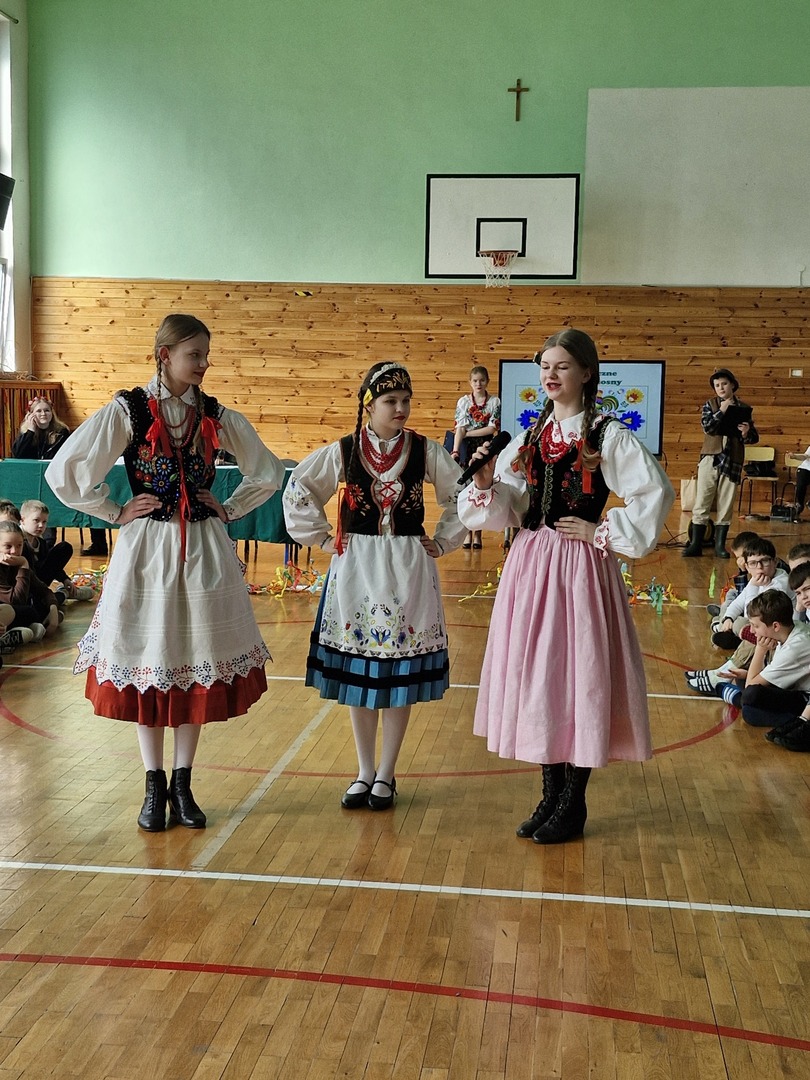 Wczoraj powitaliśmy kalendarzową wiosnę. Samorząd Uczniowski zorganizował z tej okazji konkursy pod hasłem „Folklorystyczne powitanie wiosny” na sali gimnastycznej. Klasy 4, 5, 6 i 7 wykonywały na czas „Gaik- maik”, ludowy symbol wiosny oraz rozwiązywały wspólnie test wiedzy o wsi. Indywidualnie uczniowie zaprezentowali stroje, w które się przebrali. Dodatkową atrakcją była prezentacja oryginalnych strojów ludowych. Nasze koleżanki ubrały na tę okazję stroje, w których występują w Zespole Pieśni i Tańca „Roztocze”. Dziewczyny opowiedziały z jakiego regionu Polski pochodzą stroje, a także z jakich elementów składa się każdy strój. Dziękujemy wszystkim, którzy zaangażowali się w przygotowanie i zorganizowanie tego wydarzenia.