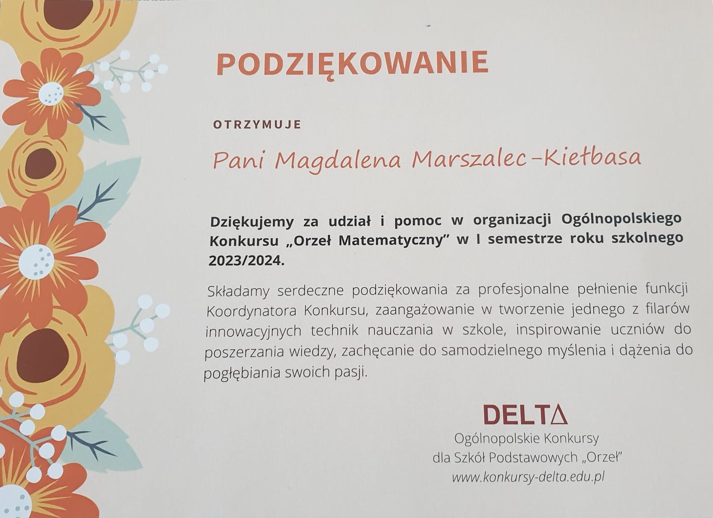 Koordynatorem konkursu z ramienia szkoły była pani Magdalena Marszalec-Kiełbasa