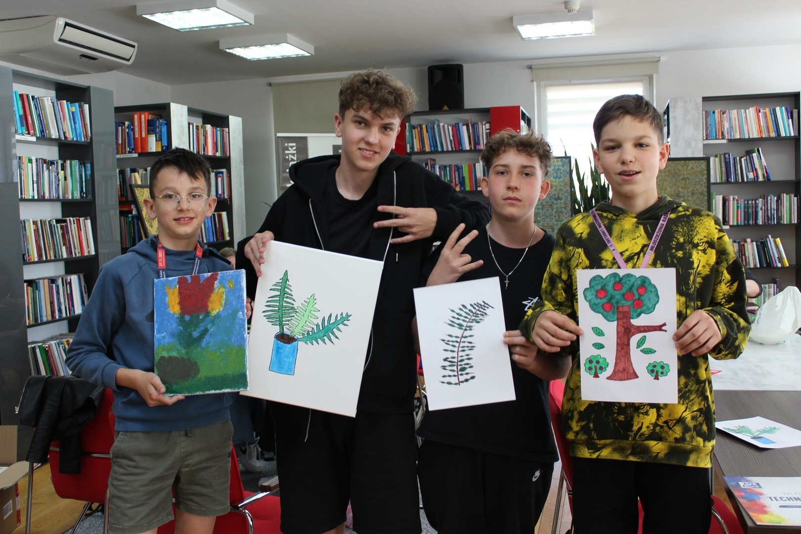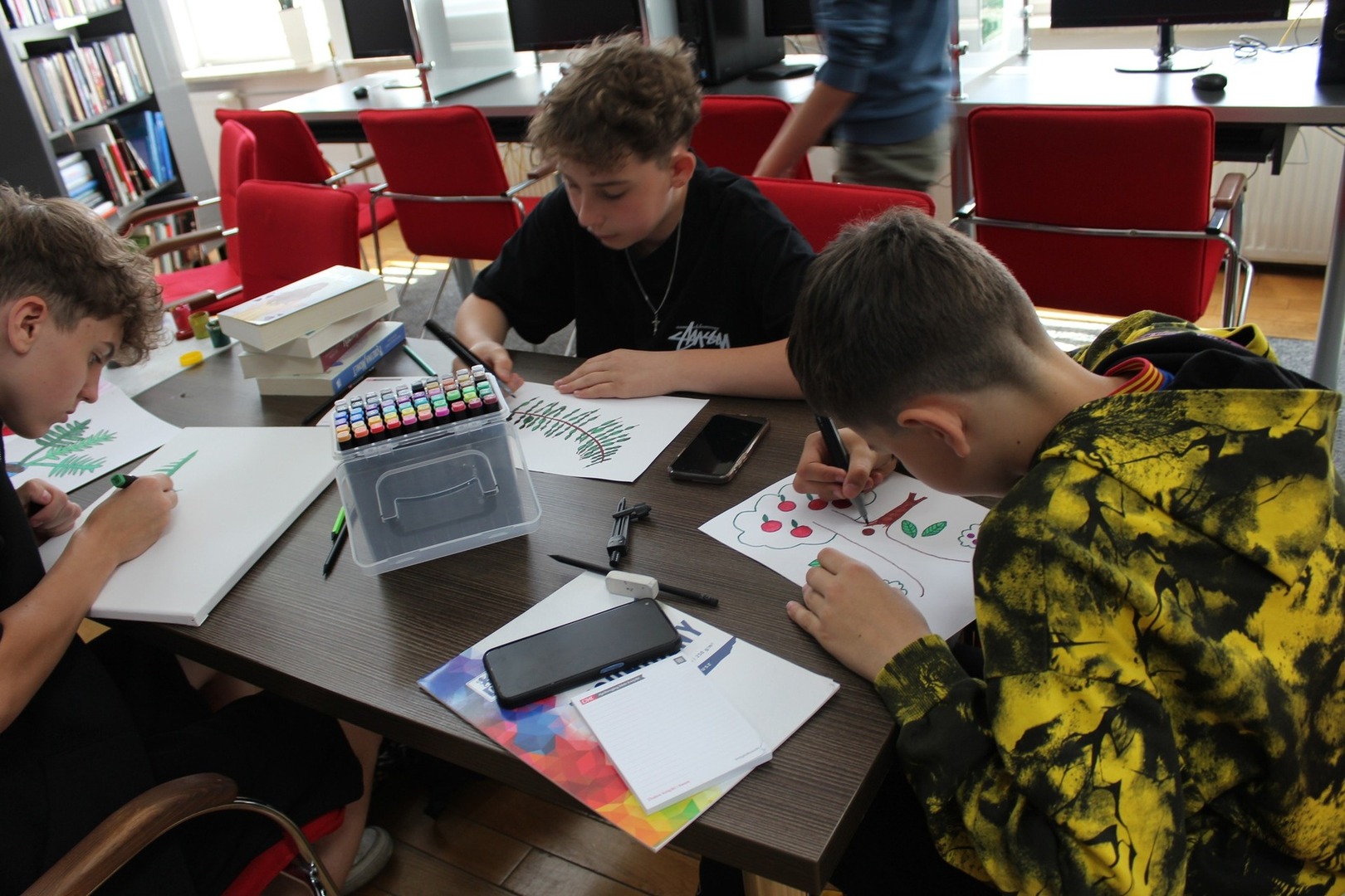 Warto wspomnieć, że pan Przemysław jest absolwentem Gimnazjum Nr 2, które w rozmowie z nami wspominał z ogromnym sentymentem. Specjalnie dla klubowiczów poprowadził warsztaty z rysunku i malarstwa pod hasłem „Flora” udzielając cennych rad i wskazówek. Inspiracji do swoich prac uczestnicy warsztatów szukali w bogatym księgozbiorze biblioteki oraz w przestworzach wirtualnych. A całe spotkanie przebiegło w przemiłej i twórczej atmosferze.