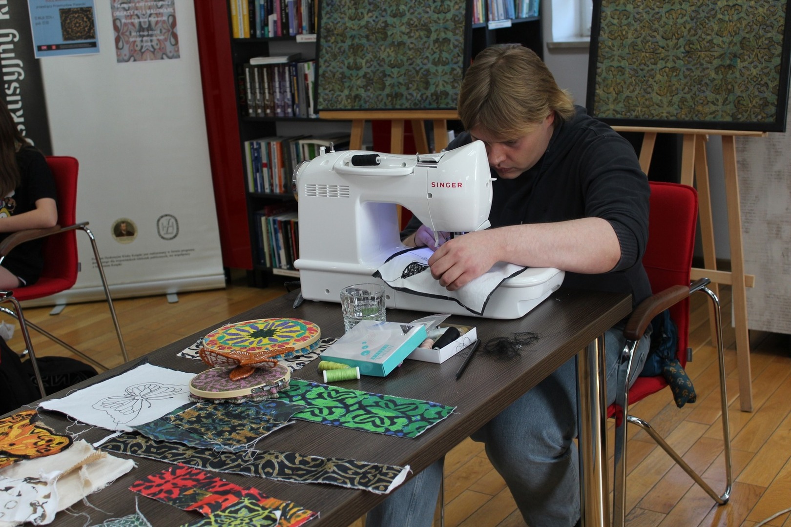 13 maja 2024 r. Członkowie Młodzieżowego DKK wzięli udział w niezwykle interesujących warsztatach z tkactwa artystycznego prowadzonych przez pana Przemysława Piaseckiego. Absolwent uczelni artystycznych w Polsce i Anglii zapoznał nas z tajnikami uprawianego przez siebie rzemiosła.