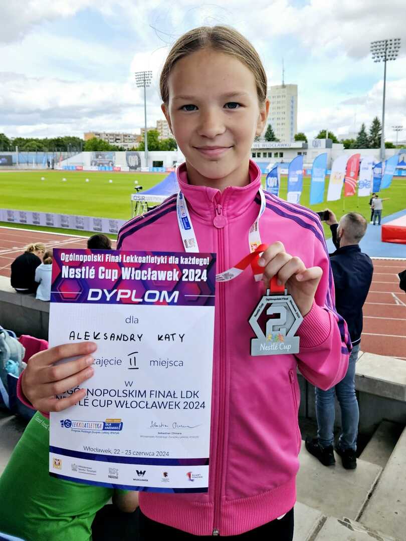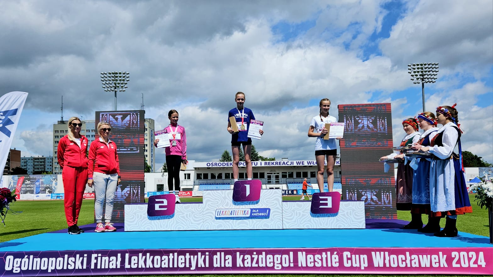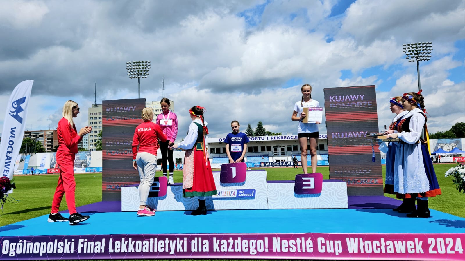 W dniach 22-23 czerwca 2024 roku we Włocławku odbył się "Ogólnopolski Finał Lekkoatletyki dla każdego!". Reprezentacja województwa lubelskiego została wyłoniona podczas finałów wojewódzkich w Lublinie 25 maja 2024r. Wśród reprezentantów naszego województwa znalazła się uczennica naszej szkoły Aleksandra Kata, która startowała w rzucie piłeczką palantową. Ola we Włocławku, po czterech rzutach eliminacyjnych, zakwalifikowała się do finału, w którym ostatecznie uplasowała się na drugim miejscu, zdobywając srebrny medal Finału Ogólnopolskiego. Trudne warunki atmosferyczne, duże emocje. Trzy dziewczynki na podium z identycznym wynikiem - 34m.