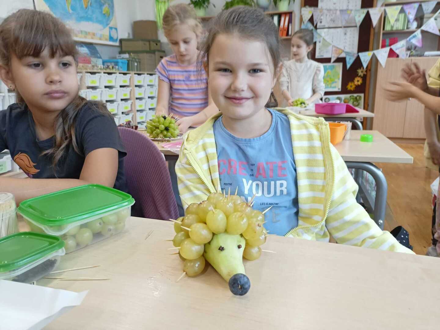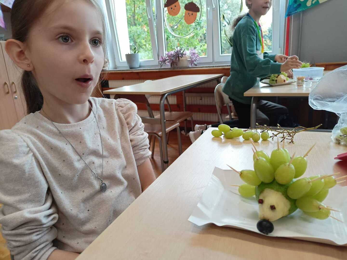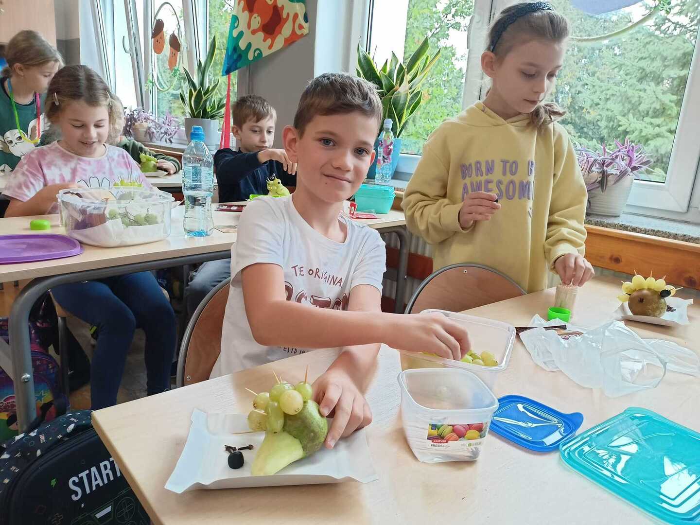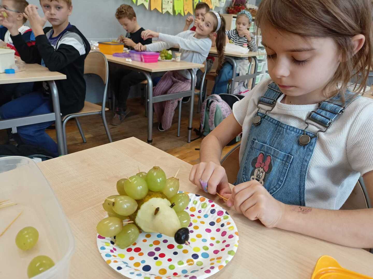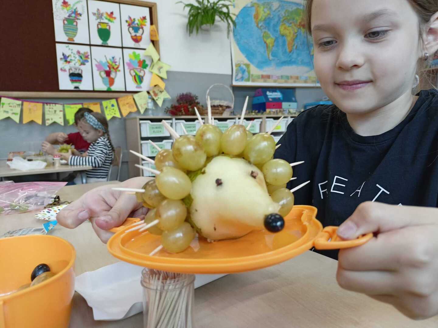 Uczniowie klasy II b podczas zajęć przygotowali wspaniałe owocowe jeże. Pierwsze kulinarne doświadczenia za nami. Było wesoło i pysznie.