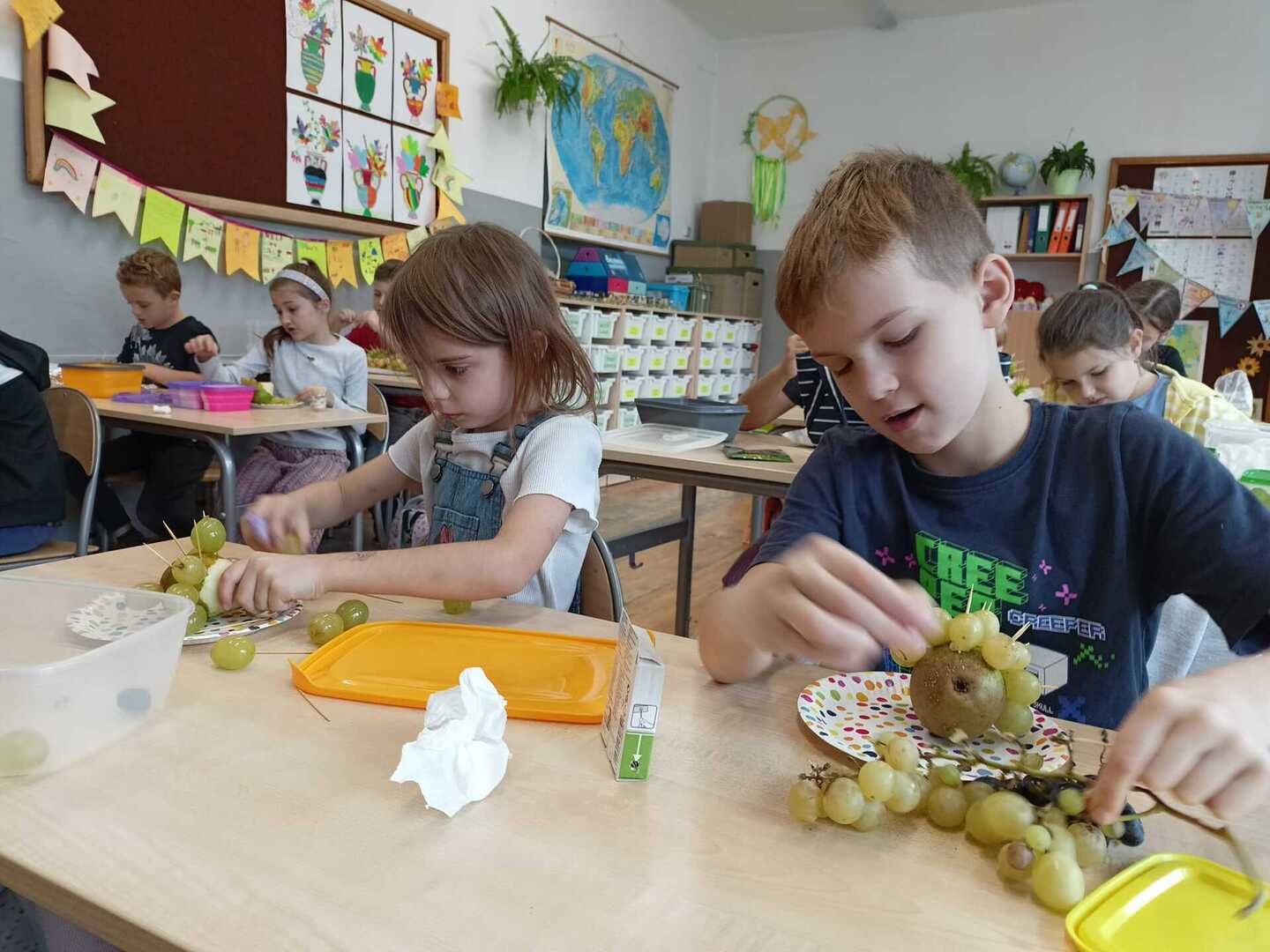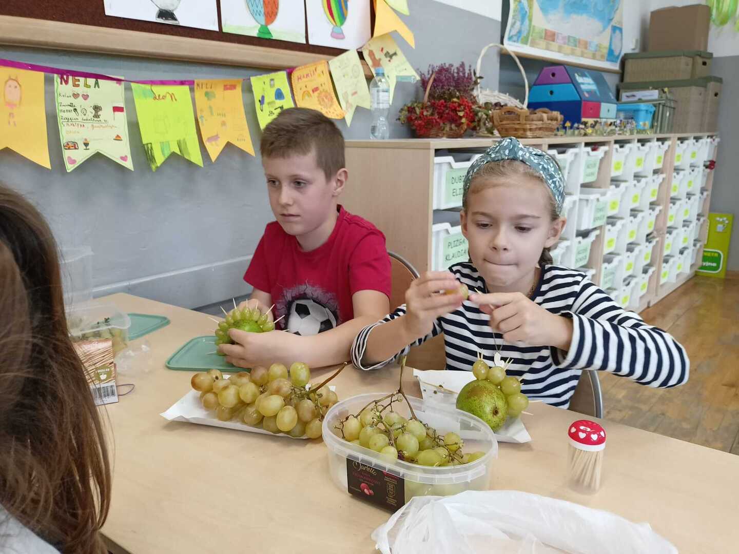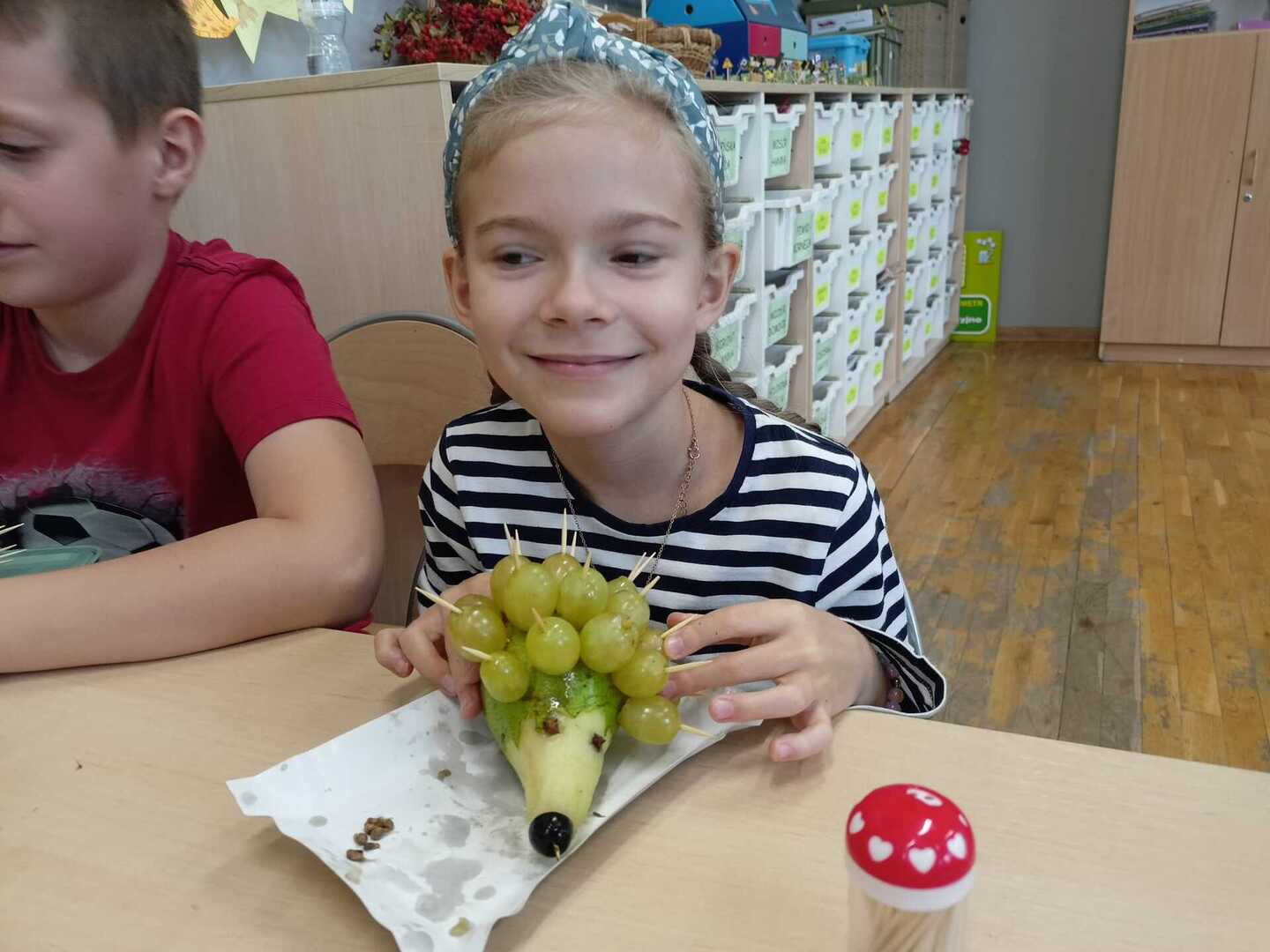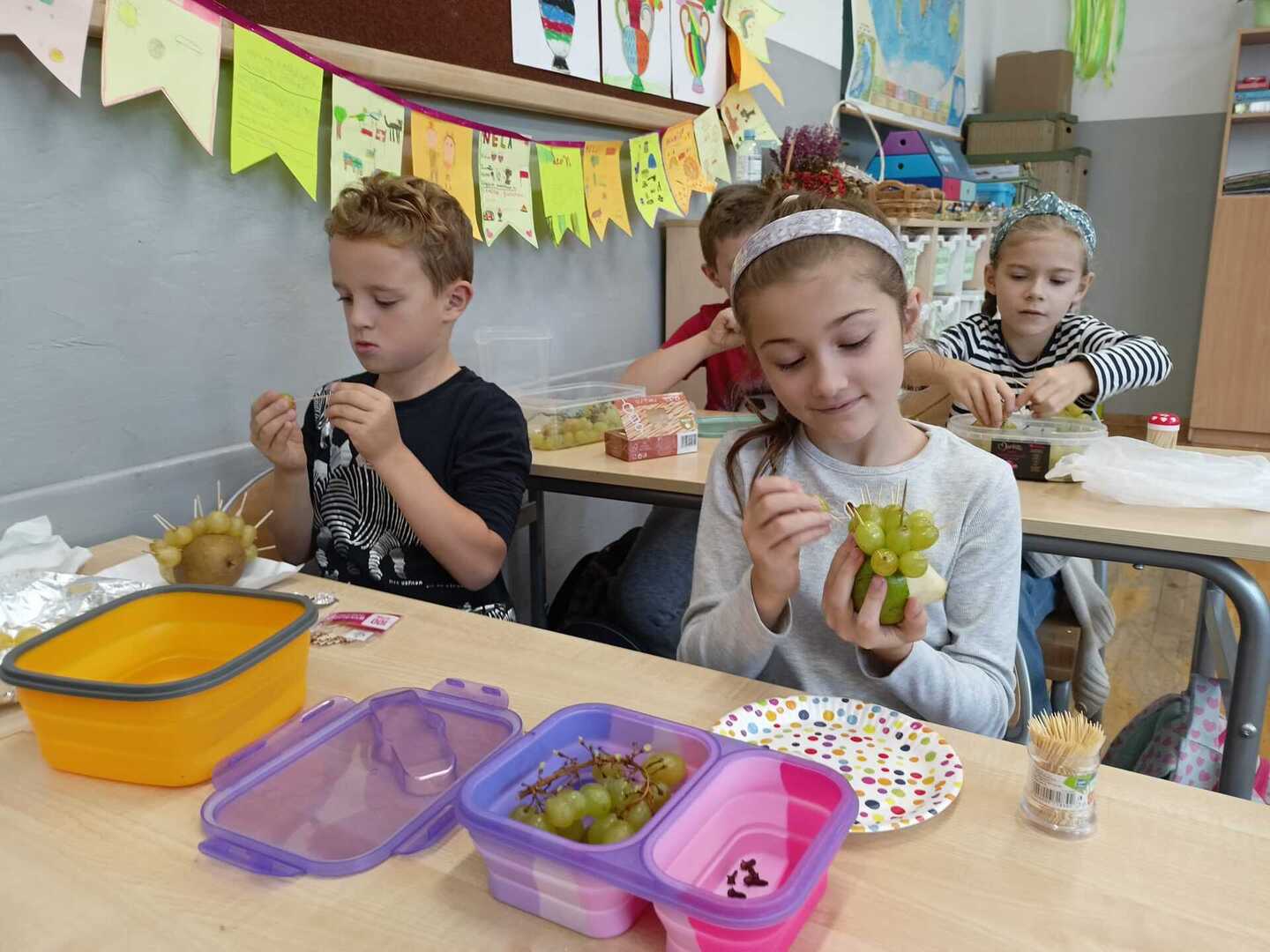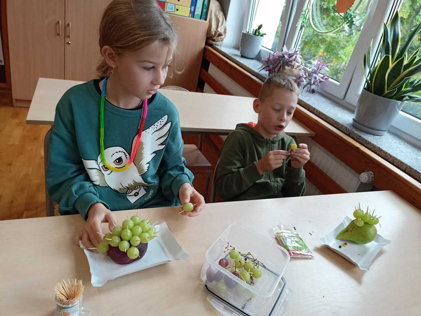 Uczniowie klasy II b podczas zajęć przygotowali wspaniałe owocowe jeże. Pierwsze kulinarne doświadczenia za nami. Było wesoło i pysznie.