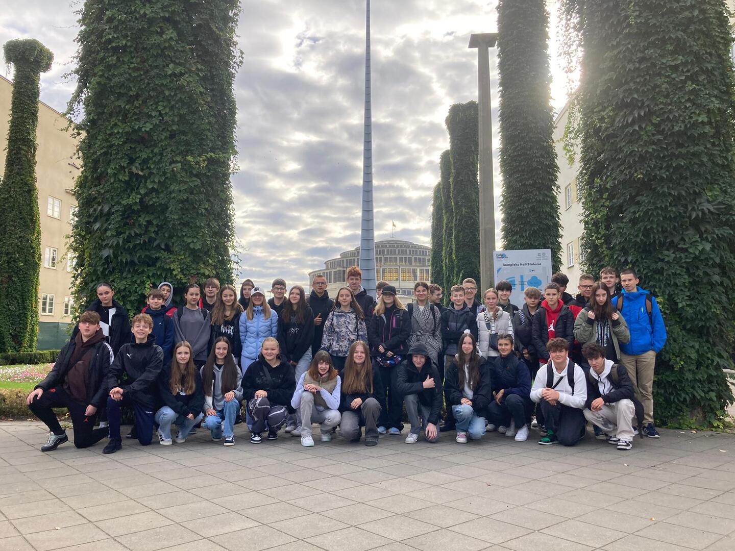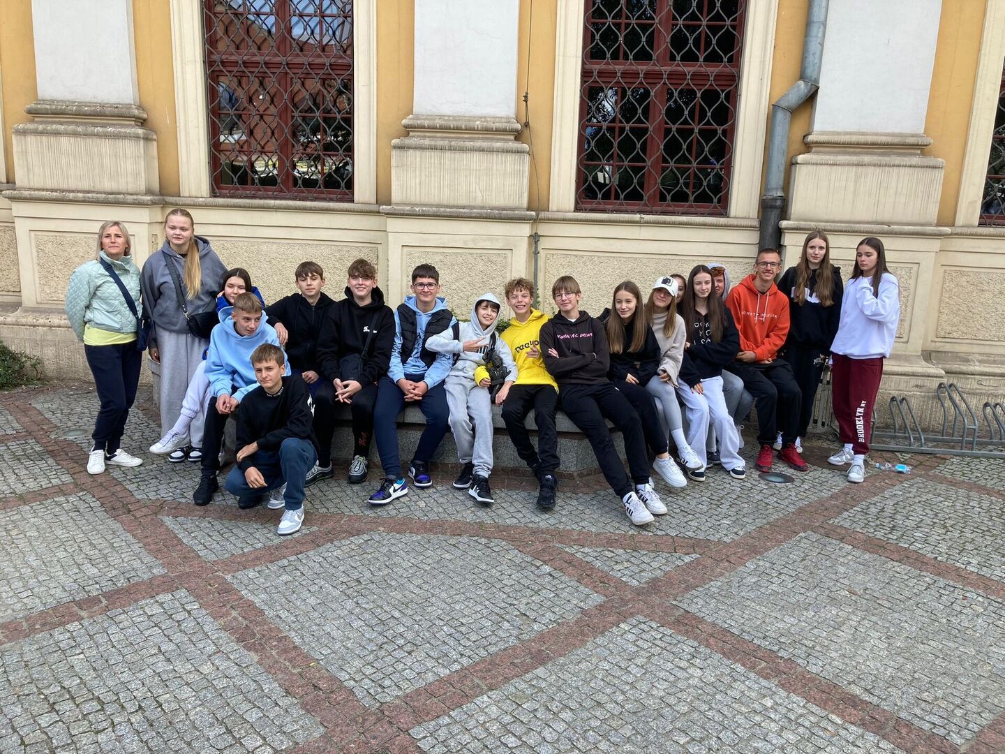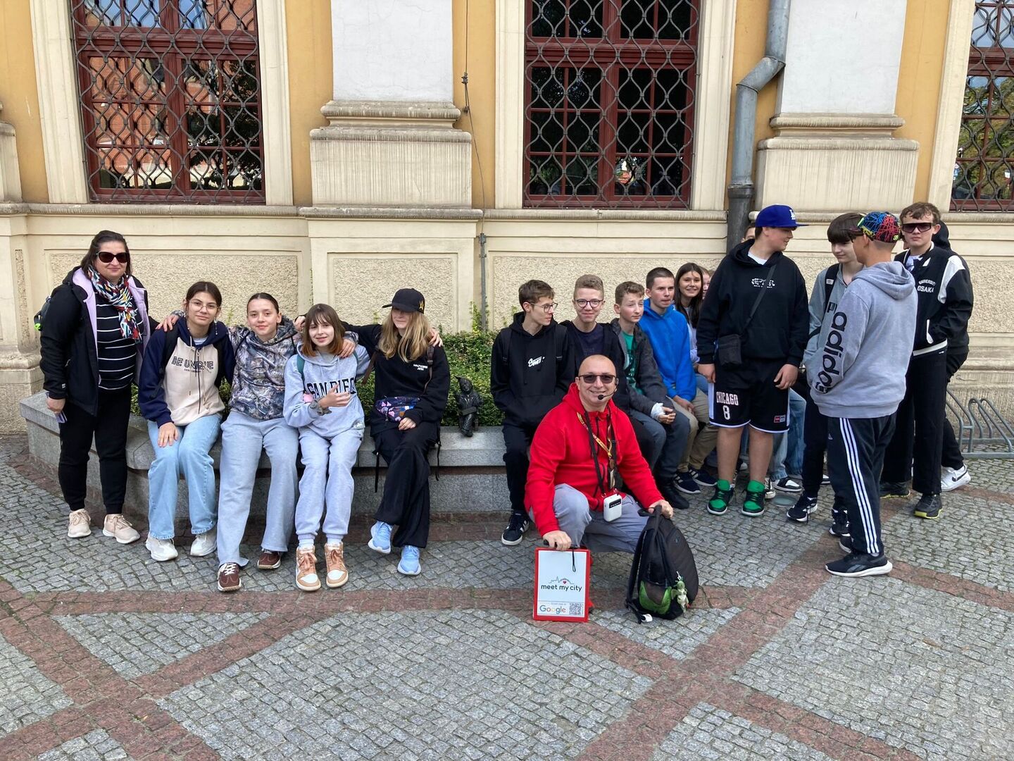 Na przełomie września i października klasy 8 „a” i 8 „c” pojechały na wycieczkę do Wrocławia i Oświęcimia. Wyjazd zaplanowany był jeszcze w ubiegłym roku, a koszty wycieczki zostały pokryte z pieniędzy programu Ministerstwa Edukacji Narodowej „Wycieczka z klasą”. Zaplanowaliśmy bardzo bogaty program, który udało się zrealizować dzięki wsparciu MEN. Wrocław urzekł nas swoim pięknem, choć wszędzie jeszcze było widać zabezpieczenia przed powodzią. Podczas wycieczki byliśmy w Muzeum Czterech Kopuł, gdzie oglądaliśmy wystawę współczesnego malarstwa i rzeźby. Wzięliśmy udział w lekcji „szalonego naukowca”, który pokazywał doświadczenia z ciekłym azotem. Przy okazji widzieliśmy rekwizyty popularnych filmów, a to wszystko działo się w Movie Gate na wrocławskiej starówce. Urzekła nas również Panorama Racławicka. Doskonale bawiliśmy się także we wrocławskim zoo grodzie zoologicznym, w którym odpoczęliśmy od wielu „artystycznych” wrażeń. Trzeciego dnia zwiedzaliśmy Muzeum Auschwitz – Birkenau w Oświęcimiu i Brzezince, które, tak różne od wcześniejszych doświadczeń, zrobiło na nas ogromne i przygnębiające wrażenie. Bogaty program wycieczki został zrealizowany w całości. Zmęczeni, ale i zadowoleni wróciliśmy do szkolnych obowiązków. 😄