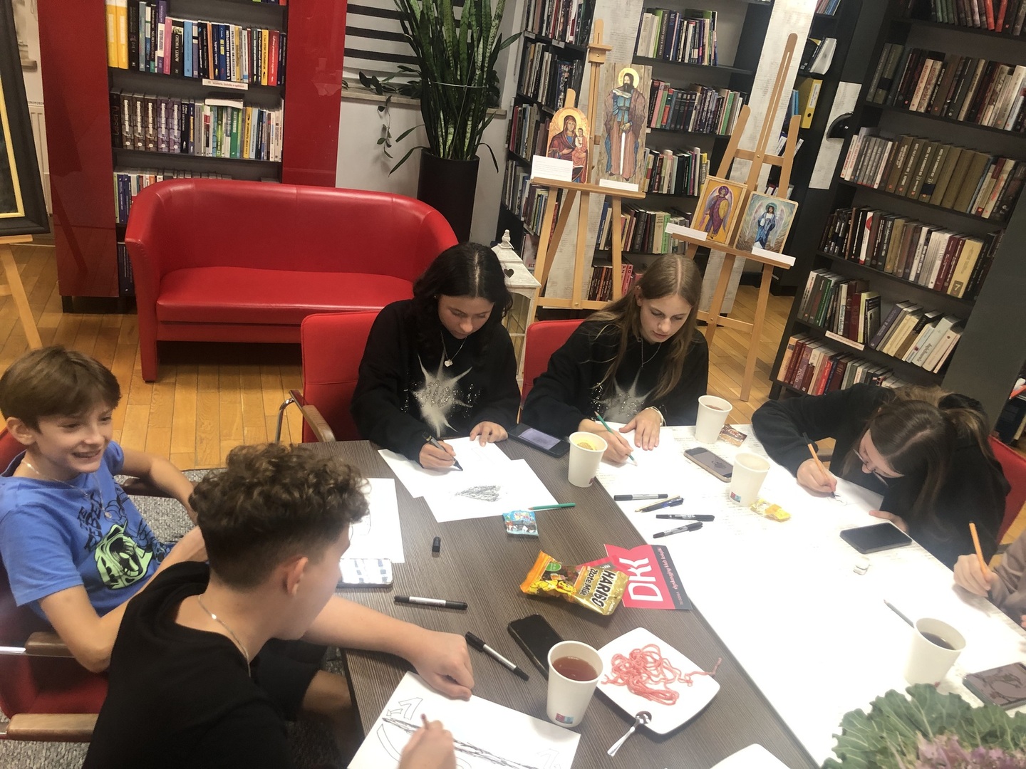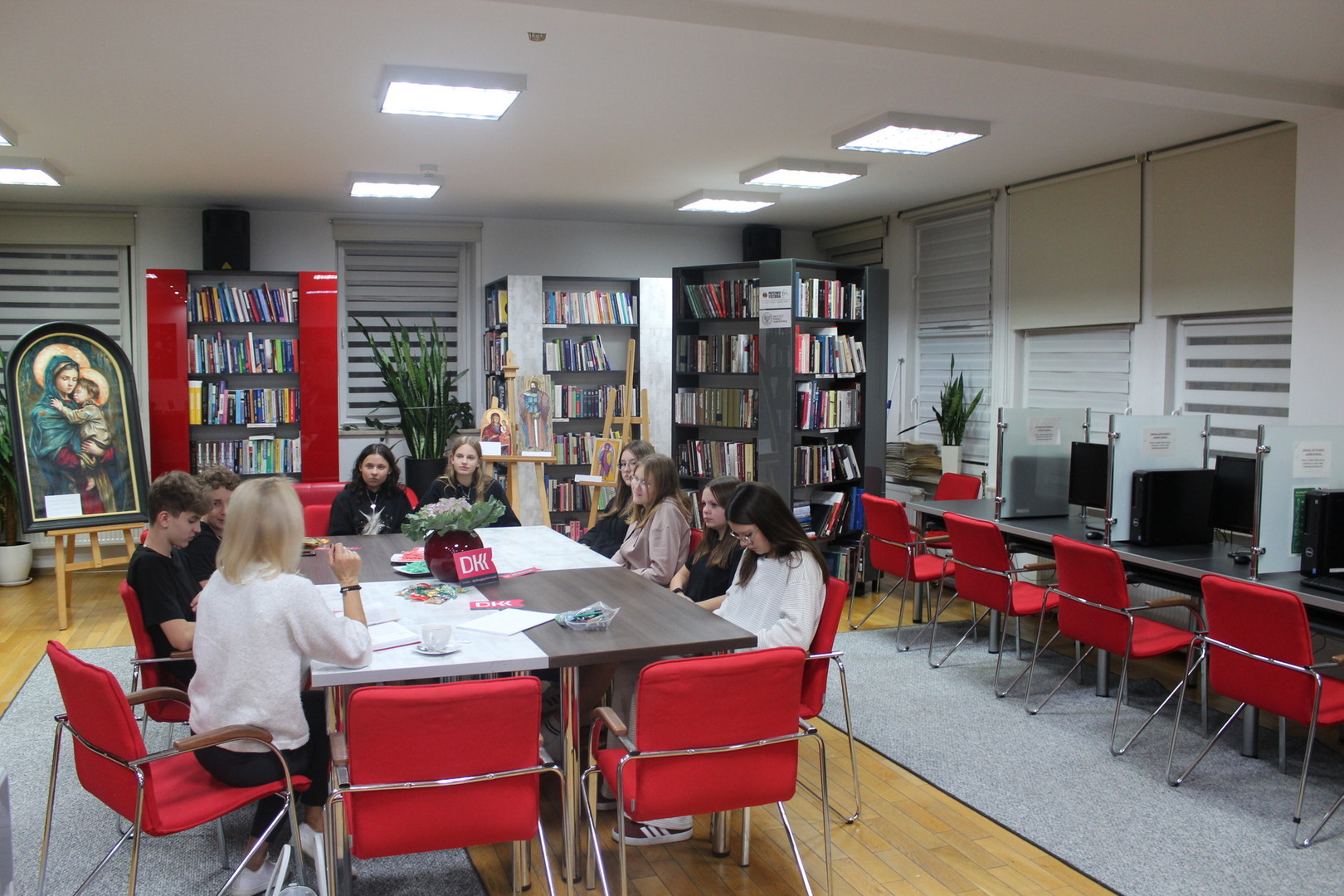 W ramach Nocy Bibliotek 18 października Członkowie Młodzieżowego Dyskusyjnego Klubu Książki zorganizowali spotkanie w Miejskiej Bibliotece Publicznej. Oprócz strawy cielesnej, czyli pizzy i innych pyszności, nasi uczniowie zafundowali sobie również strawę duchową w postaci seansu filmowego oraz interpretacji i ilustracji polskich przysłów opisanych w książce Jerzego Bralczyka pt.: „Porzekadła”. Ilustracje do przysłów w wykonaniu waszych kolegów można oglądać na ekspozycji w korytarzu dolnym budynku B.