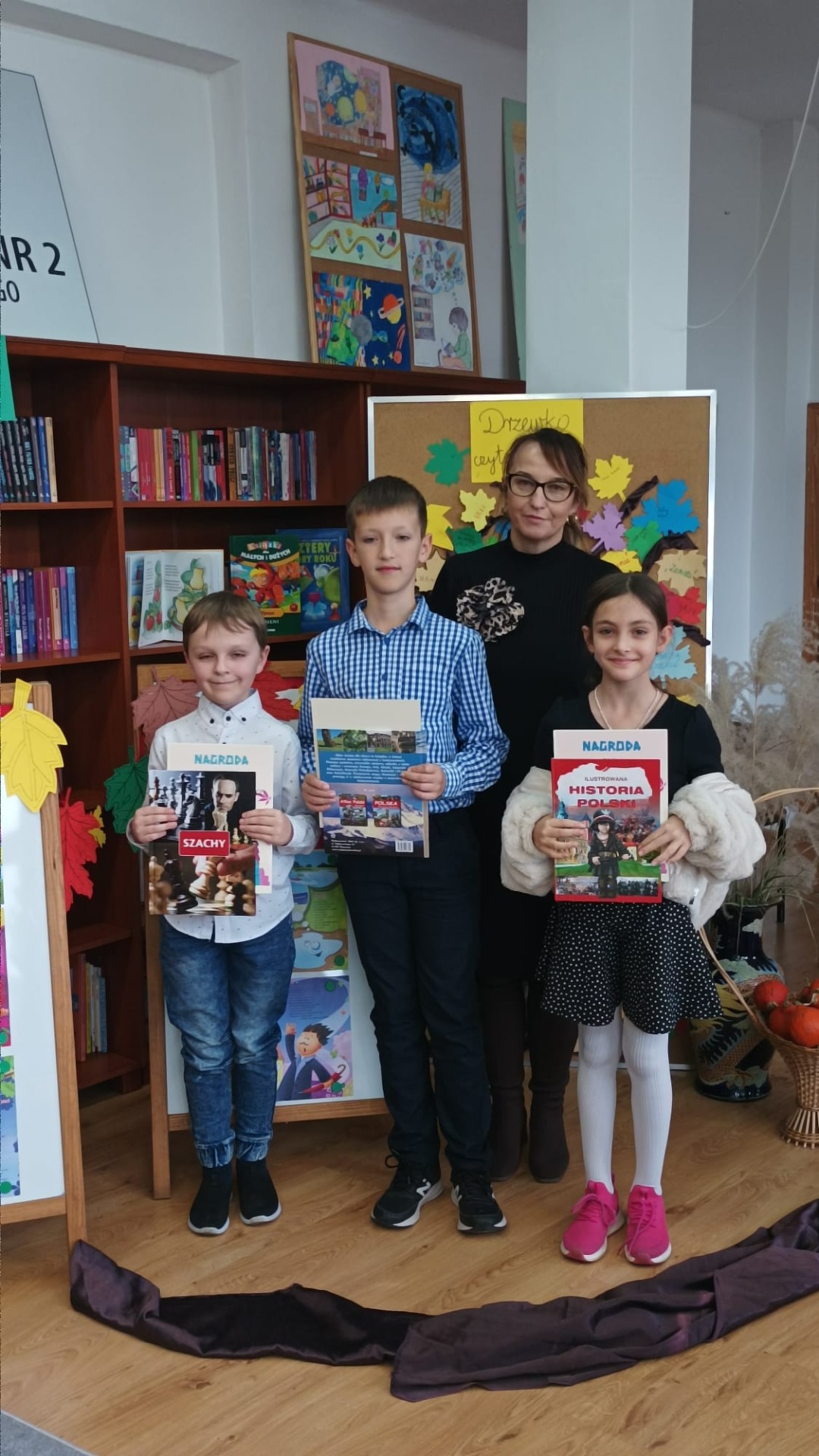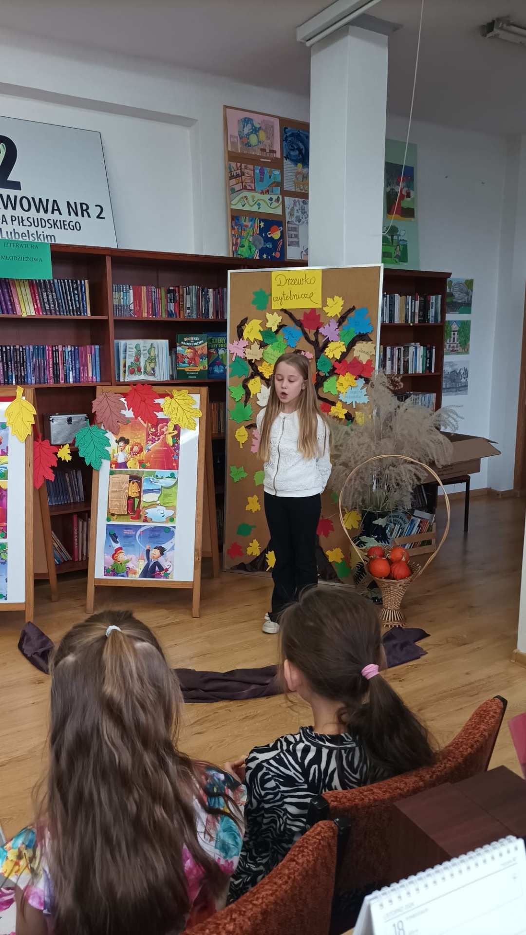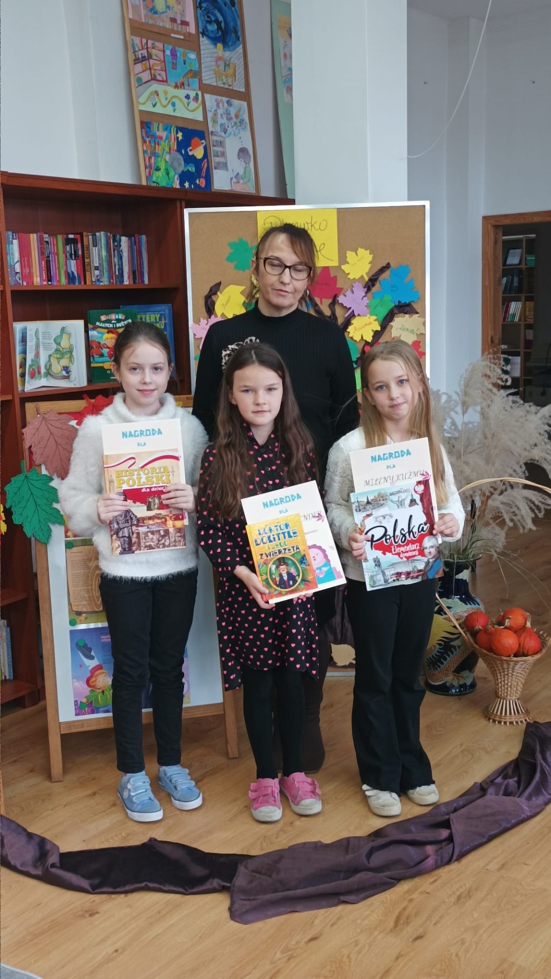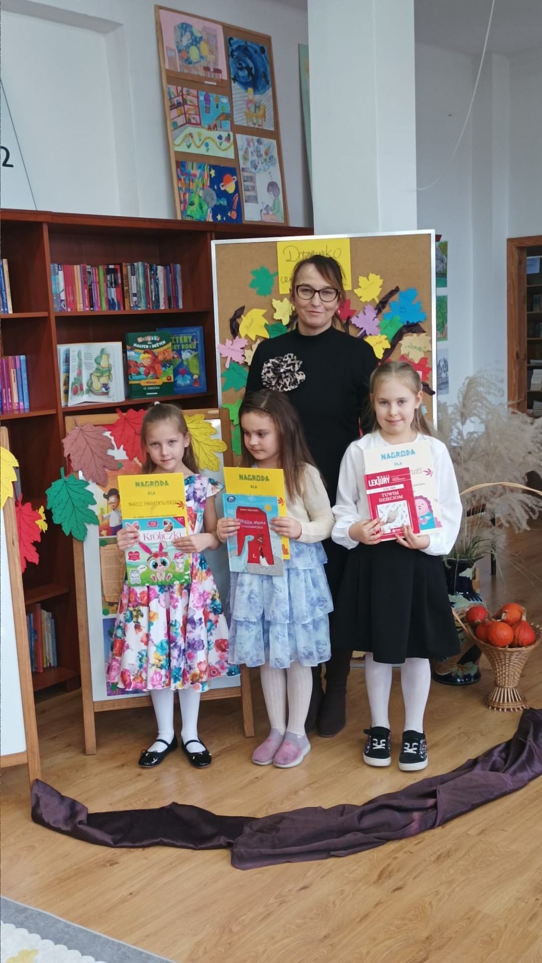 22 listopada 2024 r. w bibliotece szkolnej odbył się szkolny konkurs recytatorski dla klas I – III z cyklu „Moje Ulubione Wiersze” – „Barwy jesieni”. W konkursie wzięło udział 24 uczniów . Komisja w składzie: pani dyrektor M. Prus, pani B. Wiśniewska oraz pani M. Czernek po wysłuchaniu wszystkich recytacji przyznała nagrody w kategorii klas I, II i III. Celem konkursu było popularyzowanie poezji dziecięcej, pogłębienie poczucia estetyki i wrażliwości na piękno przyrody, rozwijanie zdolności recytatorskich. Nagrodzeni to: Nikola Burak kl. II b, Leon Cielniak kl. II b, Karolina Ścirka kl. II b, Kornelia Rycak kl. III c, Julia Rudy kl. III c, Milena Kuźma kl. III c, Maja Waliwender kl. II a, Antonina Wawrzusiszyn kl. II a, Hanna Skiba kl. II a, Laura Wawryca kl. I c, Lena Wichrowska kl. I c, Tomasz Biela kl. I c, Iga Bartosik kl. I a, Wiktoria Błaszczyk kl. I a, Hanna Bryła kl. I a, Lena Bartoszyk kl. I b, Maria Paradowska kl. I b, Ines Jednac kl. I b, Jakub Bieńko kl. III b, Michał Dworzycki kl. III b, Lena Garbula kl. III b, Aleksandra Feola kl. III a, Maja Majdanik kl. III a, Maja Fus kl. III a. Wszyscy uczestnicy otrzymali dyplomy oraz nagrody książkowe ufundowane przez Dyrekcję Szkoły, Radę Rodziców oraz bibliotekę szkolną.