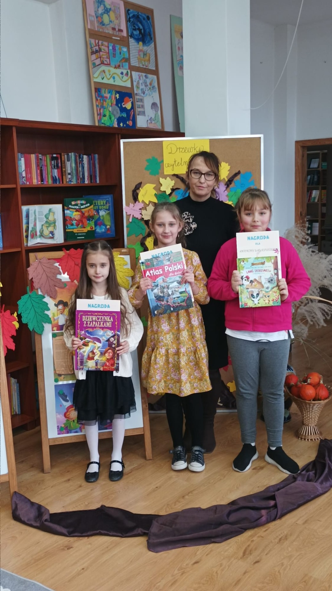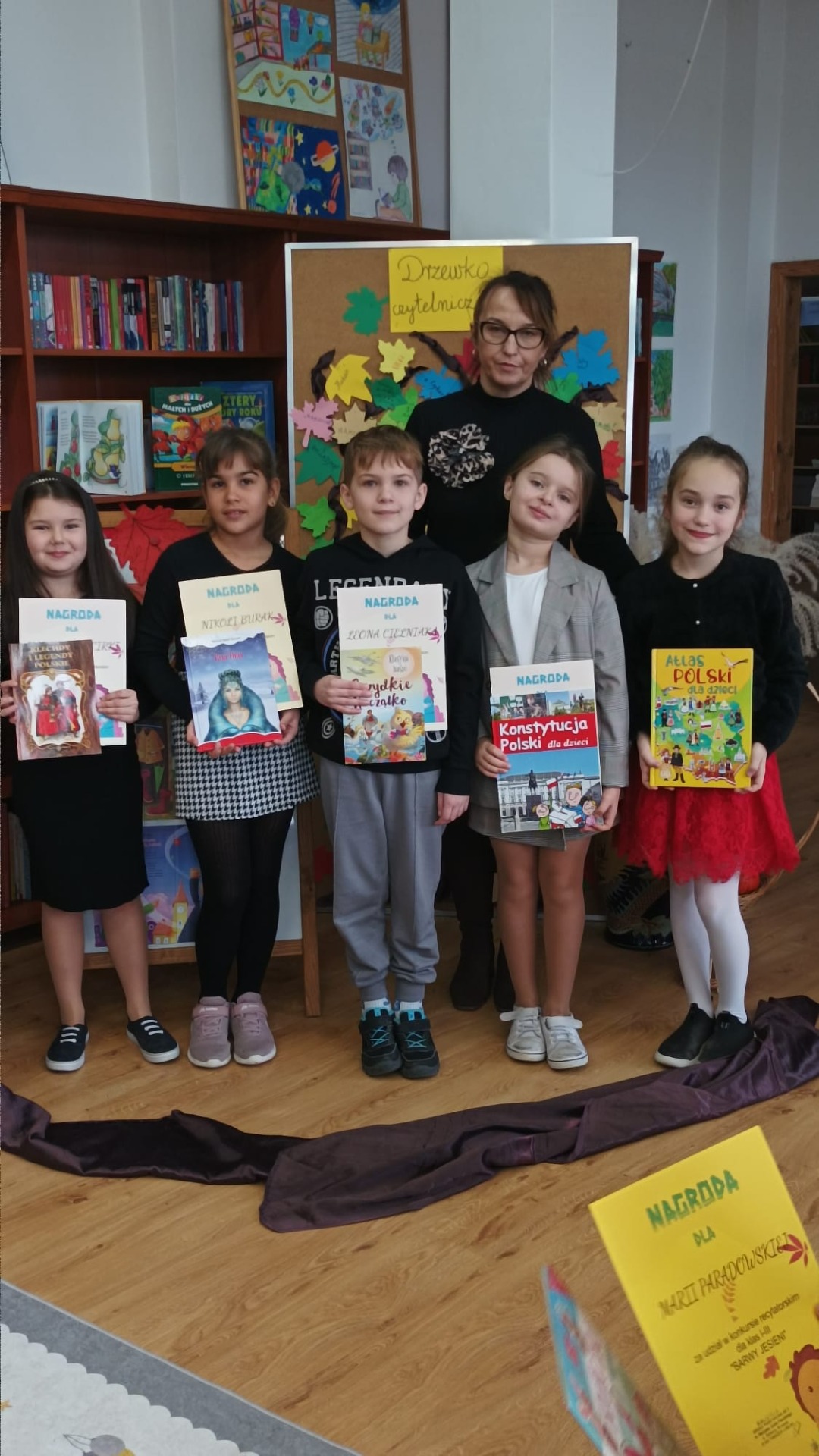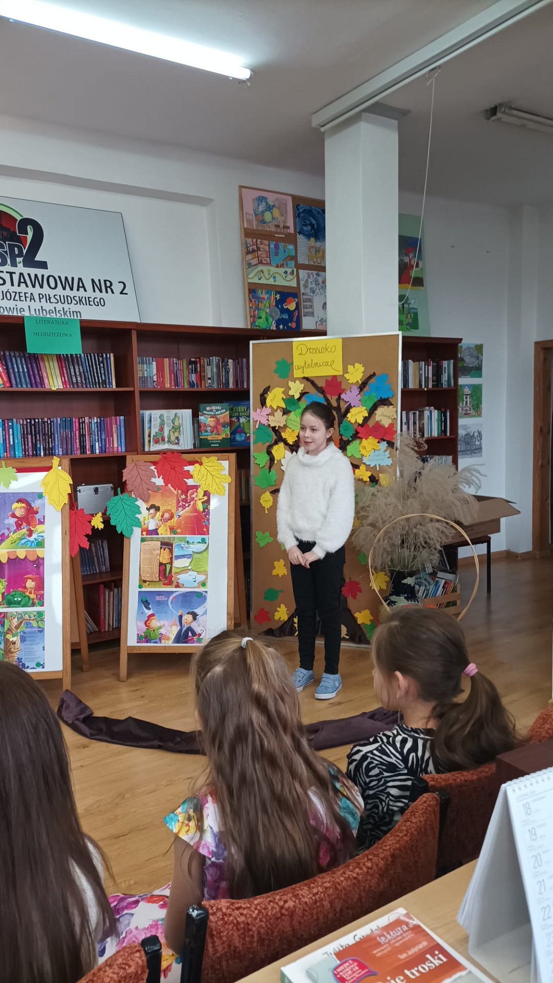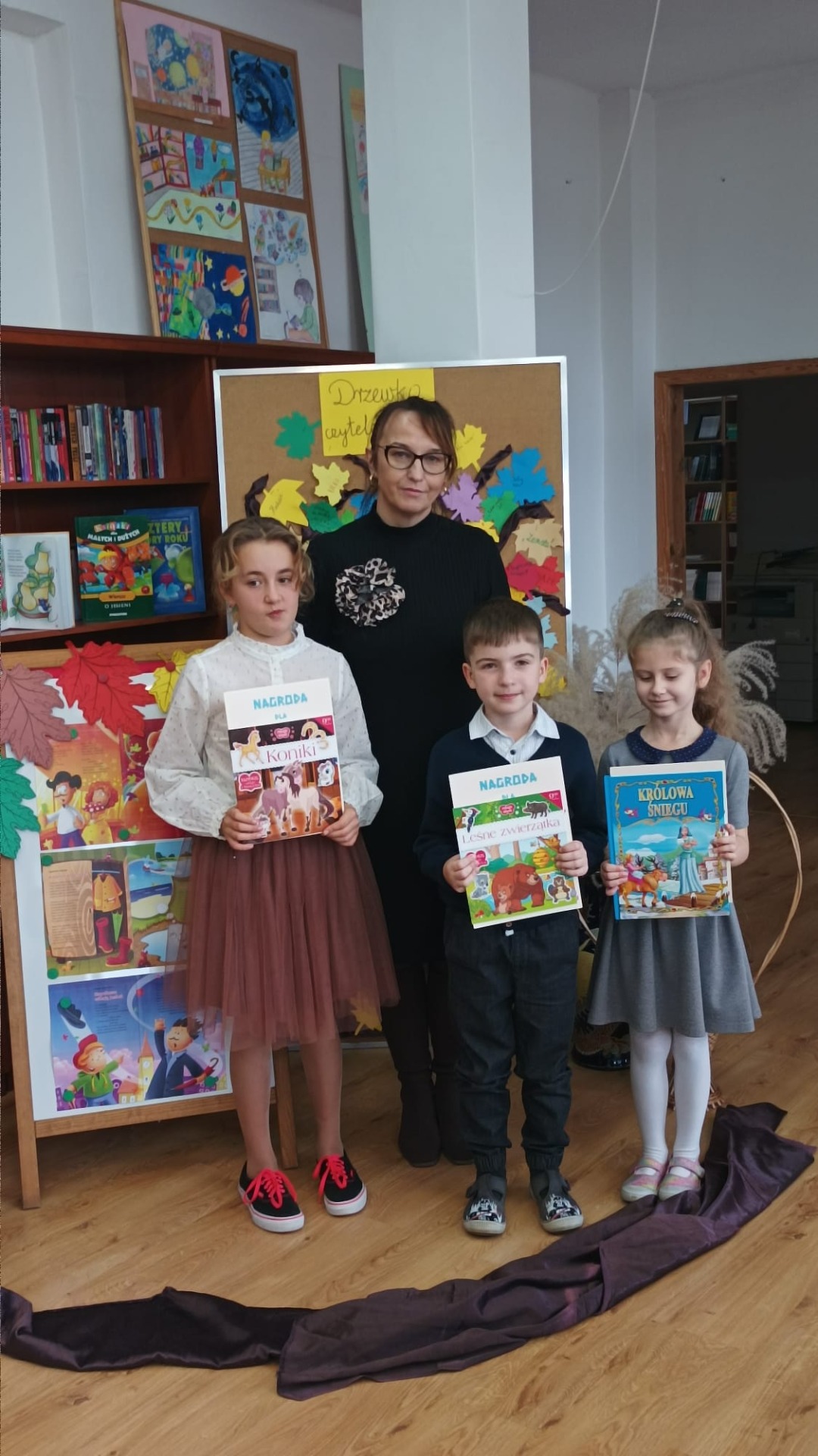 22 listopada 2024 r. w bibliotece szkolnej odbył się szkolny konkurs recytatorski dla klas I – III z cyklu „Moje Ulubione Wiersze” – „Barwy jesieni”. W konkursie wzięło udział 24 uczniów . Komisja w składzie: pani dyrektor M. Prus, pani B. Wiśniewska oraz pani M. Czernek po wysłuchaniu wszystkich recytacji przyznała nagrody w kategorii klas I, II i III. Celem konkursu było popularyzowanie poezji dziecięcej, pogłębienie poczucia estetyki i wrażliwości na piękno przyrody, rozwijanie zdolności recytatorskich. Nagrodzeni to: Nikola Burak kl. II b, Leon Cielniak kl. II b, Karolina Ścirka kl. II b, Kornelia Rycak kl. III c, Julia Rudy kl. III c, Milena Kuźma kl. III c, Maja Waliwender kl. II a, Antonina Wawrzusiszyn kl. II a, Hanna Skiba kl. II a, Laura Wawryca kl. I c, Lena Wichrowska kl. I c, Tomasz Biela kl. I c, Iga Bartosik kl. I a, Wiktoria Błaszczyk kl. I a, Hanna Bryła kl. I a, Lena Bartoszyk kl. I b, Maria Paradowska kl. I b, Ines Jednac kl. I b, Jakub Bieńko kl. III b, Michał Dworzycki kl. III b, Lena Garbula kl. III b, Aleksandra Feola kl. III a, Maja Majdanik kl. III a, Maja Fus kl. III a. Wszyscy uczestnicy otrzymali dyplomy oraz nagrody książkowe ufundowane przez Dyrekcję Szkoły, Radę Rodziców oraz bibliotekę szkolną.