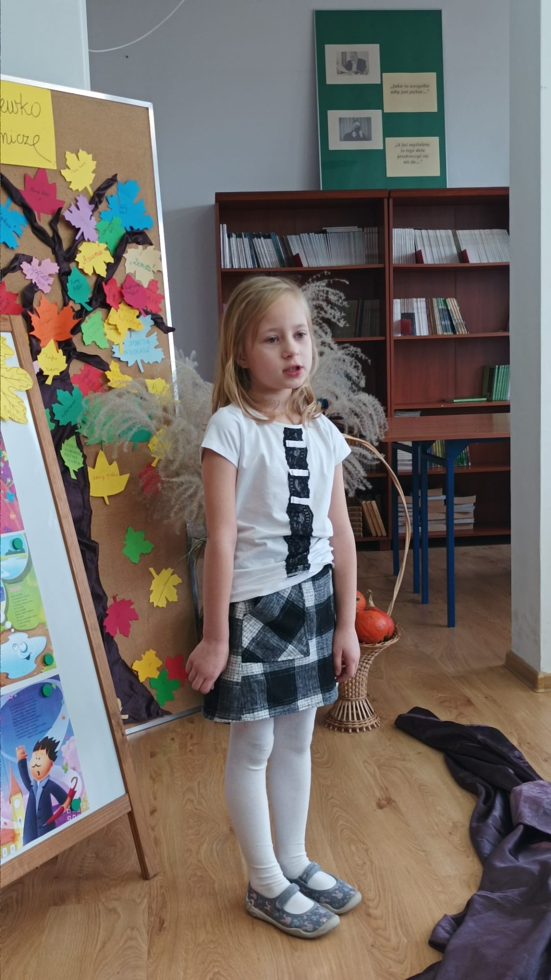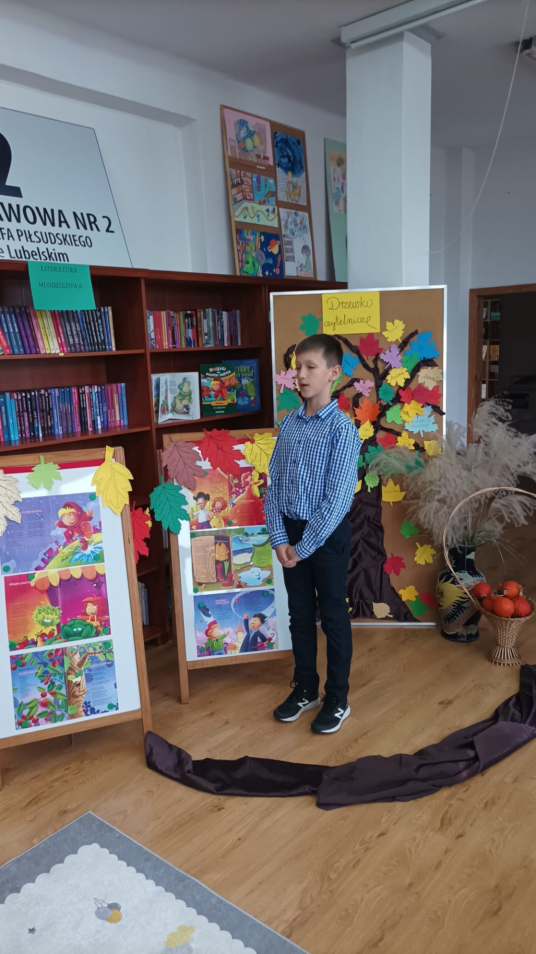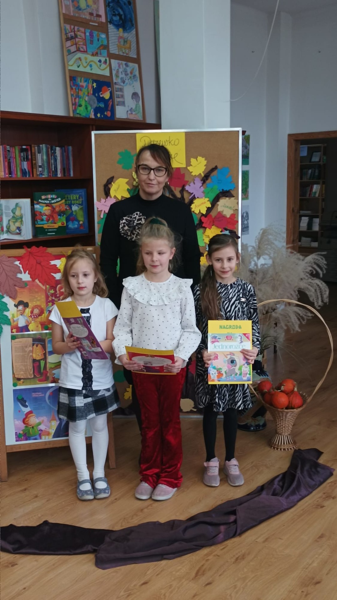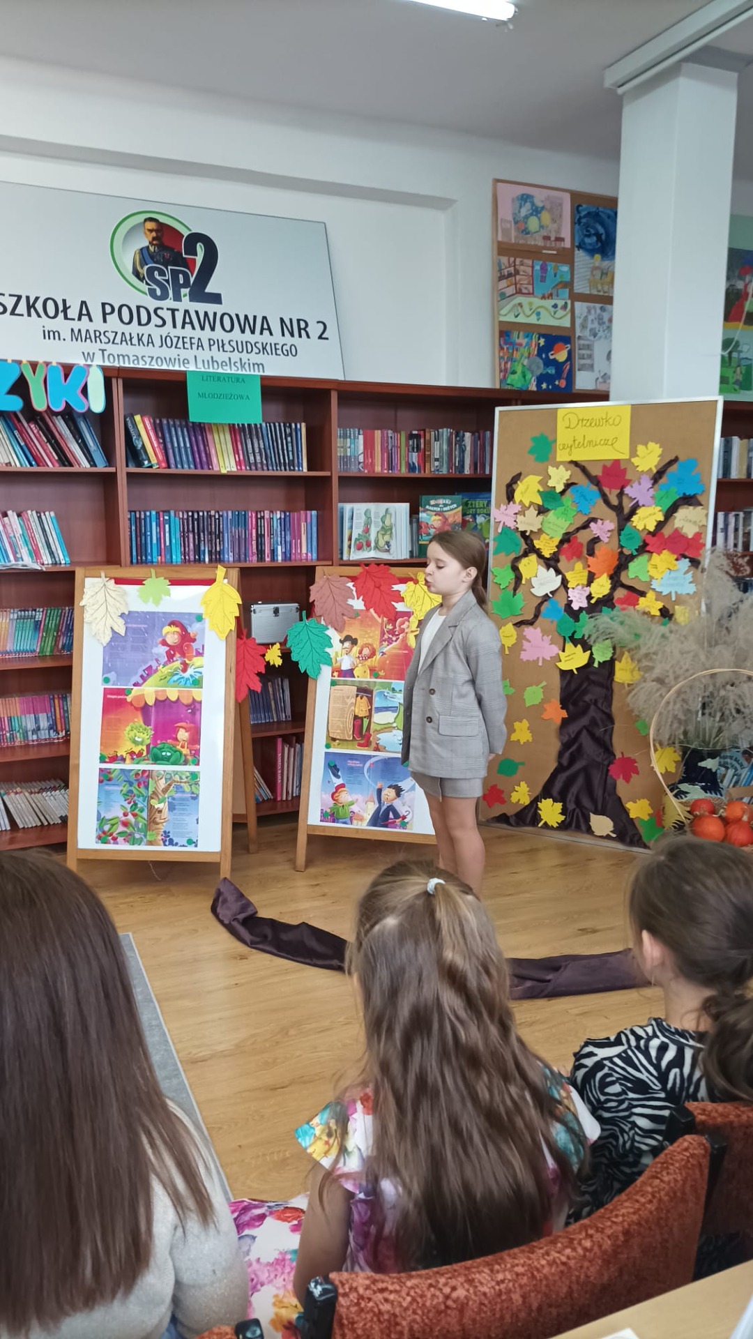 22 listopada 2024 r. w bibliotece szkolnej odbył się szkolny konkurs recytatorski dla klas I – III z cyklu „Moje Ulubione Wiersze” – „Barwy jesieni”. W konkursie wzięło udział 24 uczniów . Komisja w składzie: pani dyrektor M. Prus, pani B. Wiśniewska oraz pani M. Czernek po wysłuchaniu wszystkich recytacji przyznała nagrody w kategorii klas I, II i III. Celem konkursu było popularyzowanie poezji dziecięcej, pogłębienie poczucia estetyki i wrażliwości na piękno przyrody, rozwijanie zdolności recytatorskich. Nagrodzeni to: Nikola Burak kl. II b, Leon Cielniak kl. II b, Karolina Ścirka kl. II b, Kornelia Rycak kl. III c, Julia Rudy kl. III c, Milena Kuźma kl. III c, Maja Waliwender kl. II a, Antonina Wawrzusiszyn kl. II a, Hanna Skiba kl. II a, Laura Wawryca kl. I c, Lena Wichrowska kl. I c, Tomasz Biela kl. I c, Iga Bartosik kl. I a, Wiktoria Błaszczyk kl. I a, Hanna Bryła kl. I a, Lena Bartoszyk kl. I b, Maria Paradowska kl. I b, Ines Jednac kl. I b, Jakub Bieńko kl. III b, Michał Dworzycki kl. III b, Lena Garbula kl. III b, Aleksandra Feola kl. III a, Maja Majdanik kl. III a, Maja Fus kl. III a. Wszyscy uczestnicy otrzymali dyplomy oraz nagrody książkowe ufundowane przez Dyrekcję Szkoły, Radę Rodziców oraz bibliotekę szkolną.