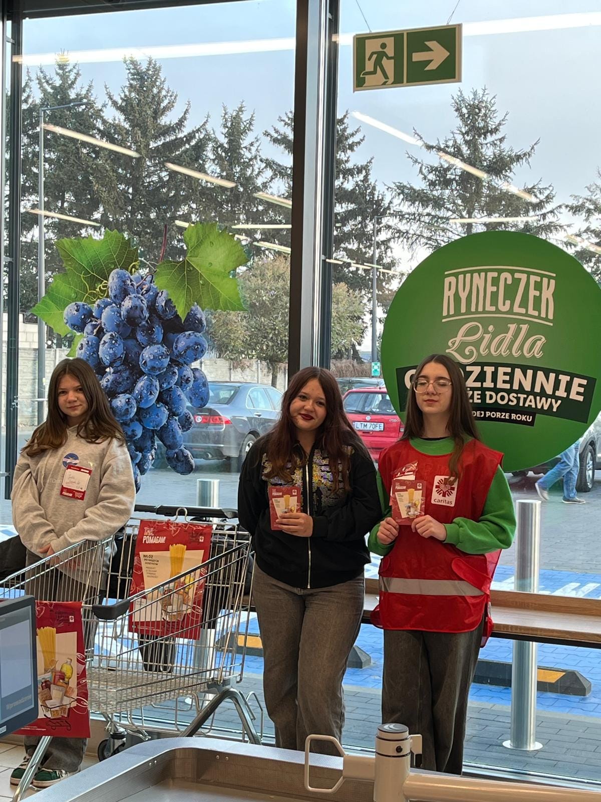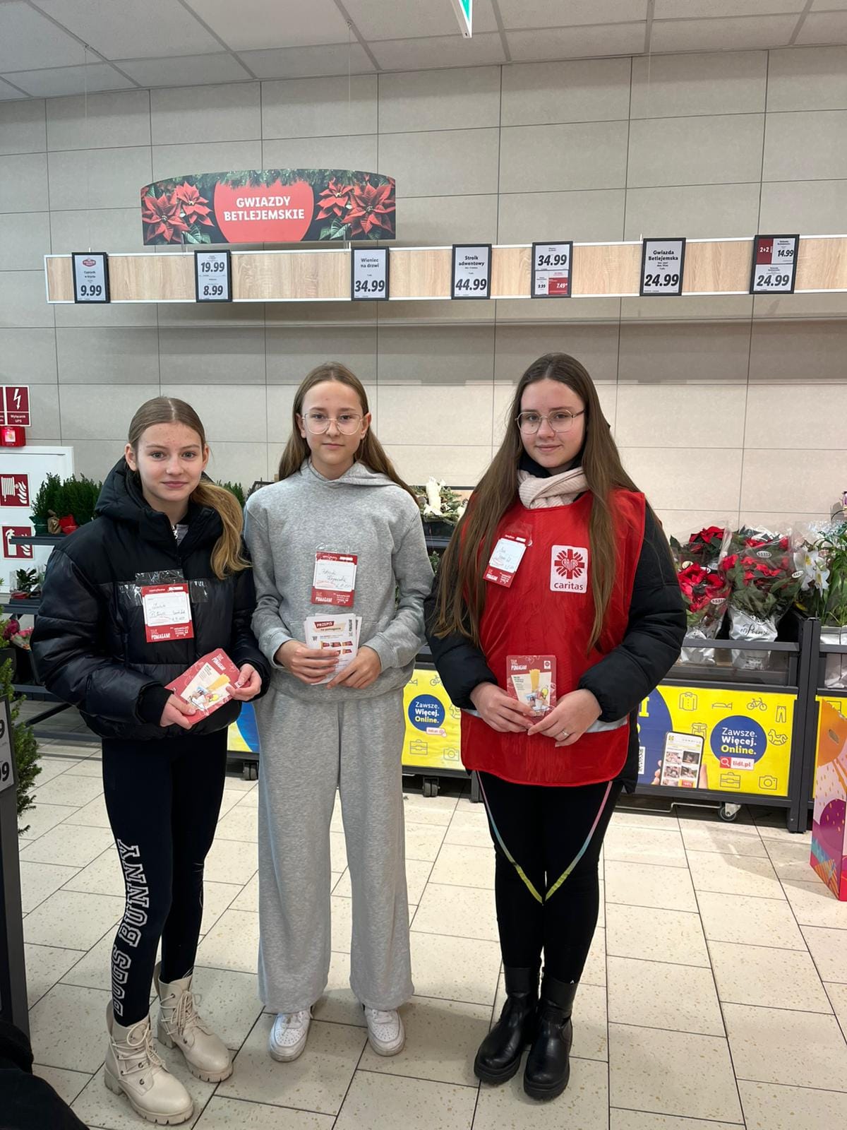 Uczniowie należący do Szkolnego Koła Caritas kolejny raz uczestniczyli w przedświątecznej zbiórce żywności pod hasłem "Tak. Pomagam!" Dzięki dobrym i ofiarnym ludziom zebrano 120 kg żywności.❤️💜Z produktów przygotują paczki świąteczne, które otrzymają seniorzy i rodziny w trudnej sytuacji materialnej. DZIĘKUJEMY