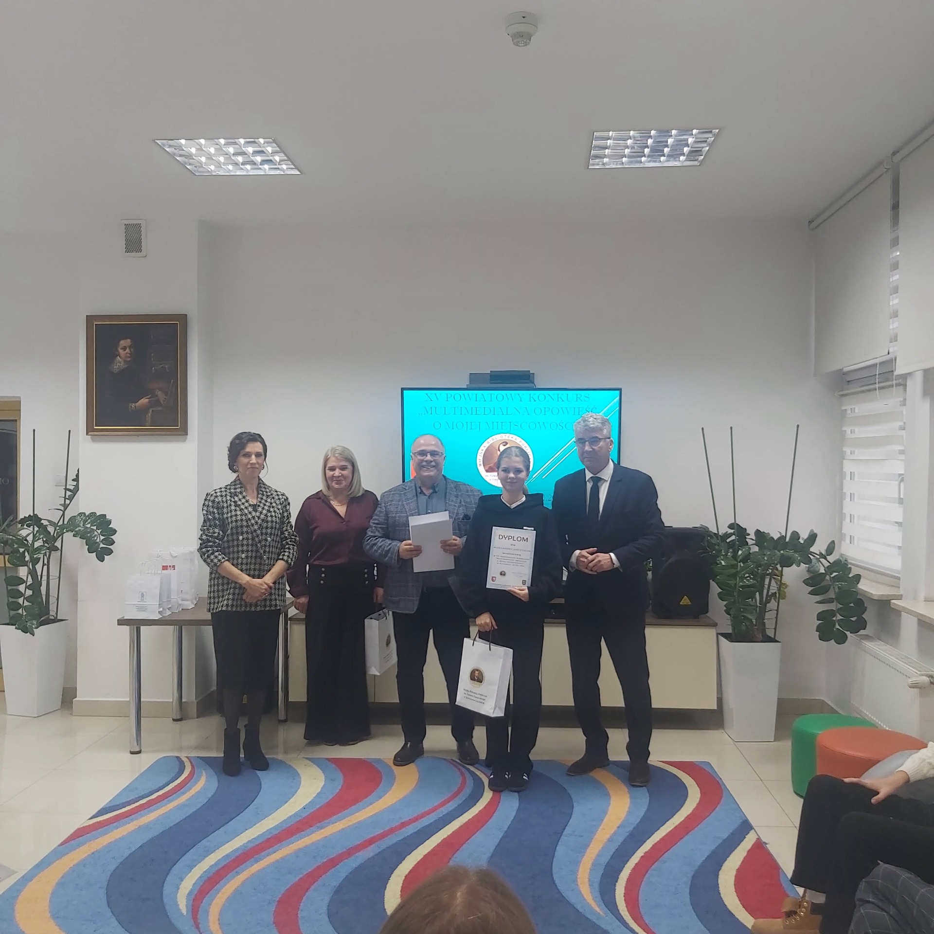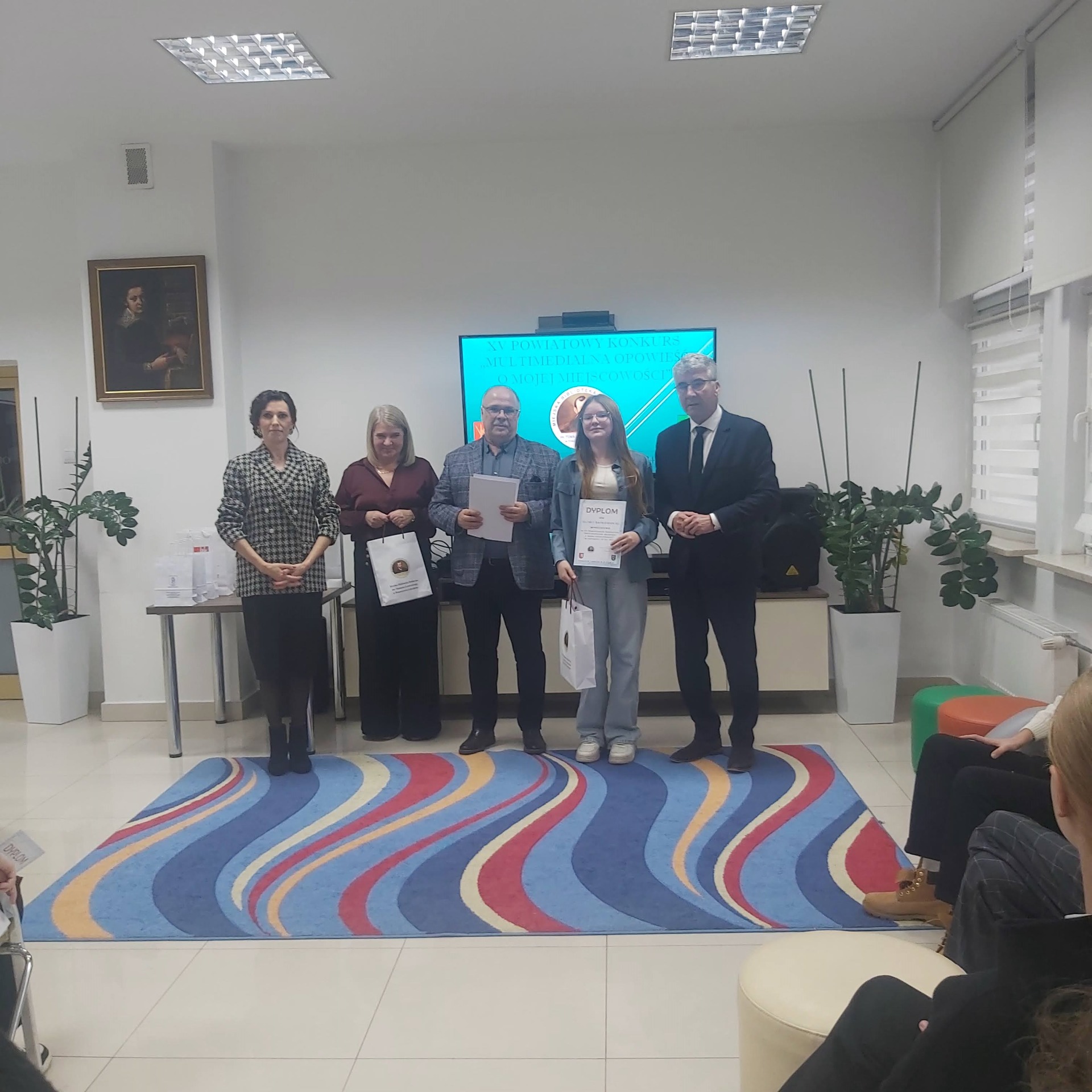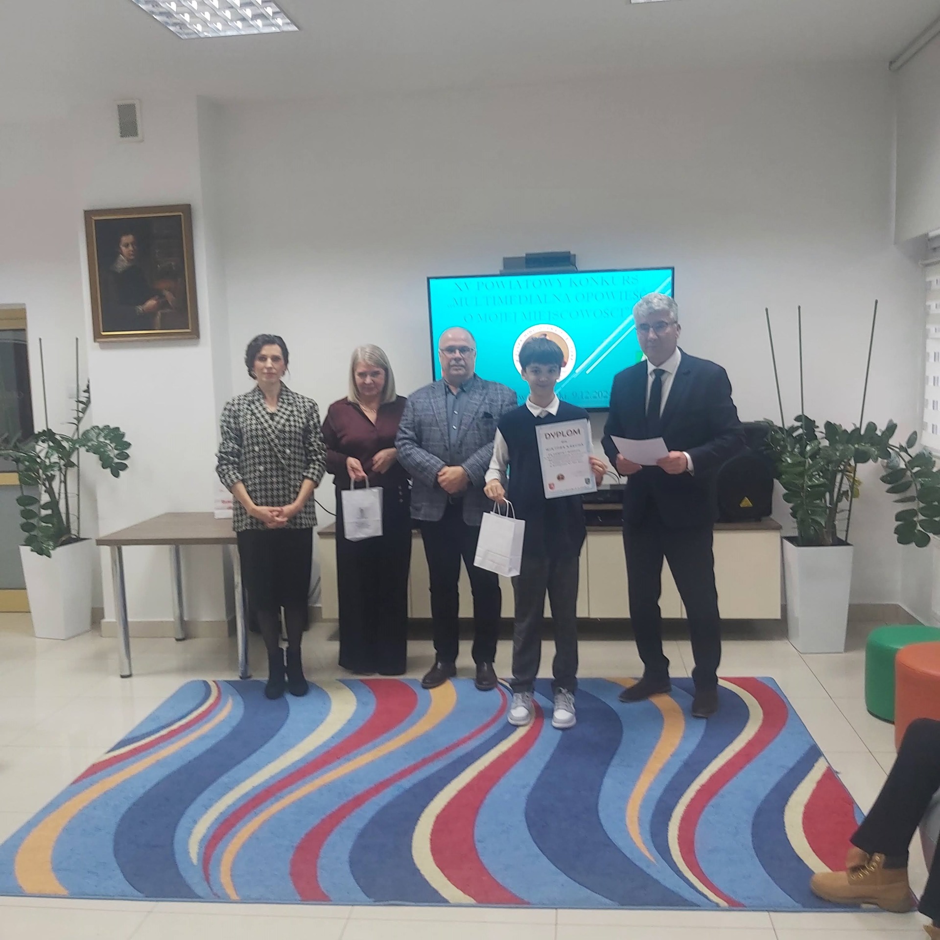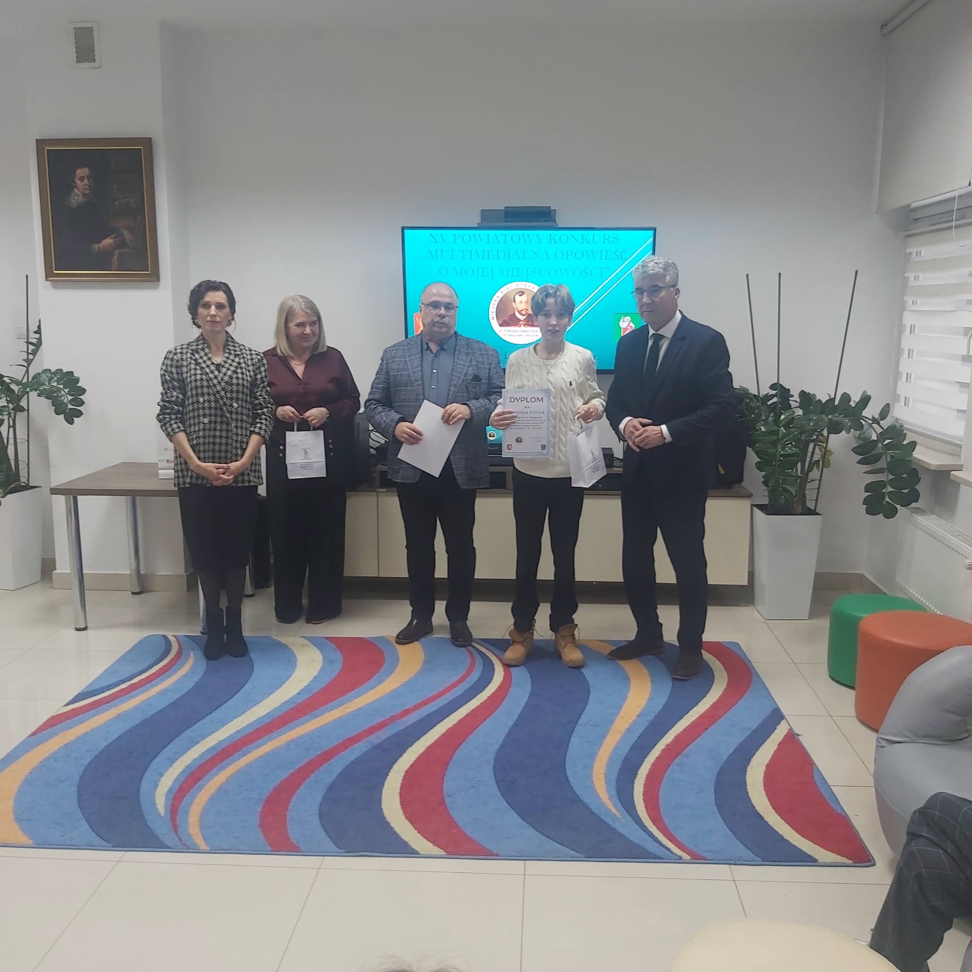 W poniedziałek 9 grudnia w Miejskiej Bibliotece Publicznej im. Tomasza Zamoyskiego podsumowano XV Powiatowy Konkurs „Multimedialna opowieść o mojej miejscowości”. Wśród nagrodzonych znaleźli się nasi uczniowie. Wiktor Krech z klasy 7 d zajął I miejsce w kategorii klas VII- VIII, Maciej Czyż z klasy 7 b zajął III miejsce w tej samej kategorii, a Oliwia Batkowska z klasy 7 b i Aleksandra Jadczyszyn z klasy 7 c otrzymały wyróżnienia. Gratulujemy i życzymy dalszych sukcesów👍.
