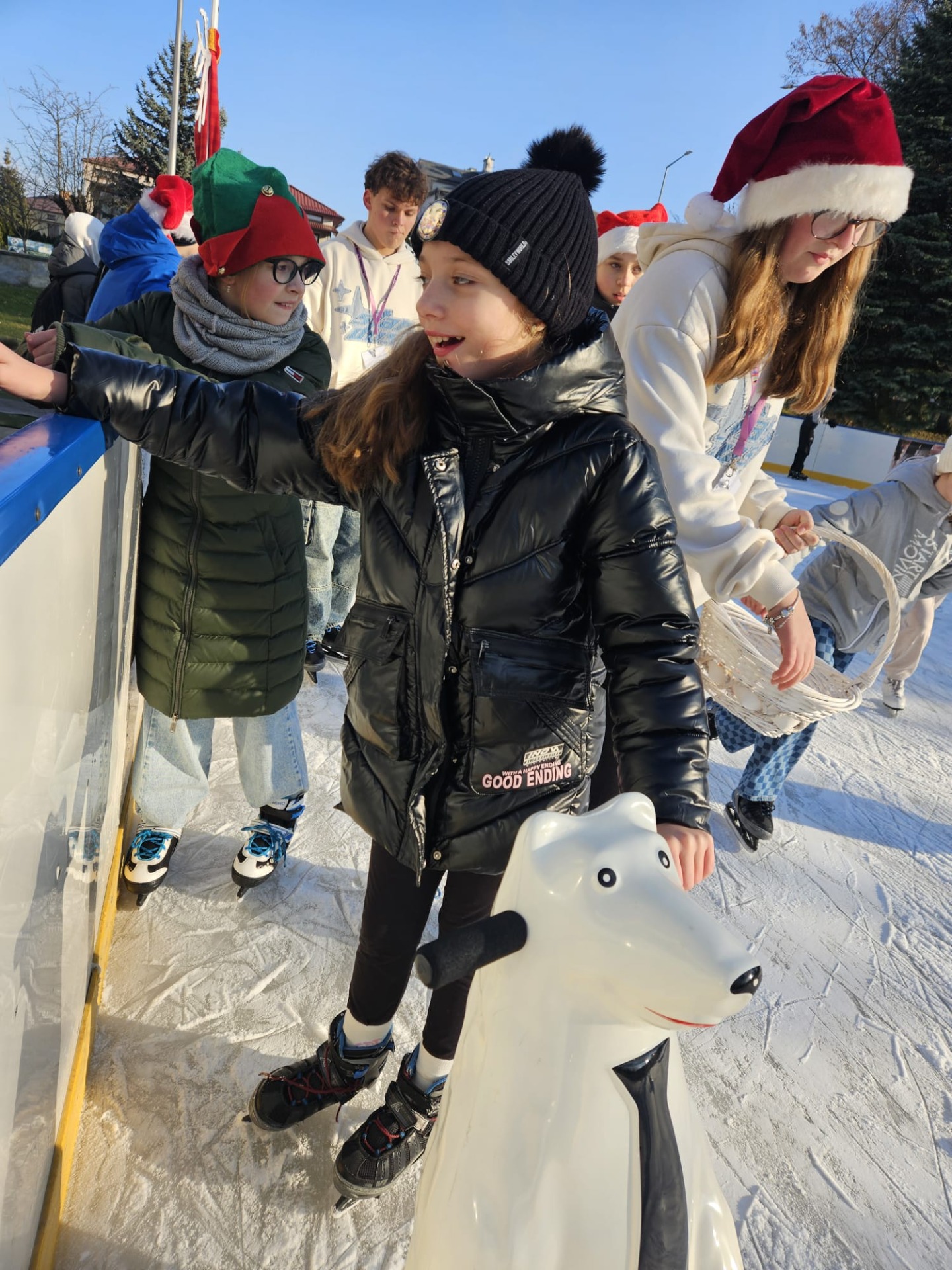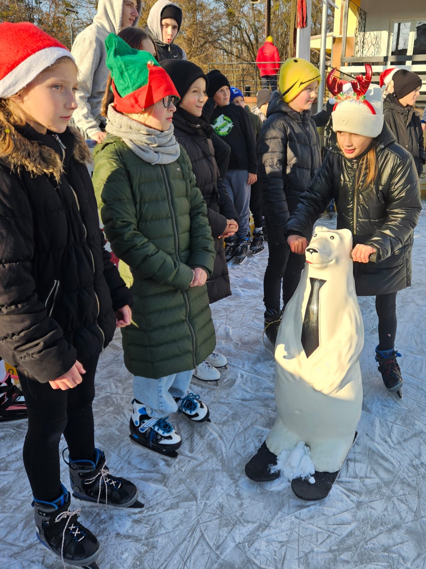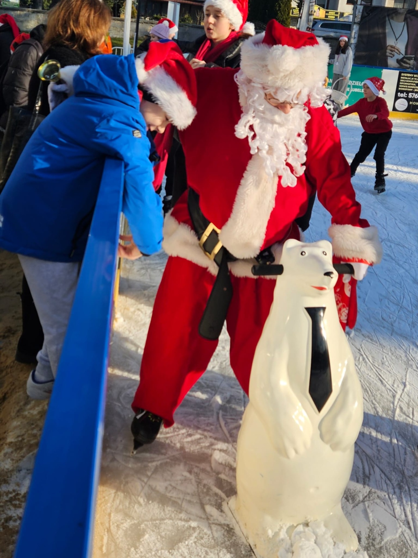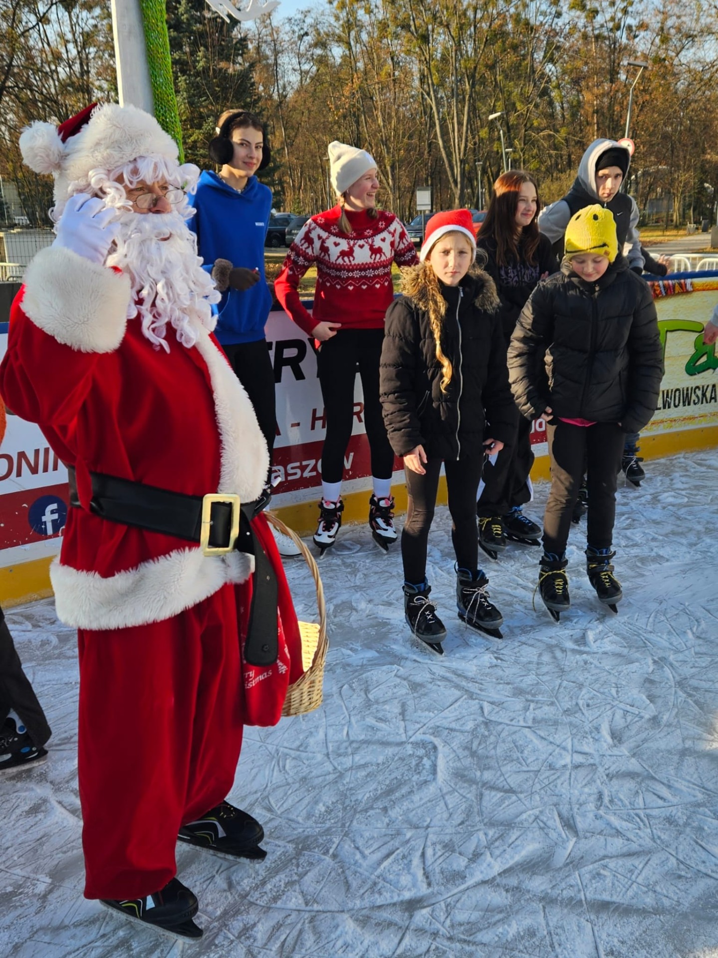 6 grudnia uczniowie klasy 4c mieli wyjątkową okazję uczestniczyć w uroczystym otwarciu lodowiska miejskiego. Świąteczną atmosferę podgrzewała obecność samego Mikołaja oraz jego pomocnicy – uroczej Śnieżynki! Dzieci bawiły się świetnie, biorąc udział w różnorodnych grach i zabawach na lodzie, które przygotował nasz wyjątkowy gość. Była to nie tylko okazja do nauki nowych umiejętności, ale także doskonały moment na integrację i wspólną zabawę w magicznej, mikołajkowej atmosferze.