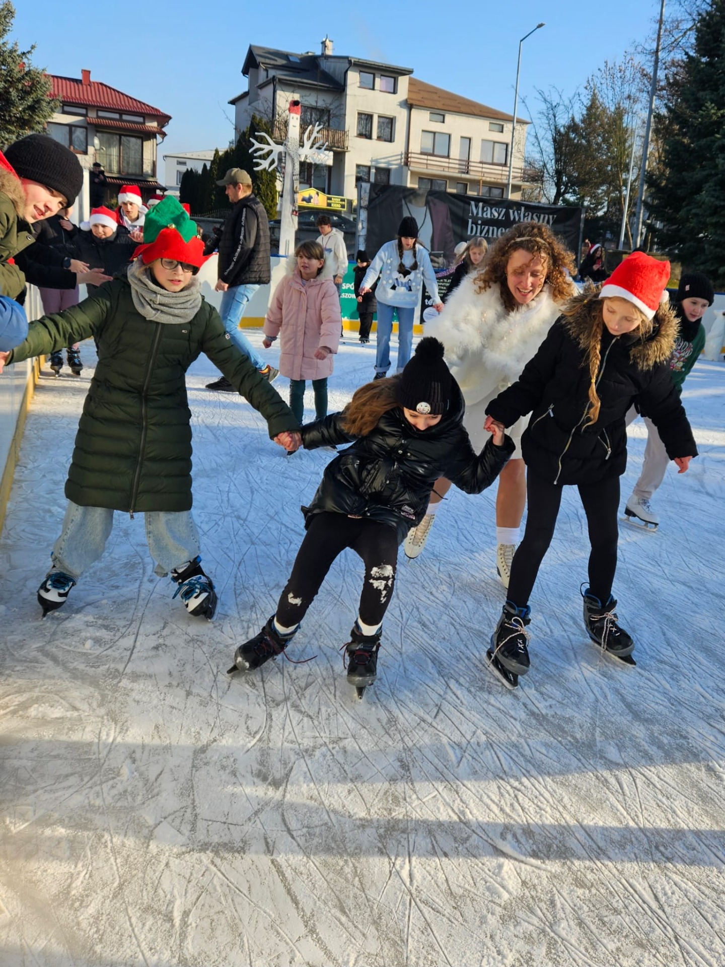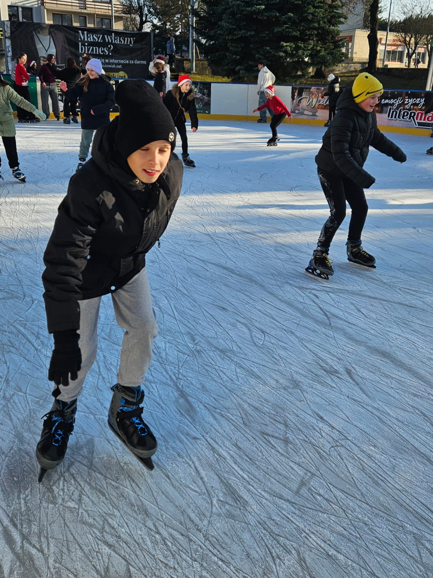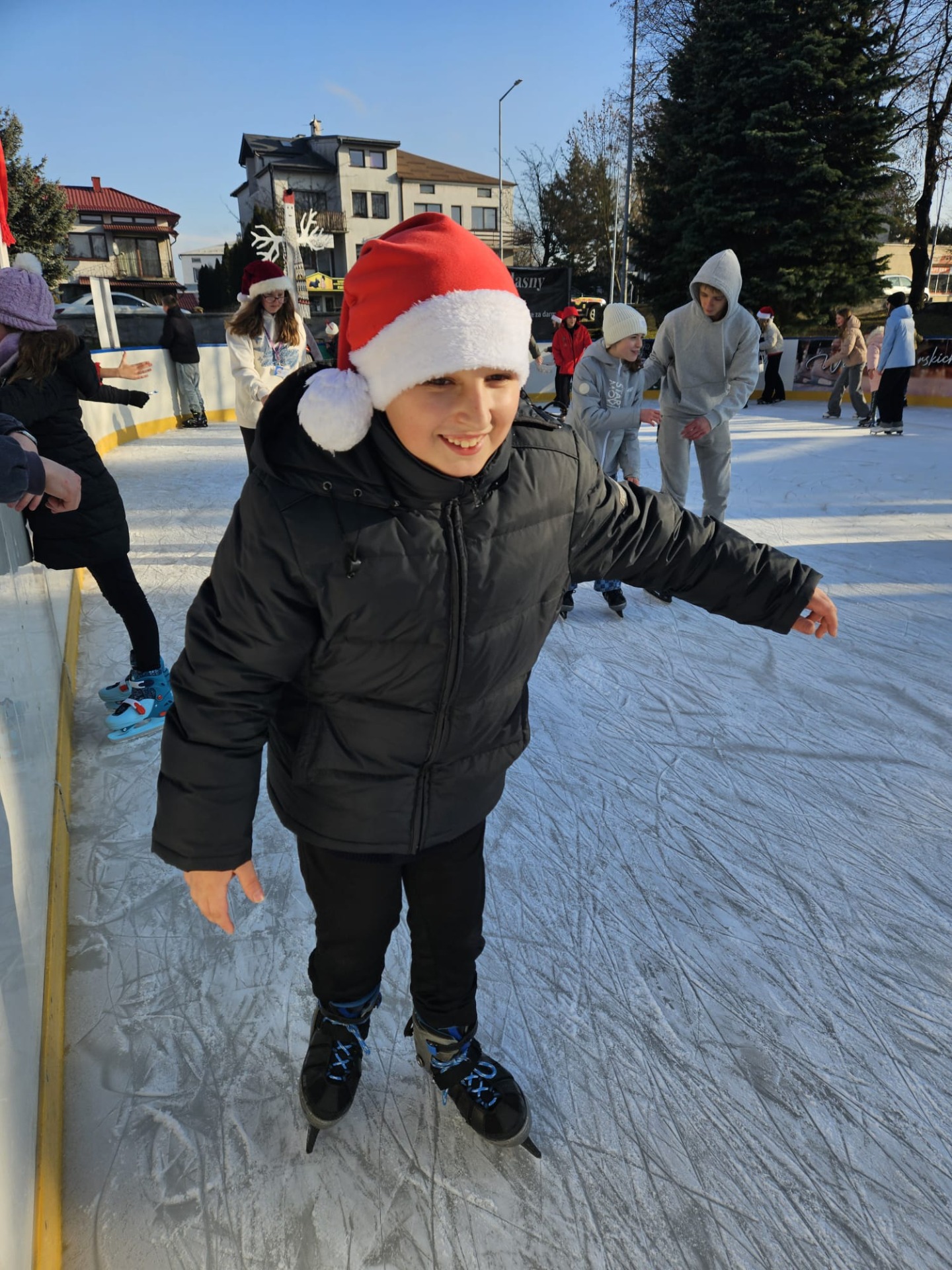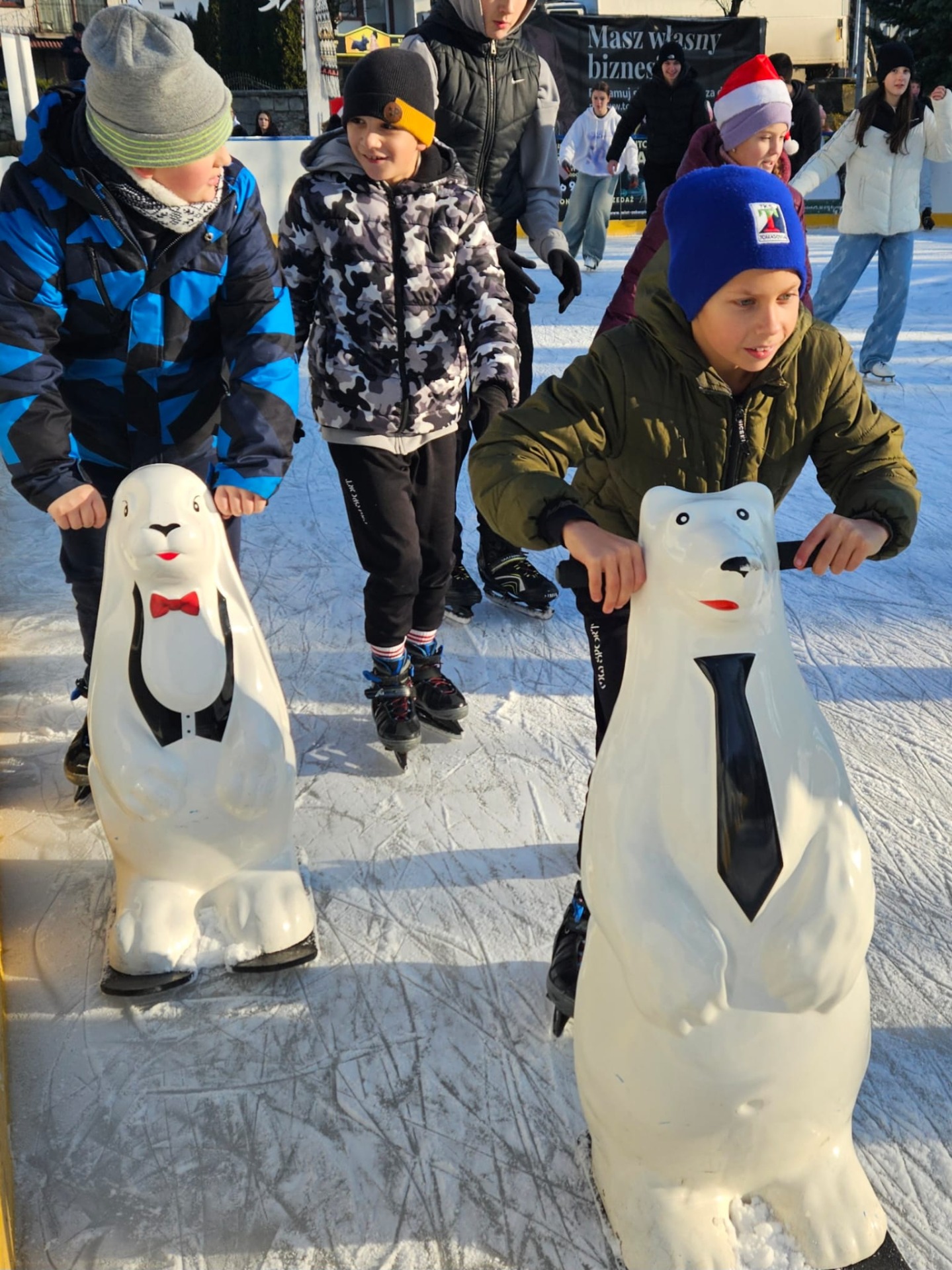 6 grudnia uczniowie klasy 4c mieli wyjątkową okazję uczestniczyć w uroczystym otwarciu lodowiska miejskiego. Świąteczną atmosferę podgrzewała obecność samego Mikołaja oraz jego pomocnicy – uroczej Śnieżynki! Dzieci bawiły się świetnie, biorąc udział w różnorodnych grach i zabawach na lodzie, które przygotował nasz wyjątkowy gość. Była to nie tylko okazja do nauki nowych umiejętności, ale także doskonały moment na integrację i wspólną zabawę w magicznej, mikołajkowej atmosferze.