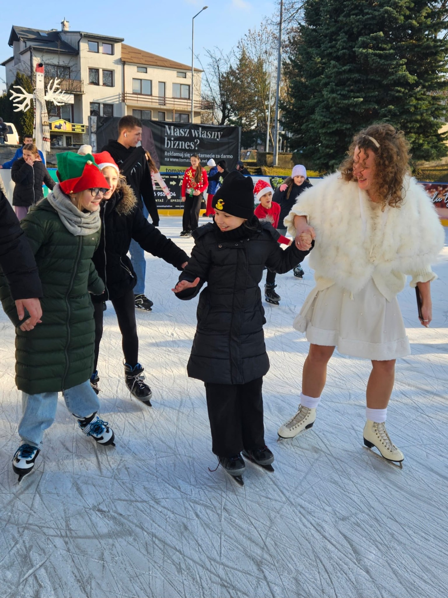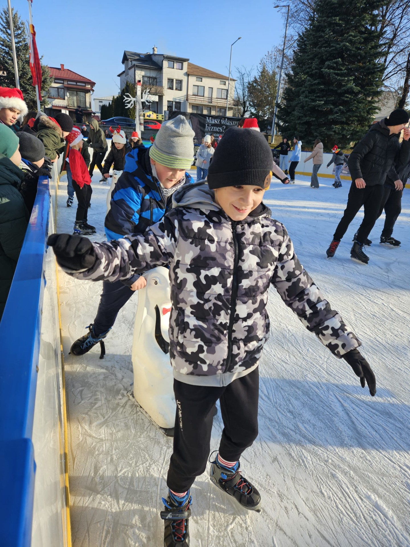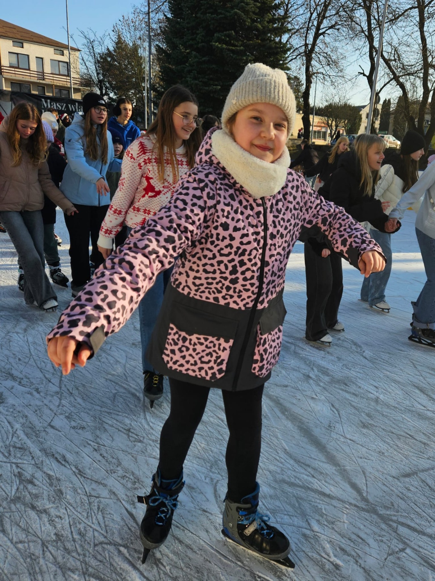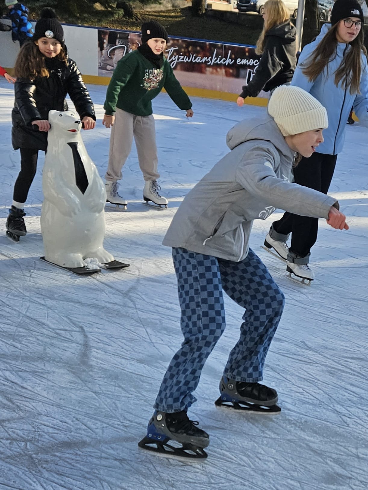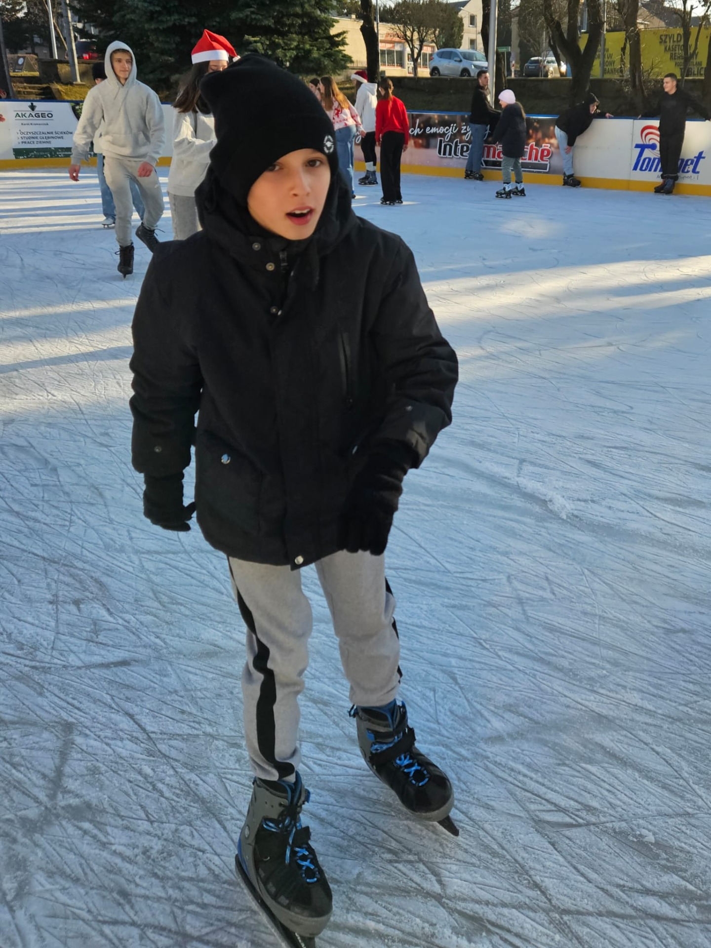 6 grudnia uczniowie klasy 4c mieli wyjątkową okazję uczestniczyć w uroczystym otwarciu lodowiska miejskiego. Świąteczną atmosferę podgrzewała obecność samego Mikołaja oraz jego pomocnicy – uroczej Śnieżynki! Dzieci bawiły się świetnie, biorąc udział w różnorodnych grach i zabawach na lodzie, które przygotował nasz wyjątkowy gość. Była to nie tylko okazja do nauki nowych umiejętności, ale także doskonały moment na integrację i wspólną zabawę w magicznej, mikołajkowej atmosferze.