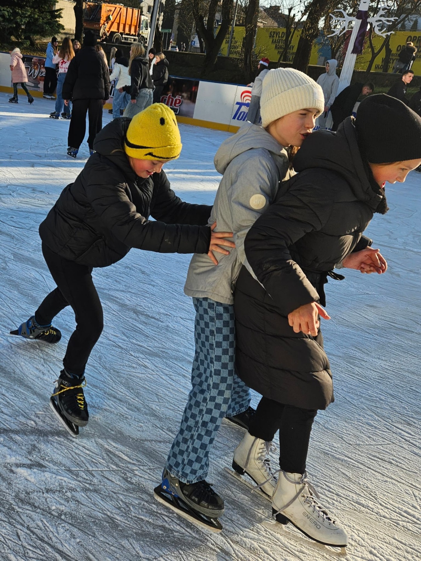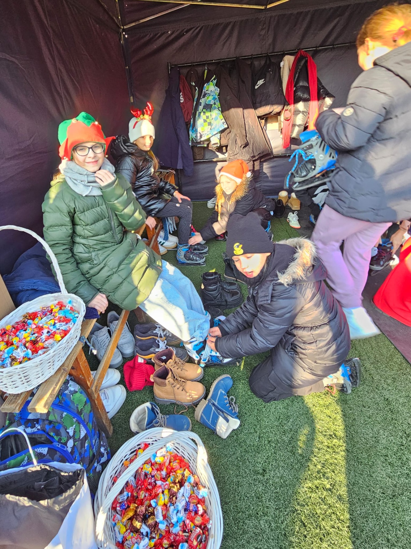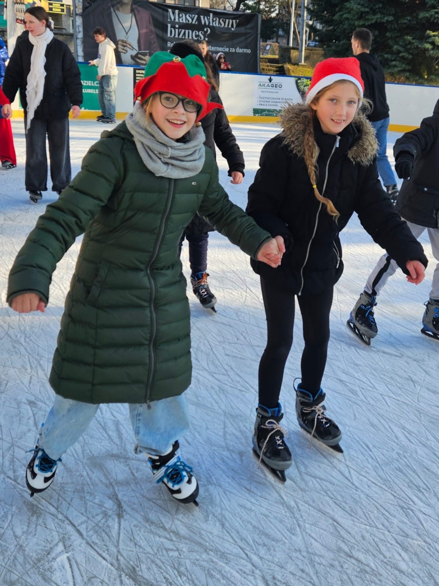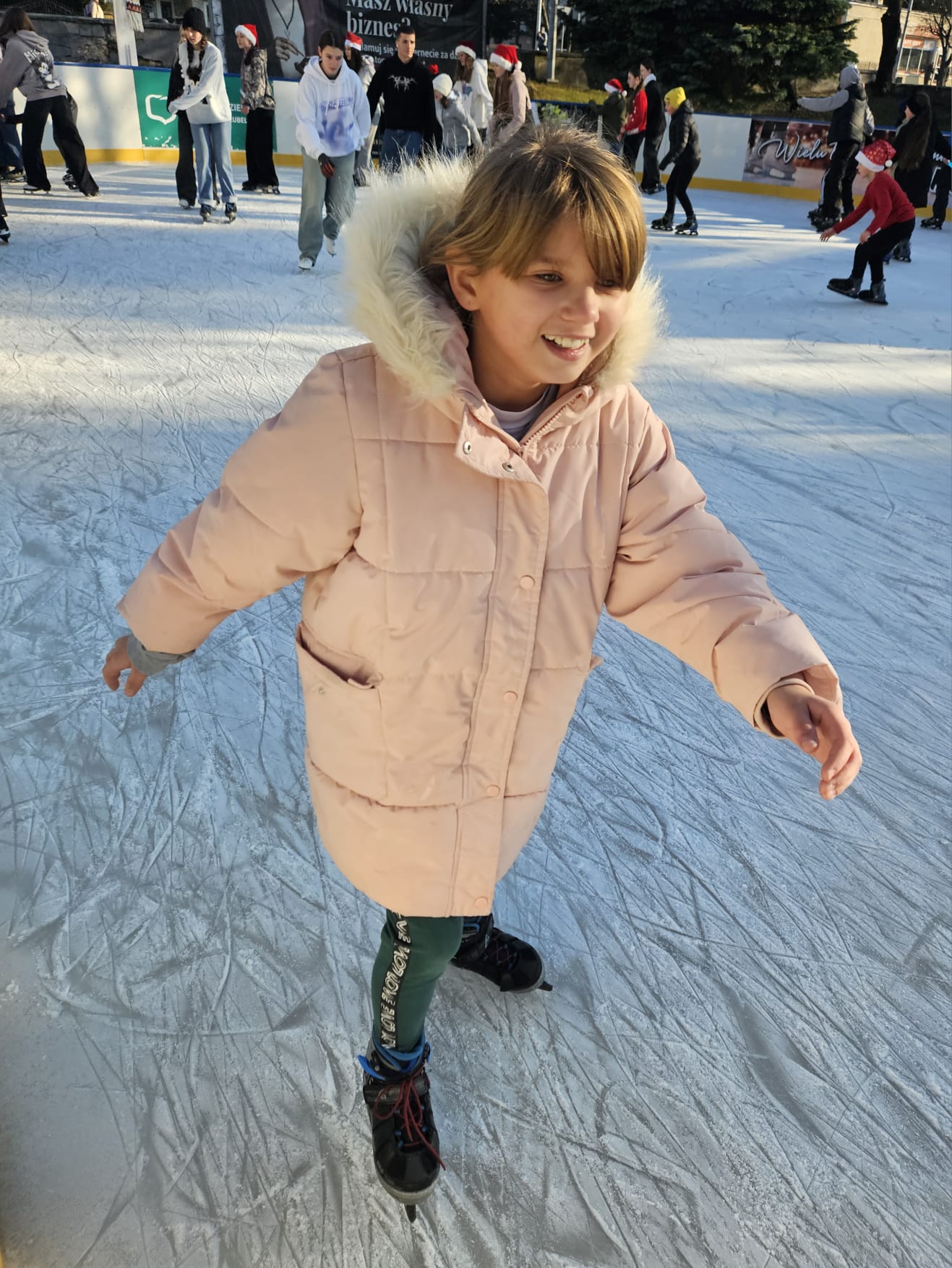 6 grudnia uczniowie klasy 4c mieli wyjątkową okazję uczestniczyć w uroczystym otwarciu lodowiska miejskiego. Świąteczną atmosferę podgrzewała obecność samego Mikołaja oraz jego pomocnicy – uroczej Śnieżynki! Dzieci bawiły się świetnie, biorąc udział w różnorodnych grach i zabawach na lodzie, które przygotował nasz wyjątkowy gość. Była to nie tylko okazja do nauki nowych umiejętności, ale także doskonały moment na integrację i wspólną zabawę w magicznej, mikołajkowej atmosferze.