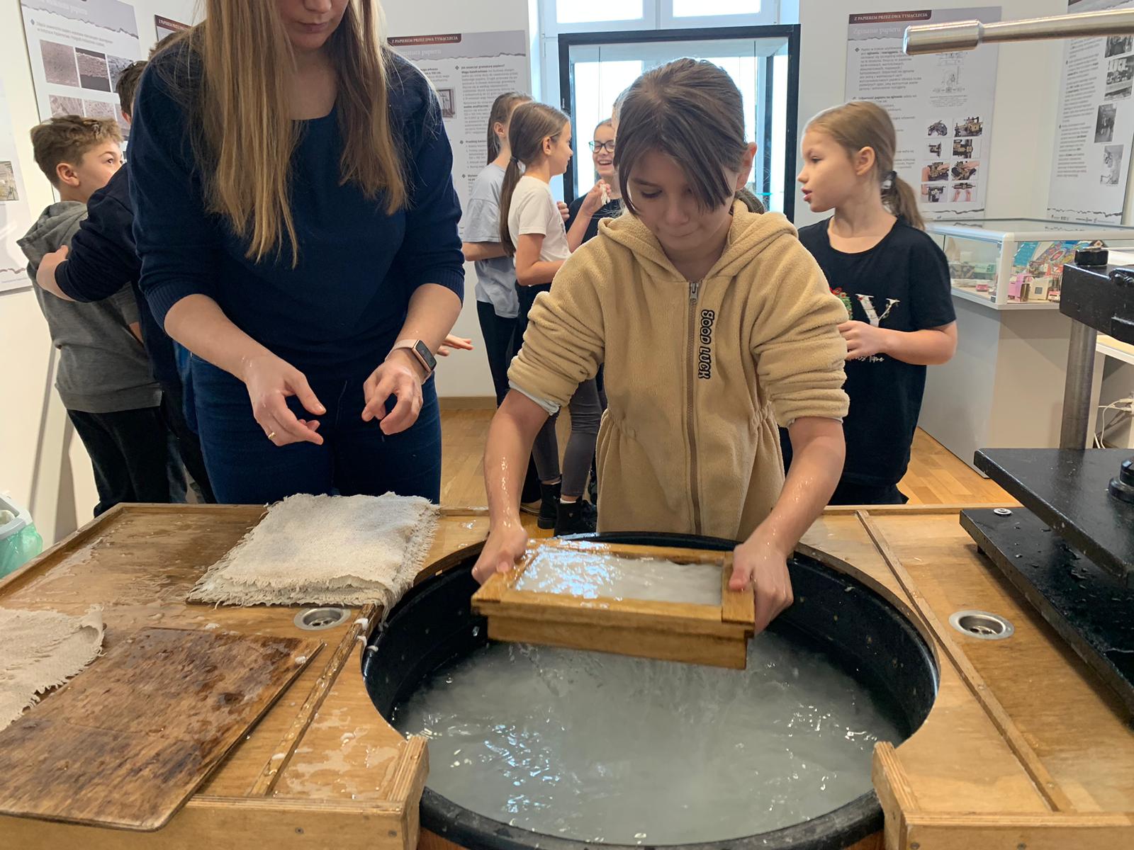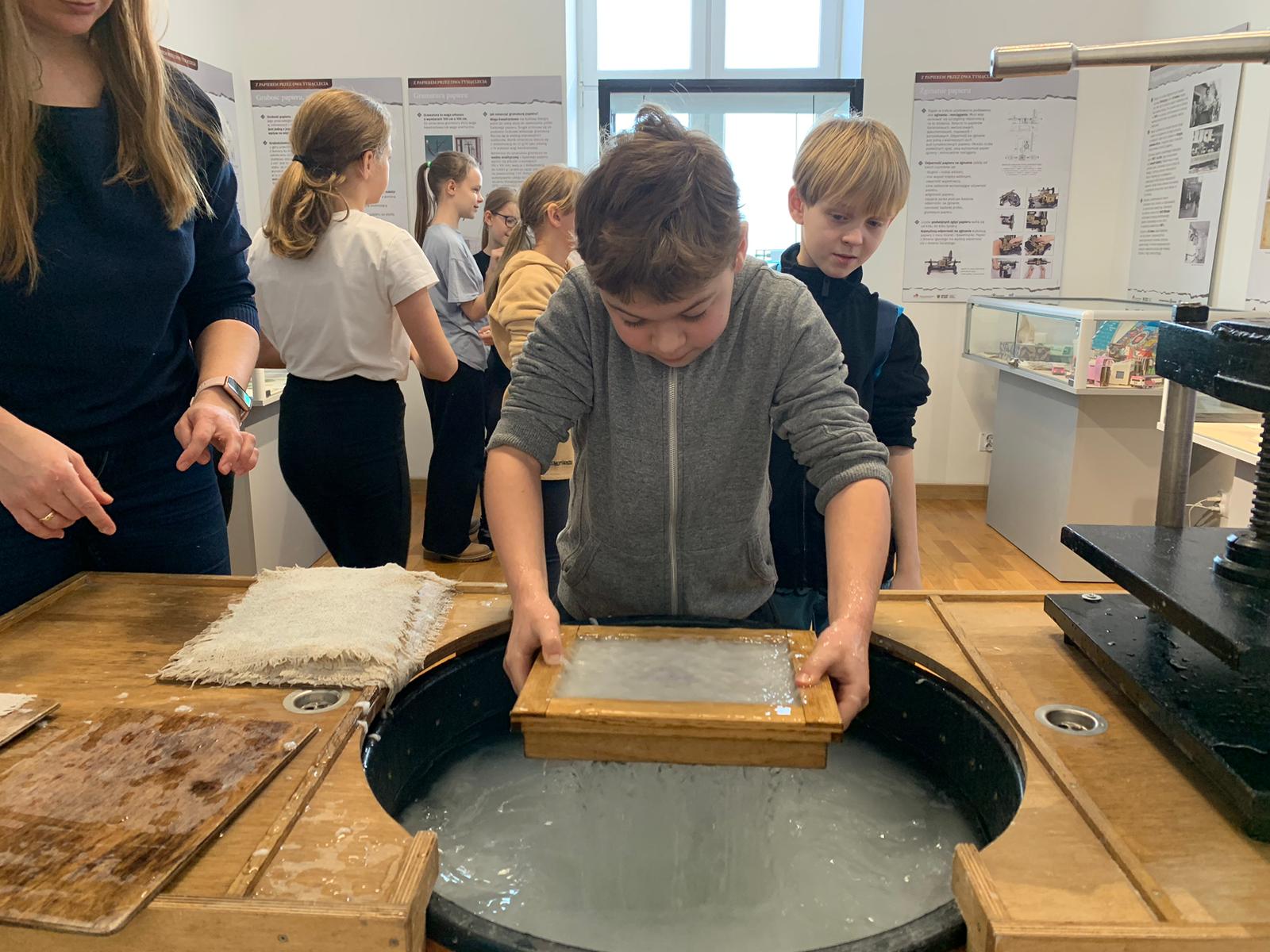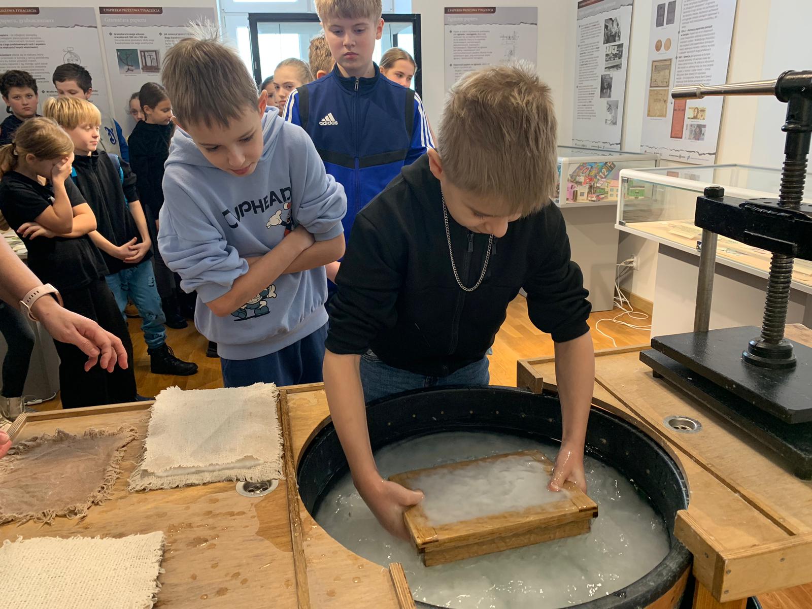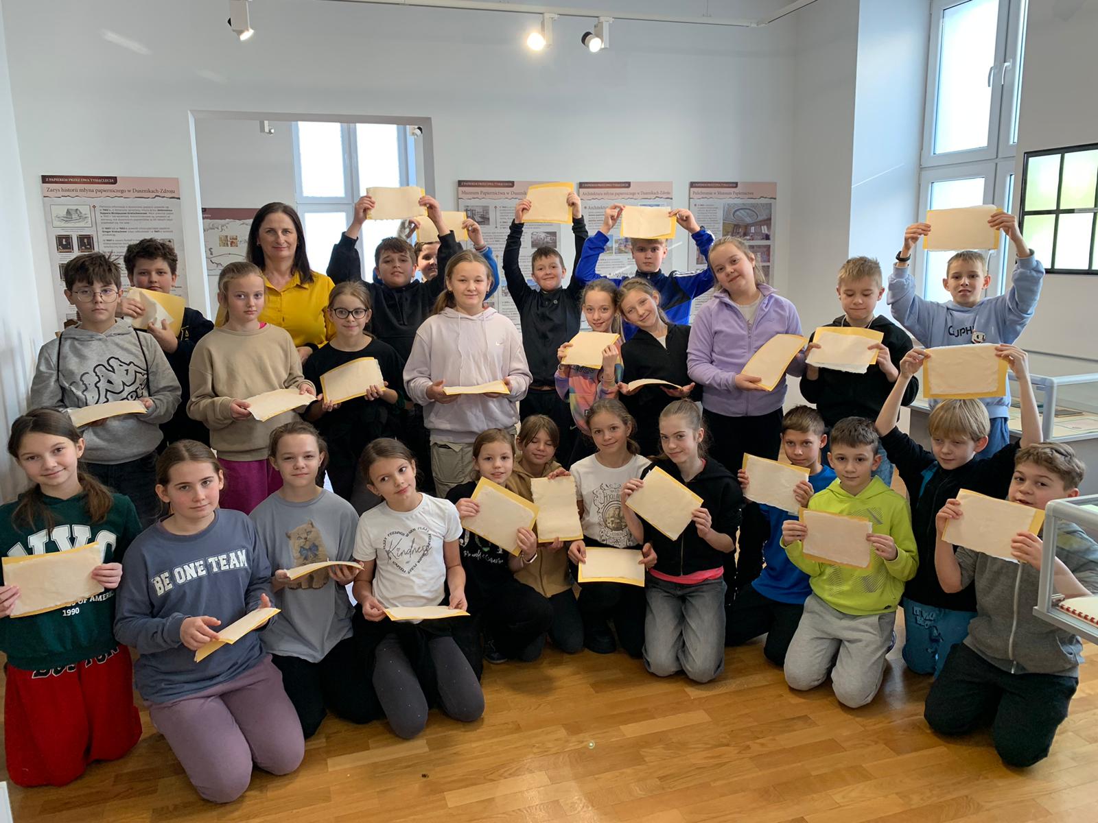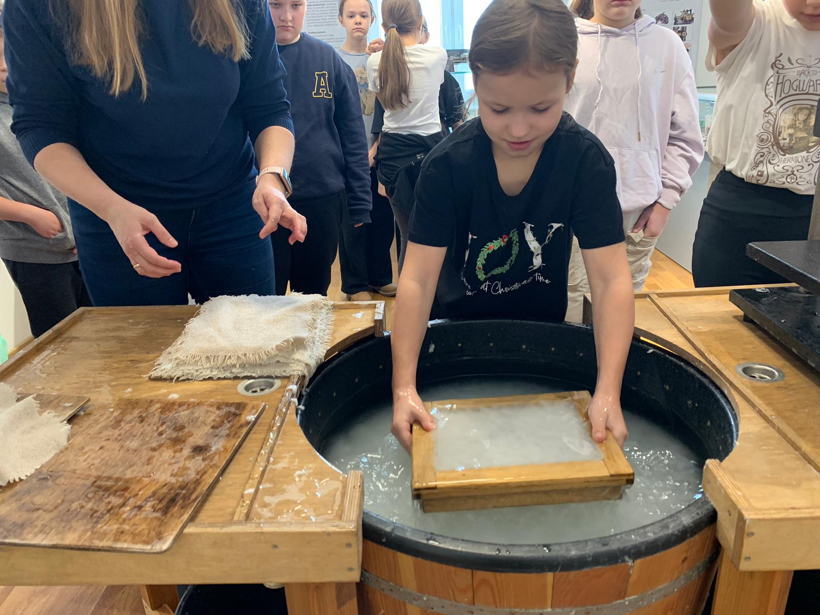 W dniu 23 stycznia uczniowie klasy 4C wraz z wychowawczynią Anną Kijko wzięli udział w ciekawych warsztatach czerpania papieru na terenie Muzeum Regionalnego w Tomaszowie Lubelskim. Uczniowie mieli niecodzienną okazję do utworzenia kartki papieru metodą czerpania rozpuszczonej w wodzie celulozy. Była to nie lada zabawa i ciekawe doświadczenie. Wytwory własne uczniowie zabrali do domu.