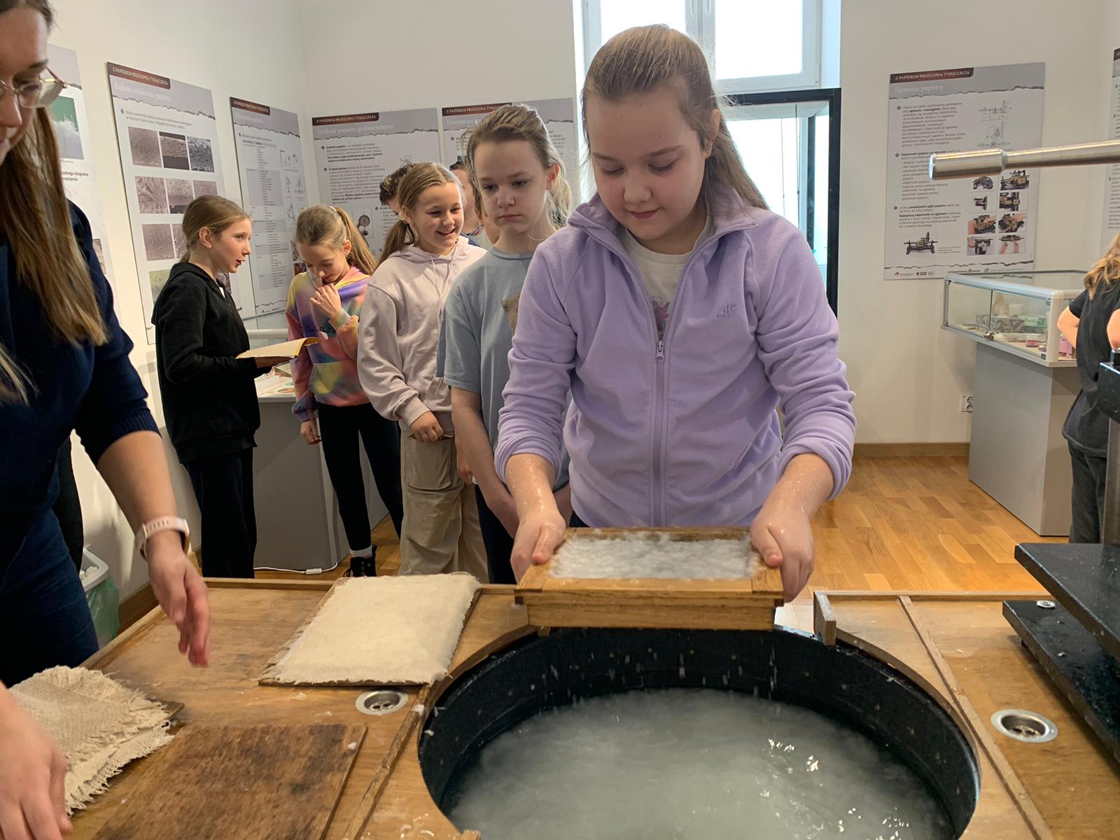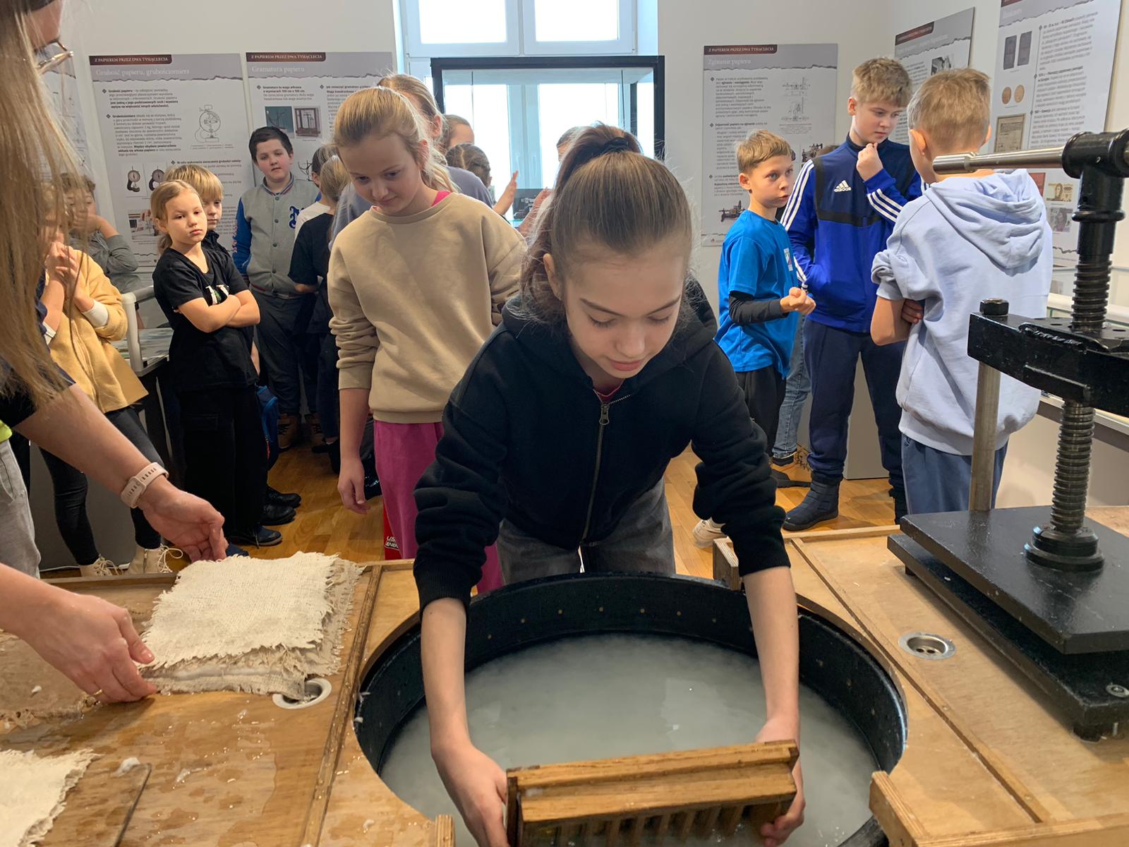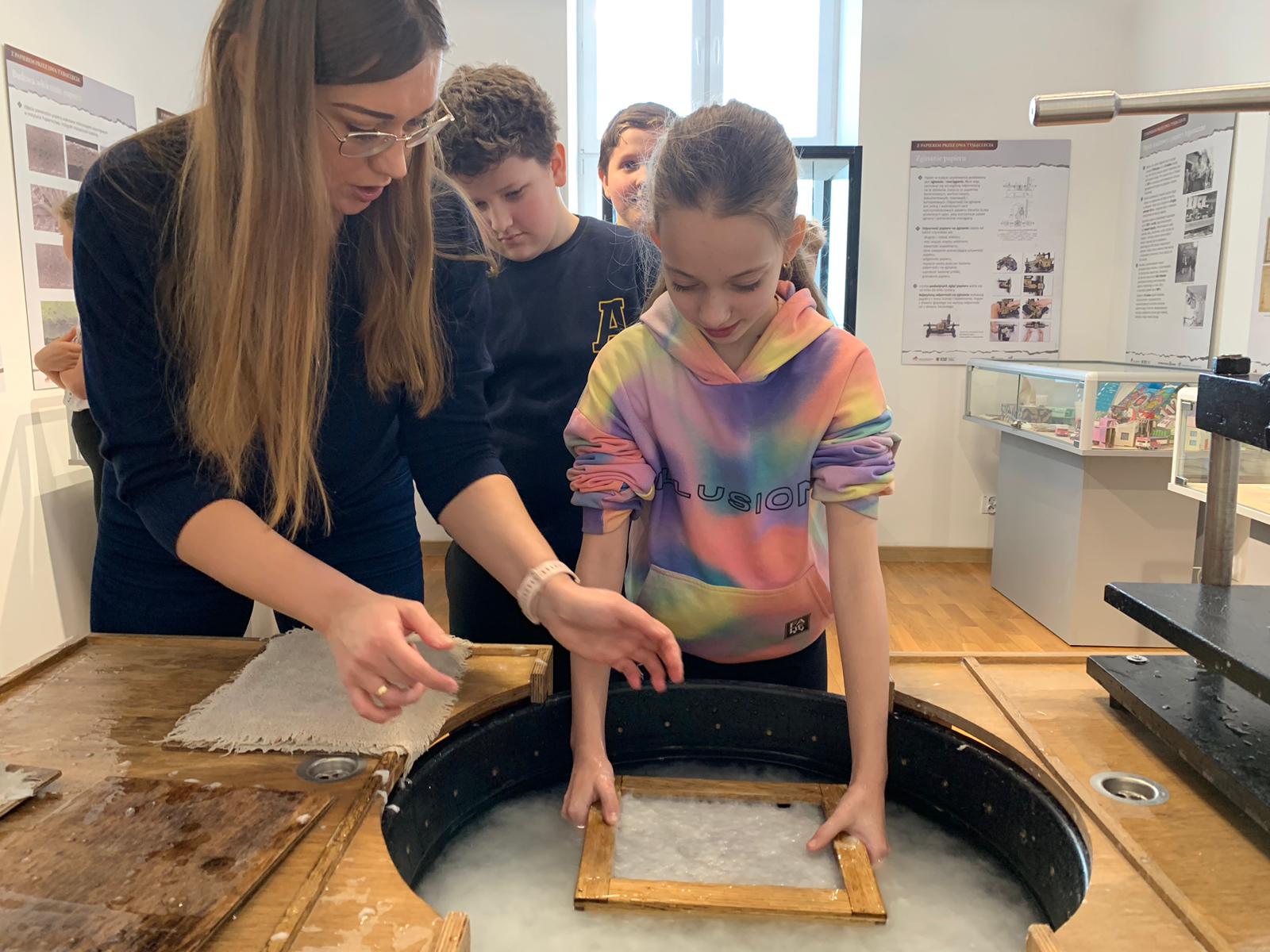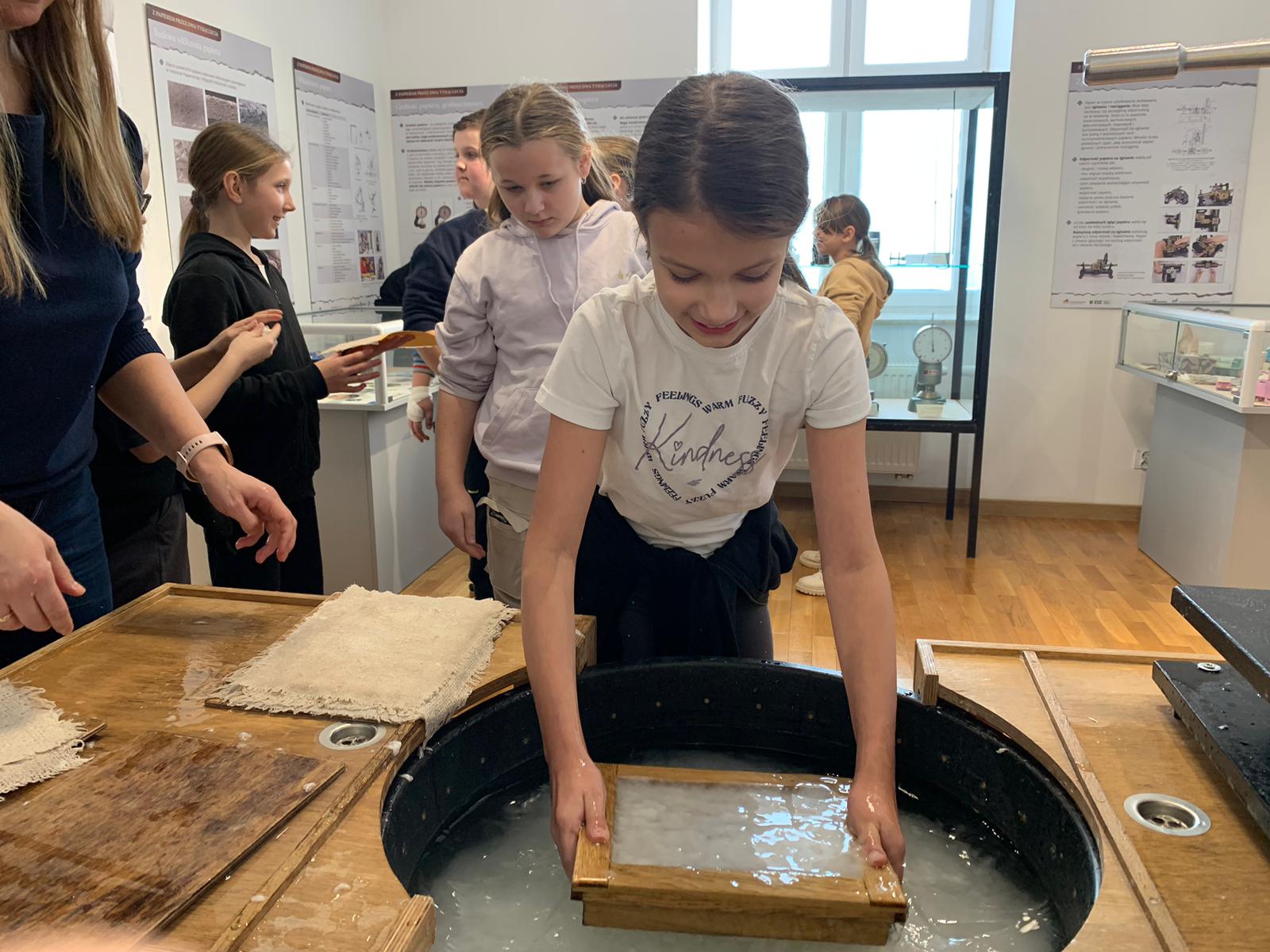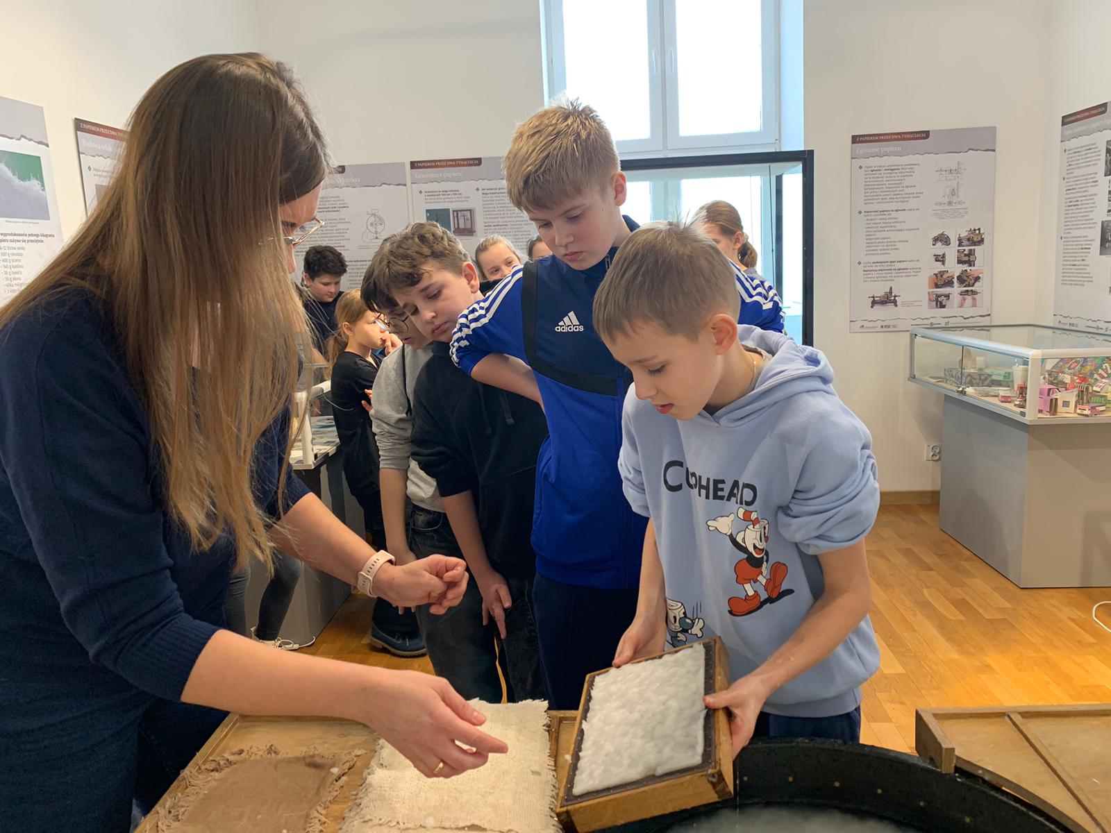 W dniu 23 stycznia uczniowie klasy 4C wraz z wychowawczynią Anną Kijko wzięli udział w ciekawych warsztatach czerpania papieru na terenie Muzeum Regionalnego w Tomaszowie Lubelskim. Uczniowie mieli niecodzienną okazję do utworzenia kartki papieru metodą czerpania rozpuszczonej w wodzie celulozy. Była to nie lada zabawa i ciekawe doświadczenie. Wytwory własne uczniowie zabrali do domu.