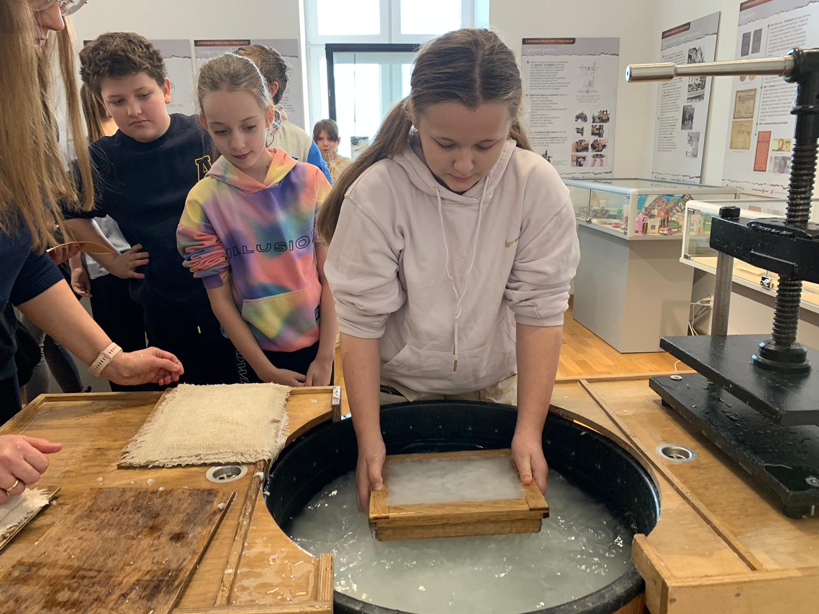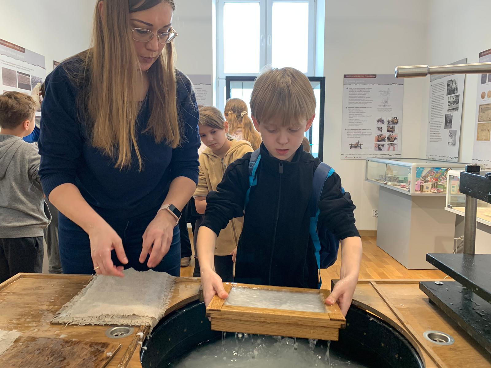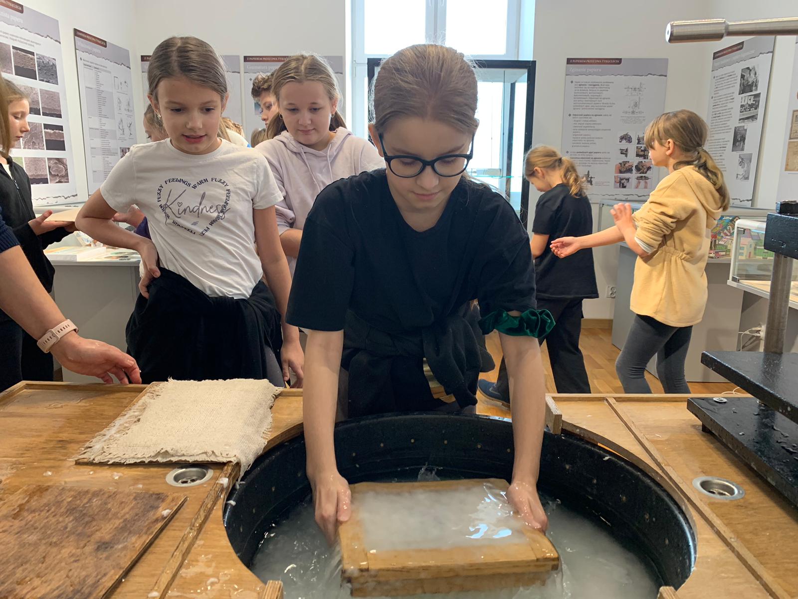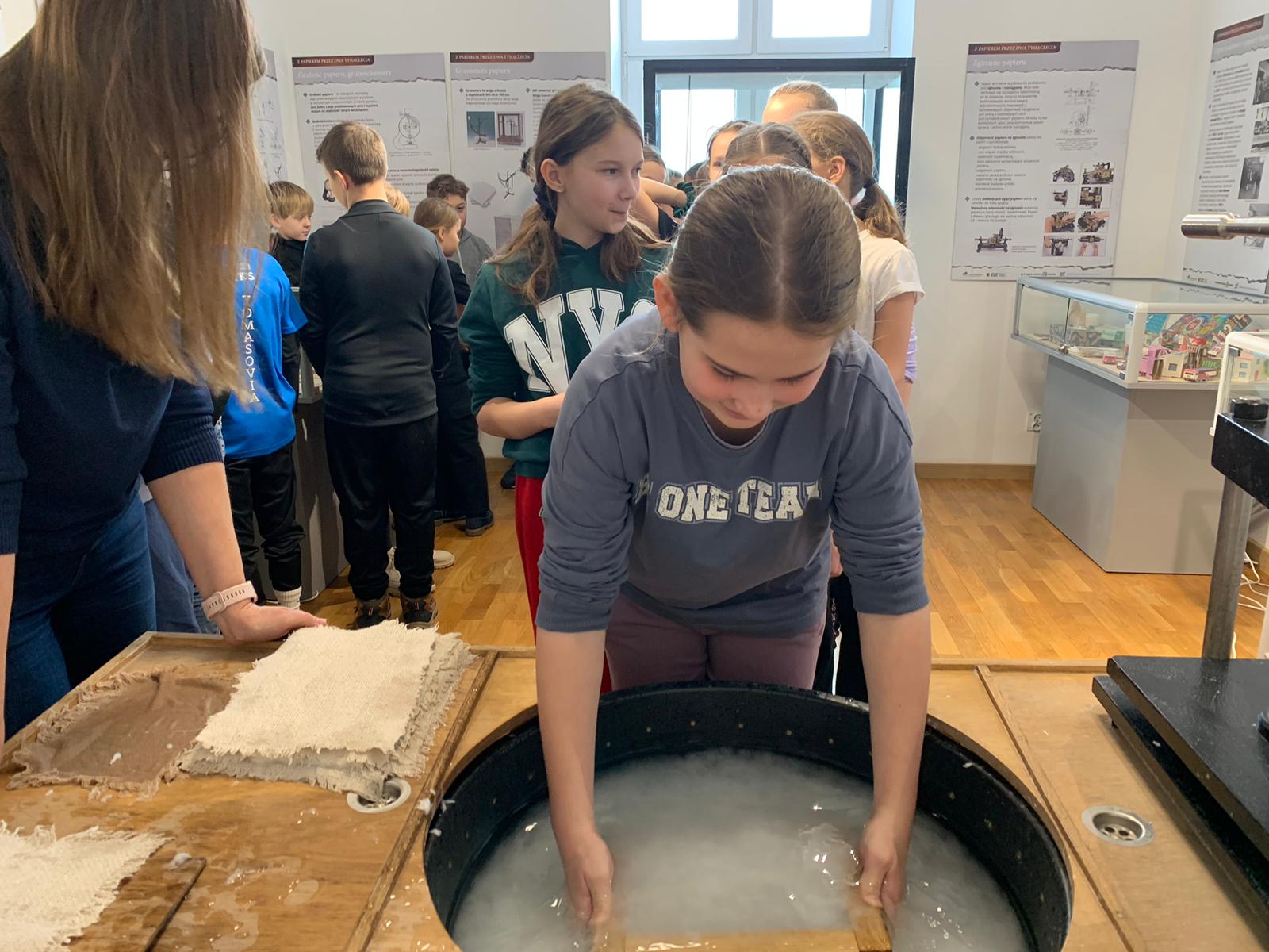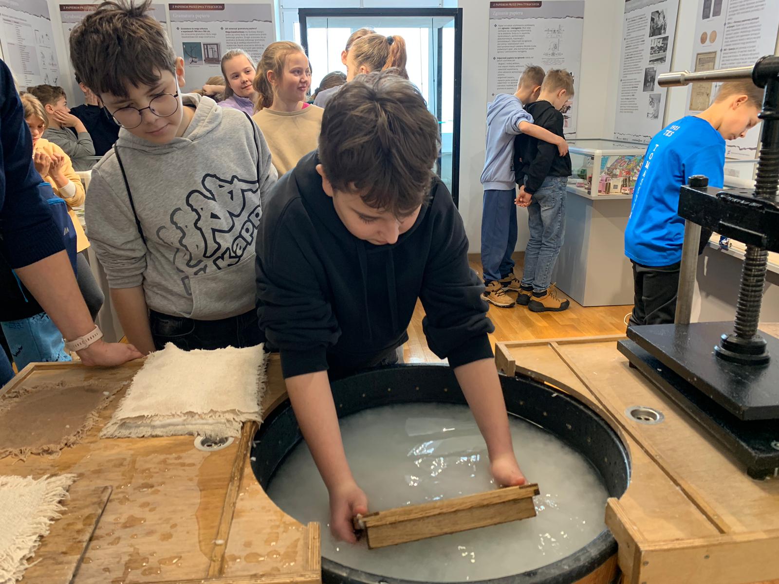 W dniu 23 stycznia uczniowie klasy 4C wraz z wychowawczynią Anną Kijko wzięli udział w ciekawych warsztatach czerpania papieru na terenie Muzeum Regionalnego w Tomaszowie Lubelskim. Uczniowie mieli niecodzienną okazję do utworzenia kartki papieru metodą czerpania rozpuszczonej w wodzie celulozy. Była to nie lada zabawa i ciekawe doświadczenie. Wytwory własne uczniowie zabrali do domu.