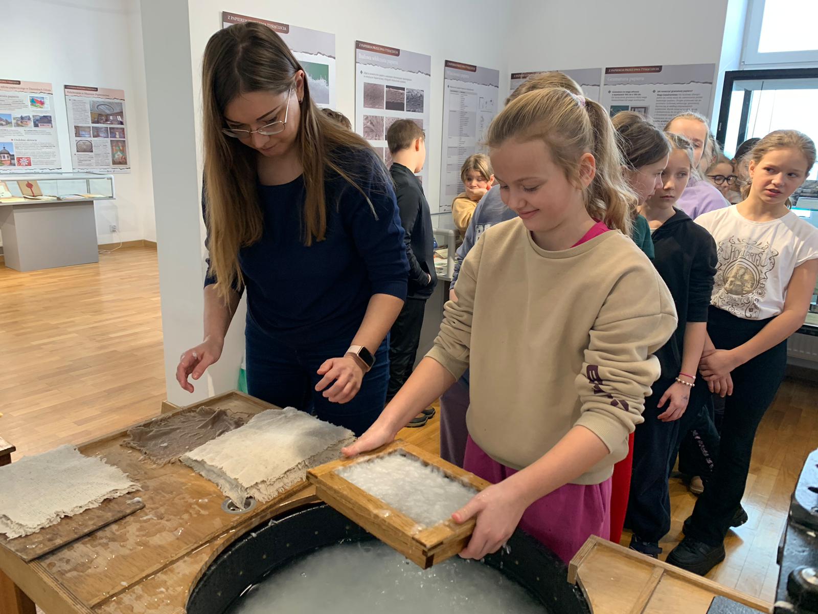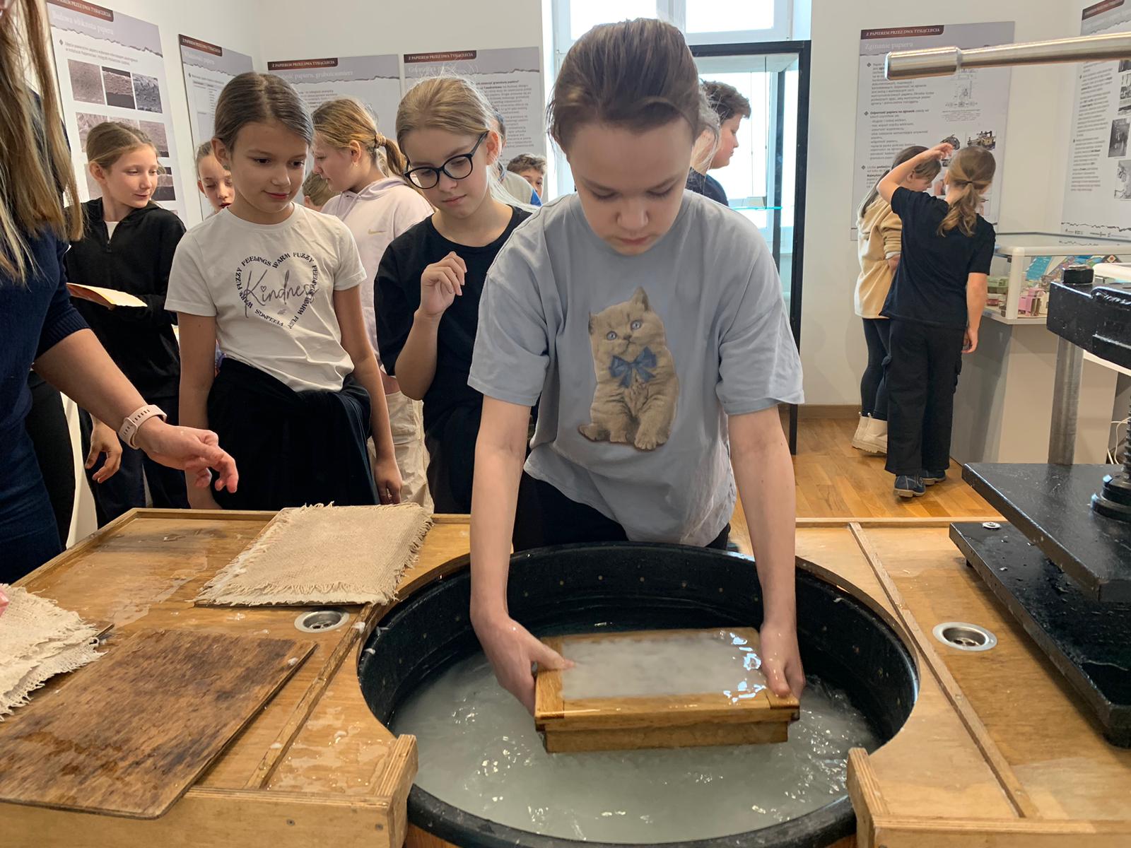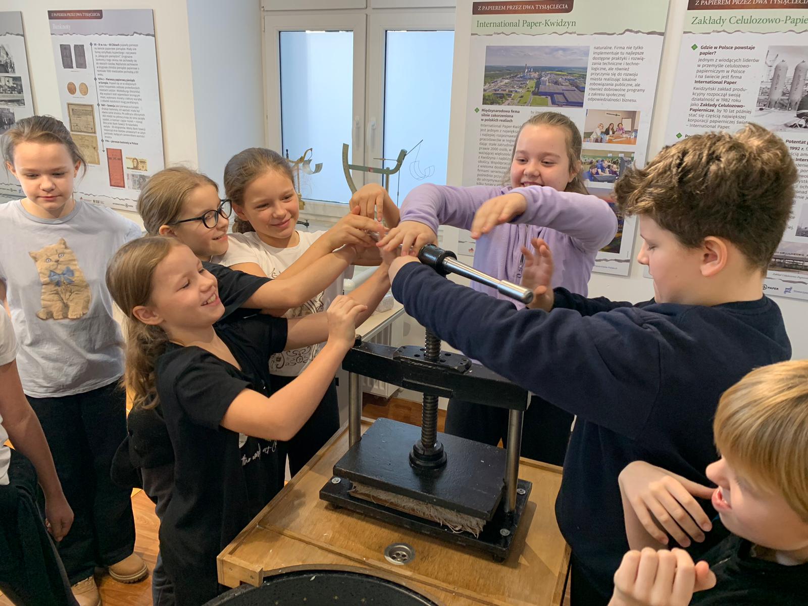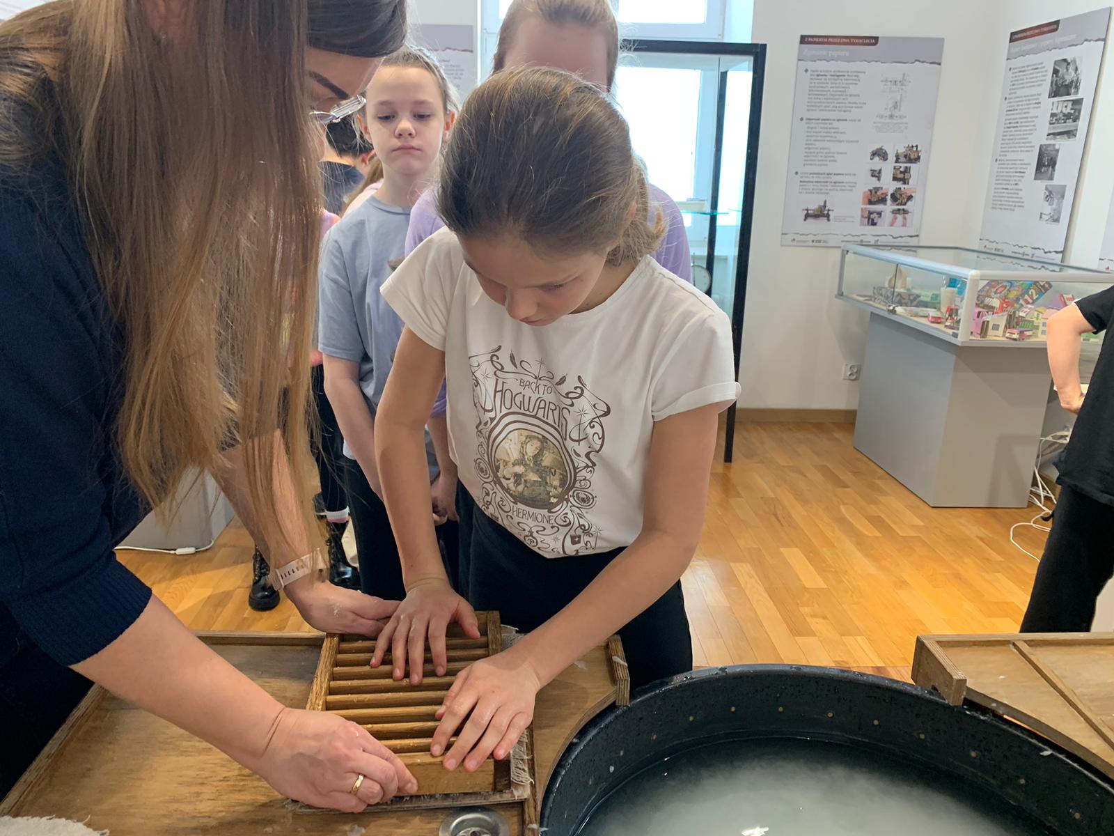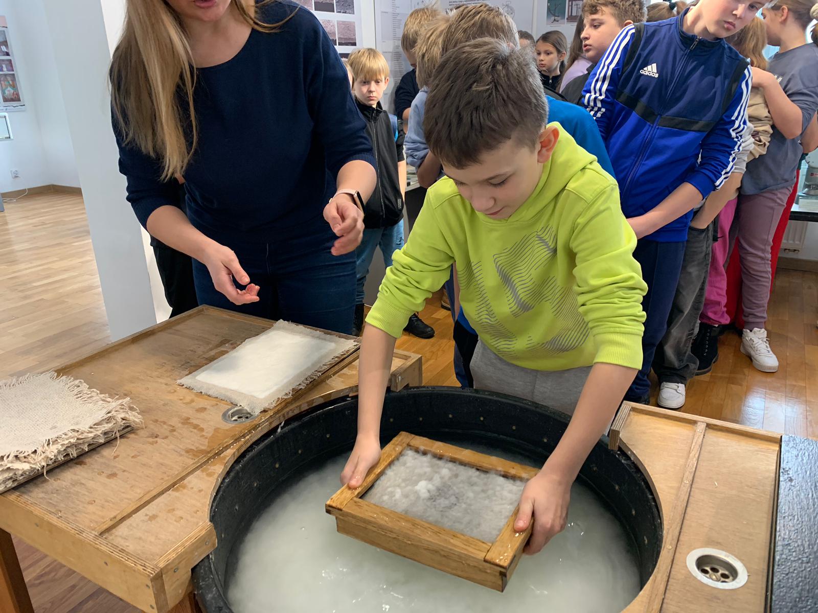 W dniu 23 stycznia uczniowie klasy 4C wraz z wychowawczynią Anną Kijko wzięli udział w ciekawych warsztatach czerpania papieru na terenie Muzeum Regionalnego w Tomaszowie Lubelskim. Uczniowie mieli niecodzienną okazję do utworzenia kartki papieru metodą czerpania rozpuszczonej w wodzie celulozy. Była to nie lada zabawa i ciekawe doświadczenie. Wytwory własne uczniowie zabrali do domu.