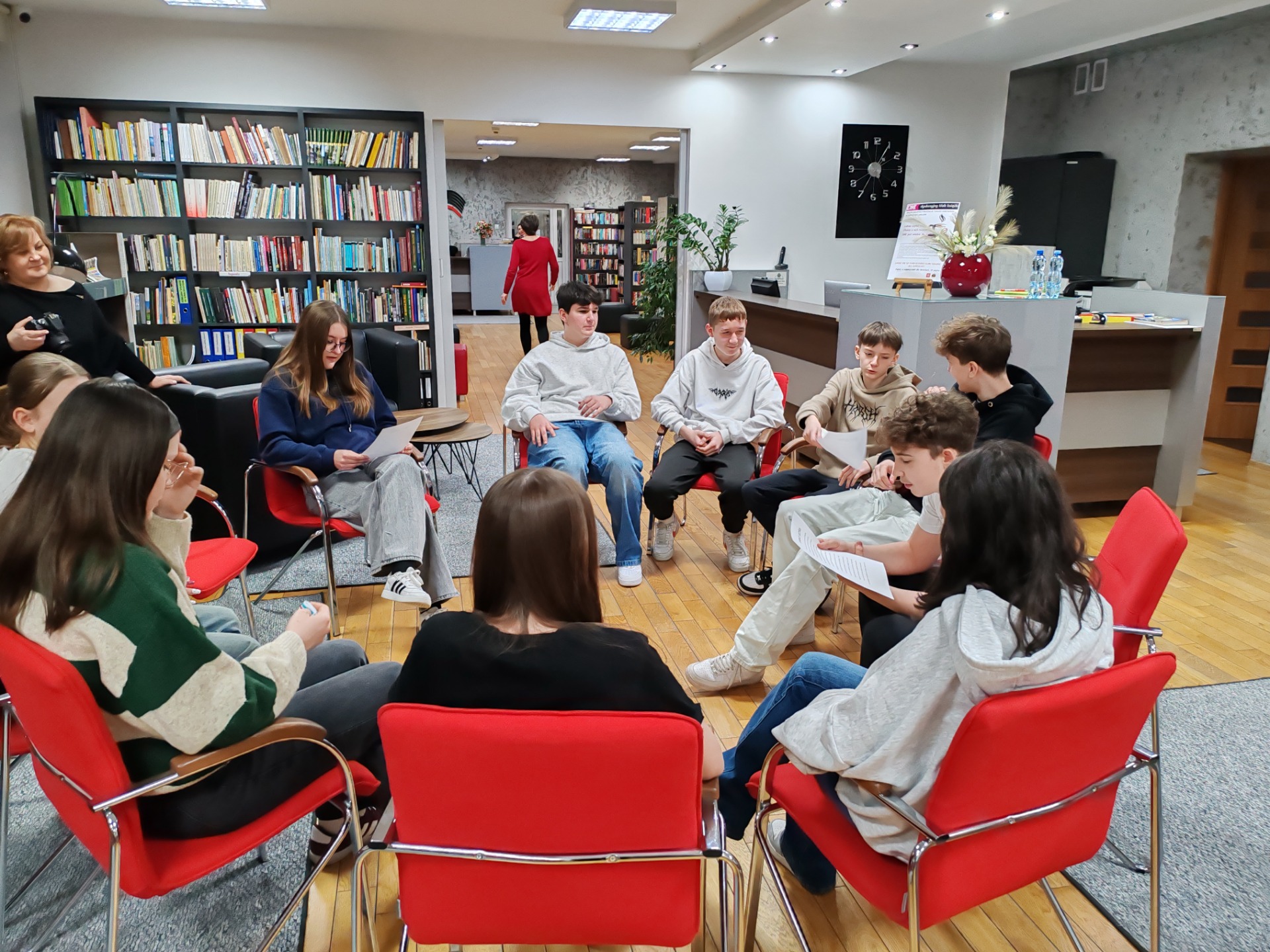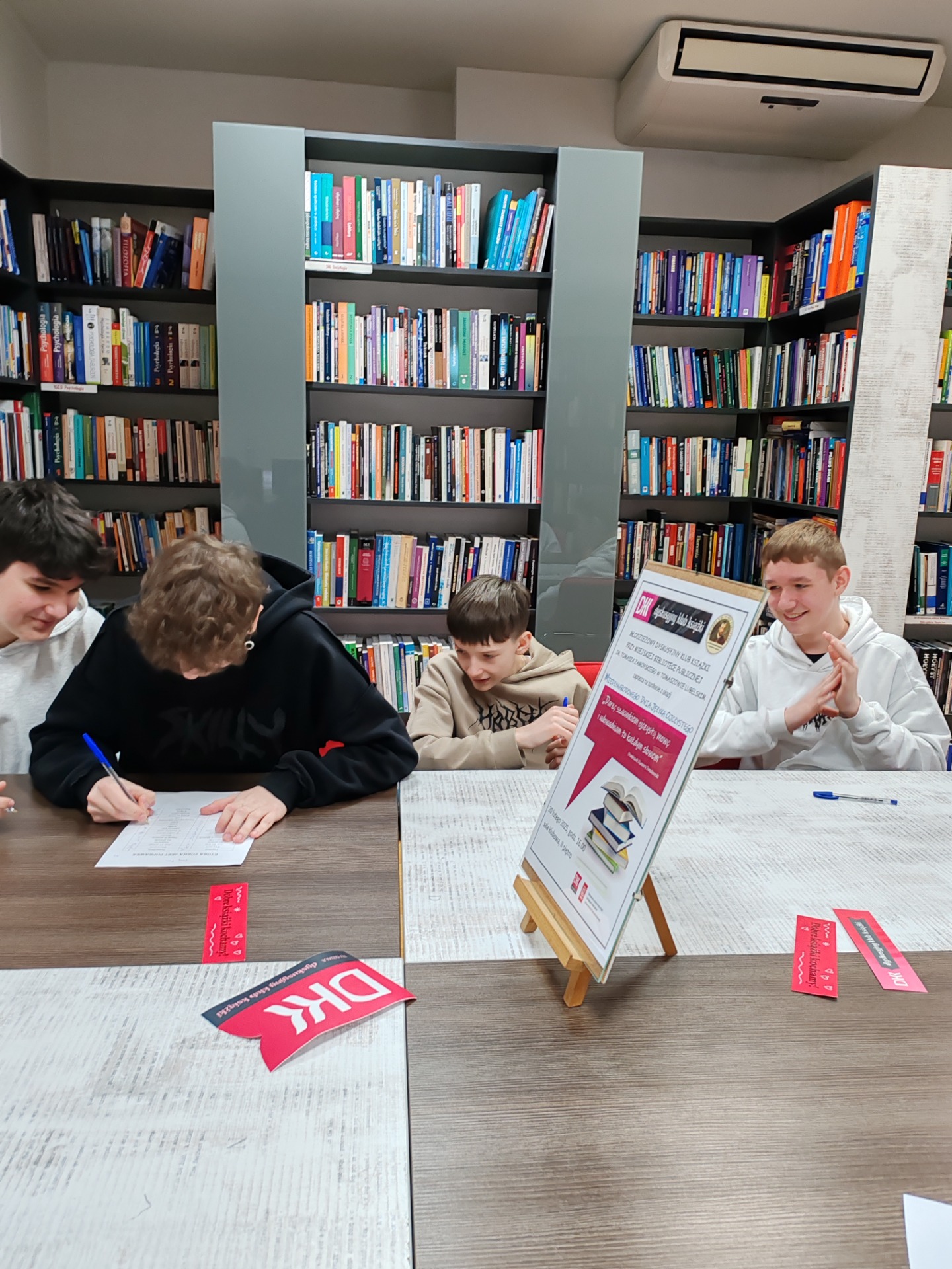 W ramach przypadającego na 21 lutego Międzynarodowego Dnia Języka Ojczystego młodzież z MDKK zebrała się w bibliotece, aby stanąć w szranki o tytuł Mistrza Języka Polskiego. Uczestnicy zabawy musieli wykazać się dobrą znajomością zasad gramatycznych, części mowy, znaczenia słów oraz poprawną dykcją i wymową trudnych dźwięków. Wyłoniliśmy indywidualnego mistrza łamańców językowych oraz mistrza drużynowego znajomości zasad i słów języka polskiego. Zadania były trudny, ale śmiechu było co nie miara! Kolejne spotkania klubu przed nami!🙂