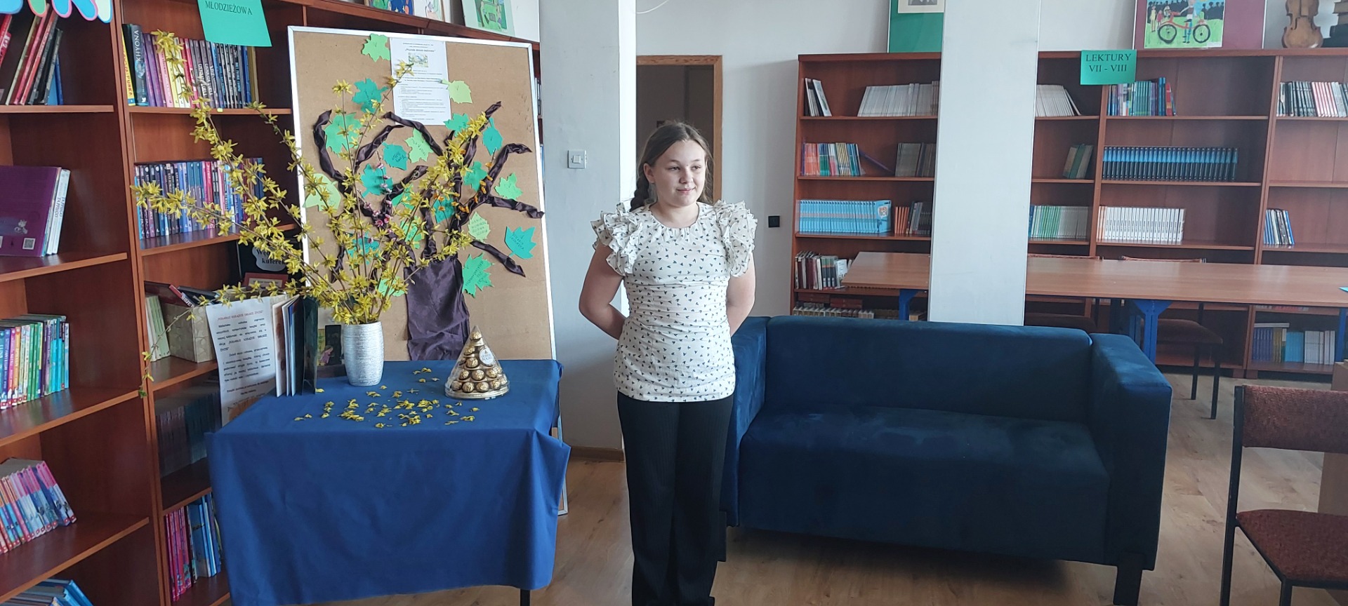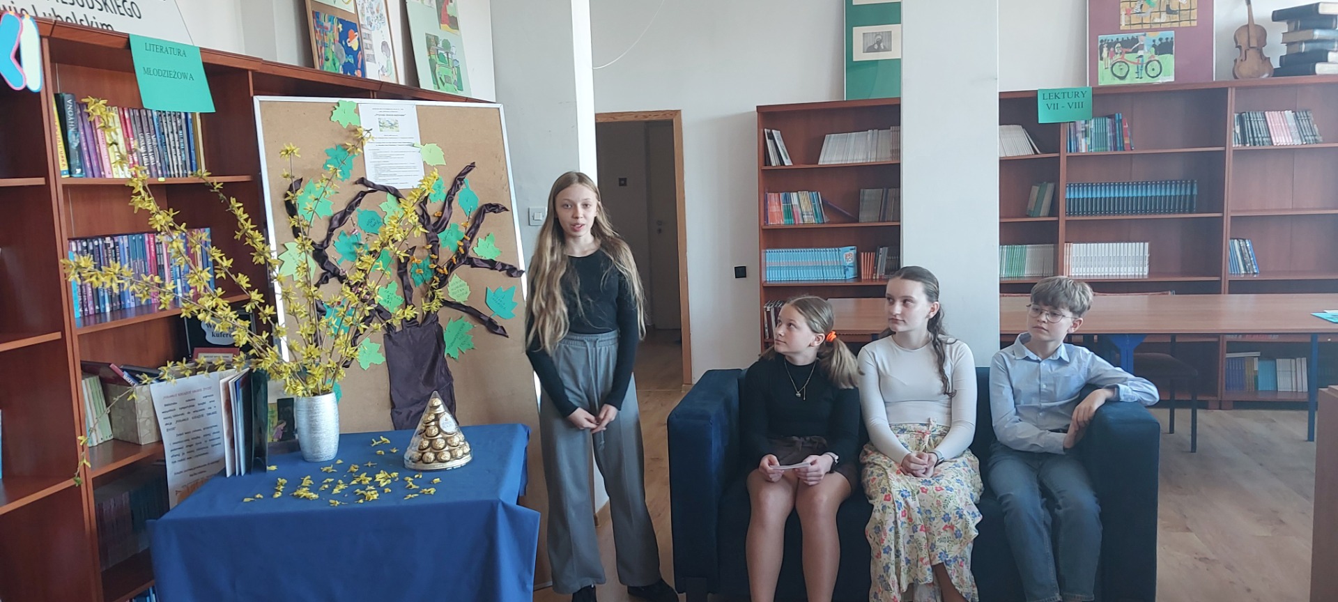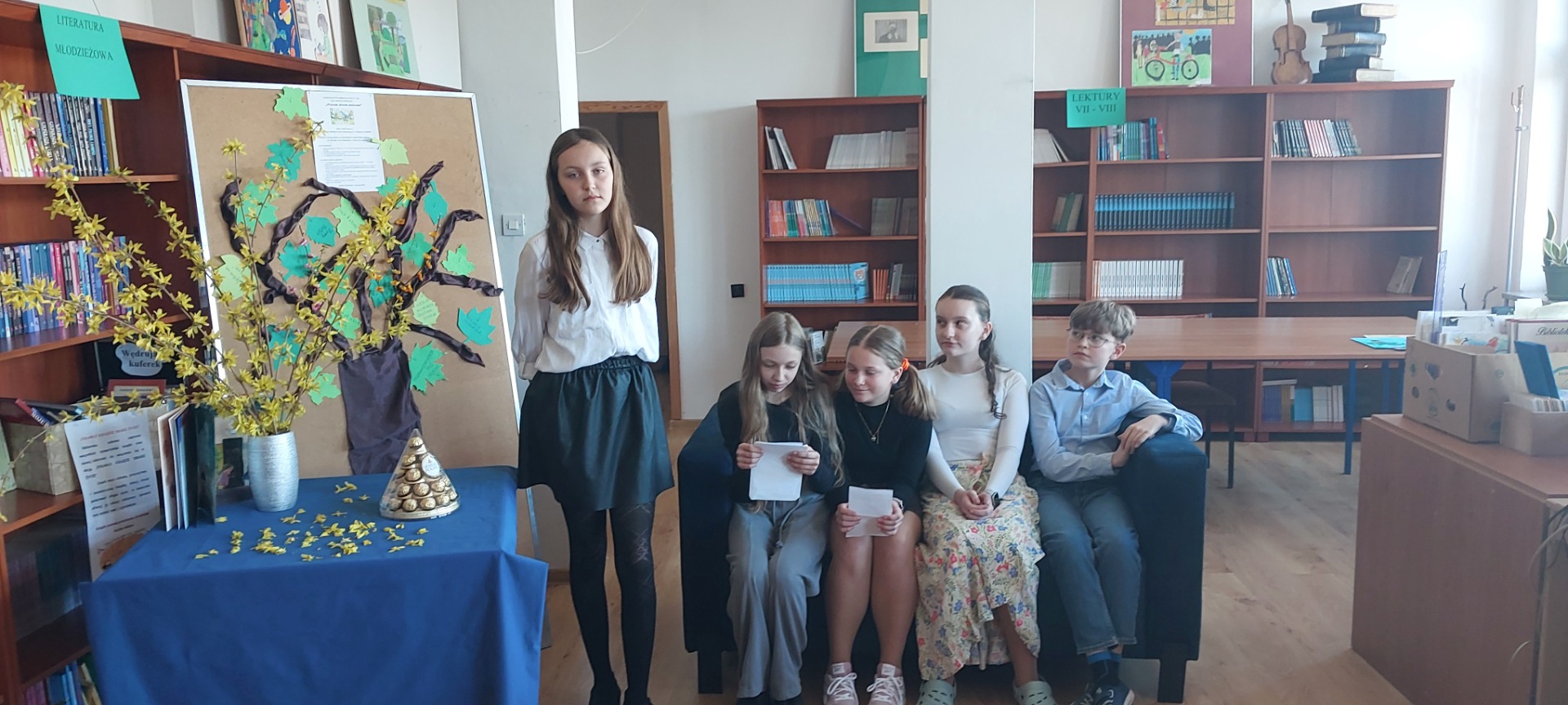 4 kwietnia w bibliotece szkolnej odbył się konkurs recytatorski dla klas IV – VIII z cyklu „Biesiada Literacka – Przyroda słowem malowana”. Celem konkursu było pogłębianie poczucia estetyki i wrażliwości na piękno przyrody, rozwijanie zdolności recytatorskich oraz poszukiwanie nowych talentów wśród uczniów klas starszych. Nagrodzeni to: Zofia Lipian kl. IV c, Aleksander Krech kl. IV c, Eryk Gałka kl. IV c, Michał Gmiterek VI a, Julia Majdanik VI e, Małgorzata Przybyła V c, Barbara Krzaczkowska IV a. Wyróżnieni: Emilia Koper V c, Hanna Olender kl. V c. Nagrodzeni i wyróżnieni otrzymali dyplomy oraz nagrody książkowe ufundowane przez Dyrekcję Szkoły i Radę Rodziców.