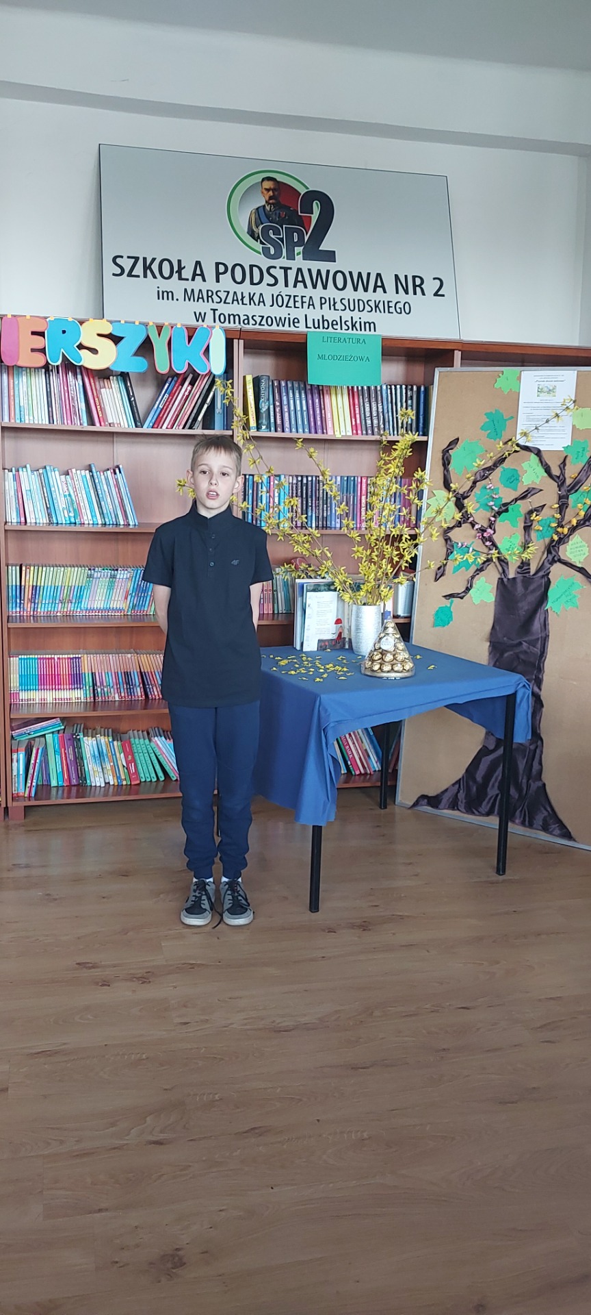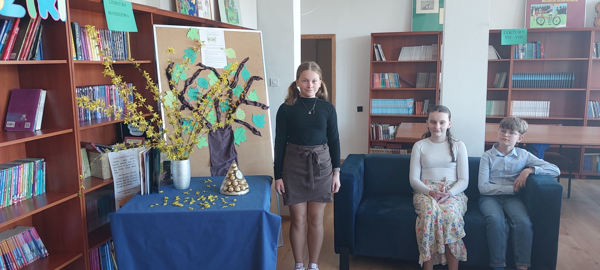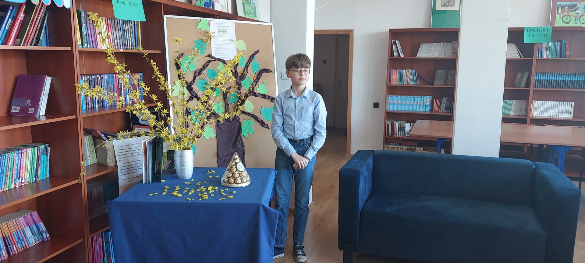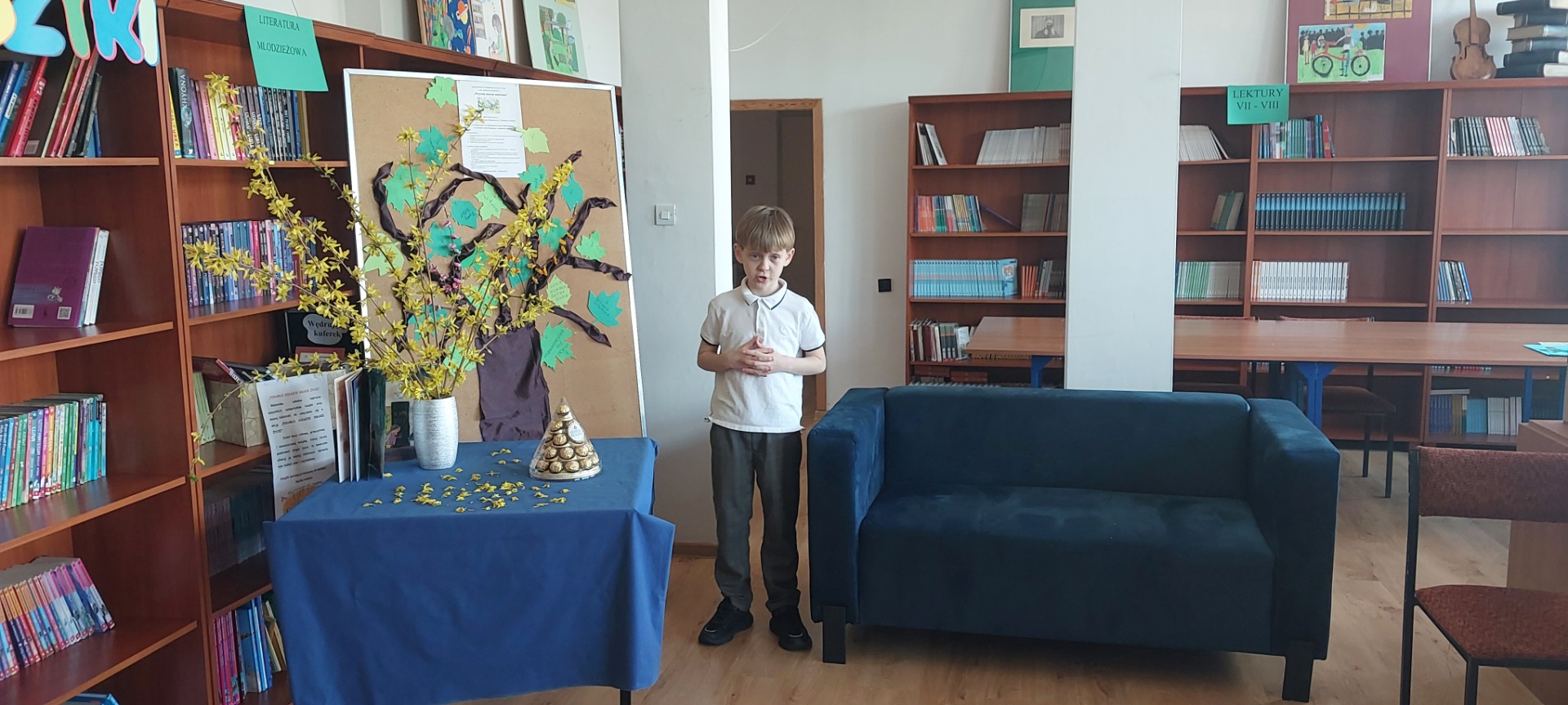 4 kwietnia w bibliotece szkolnej odbył się konkurs recytatorski dla klas IV – VIII z cyklu „Biesiada Literacka – Przyroda słowem malowana”. Celem konkursu było pogłębianie poczucia estetyki i wrażliwości na piękno przyrody, rozwijanie zdolności recytatorskich oraz poszukiwanie nowych talentów wśród uczniów klas starszych. Nagrodzeni to: Zofia Lipian kl. IV c, Aleksander Krech kl. IV c, Eryk Gałka kl. IV c, Michał Gmiterek VI a, Julia Majdanik VI e, Małgorzata Przybyła V c, Barbara Krzaczkowska IV a. Wyróżnieni: Emilia Koper V c, Hanna Olender kl. V c. Nagrodzeni i wyróżnieni otrzymali dyplomy oraz nagrody książkowe ufundowane przez Dyrekcję Szkoły i Radę Rodziców.