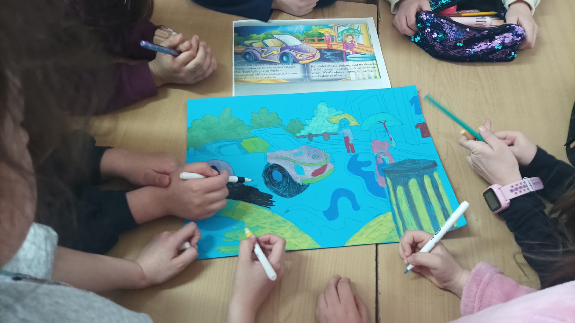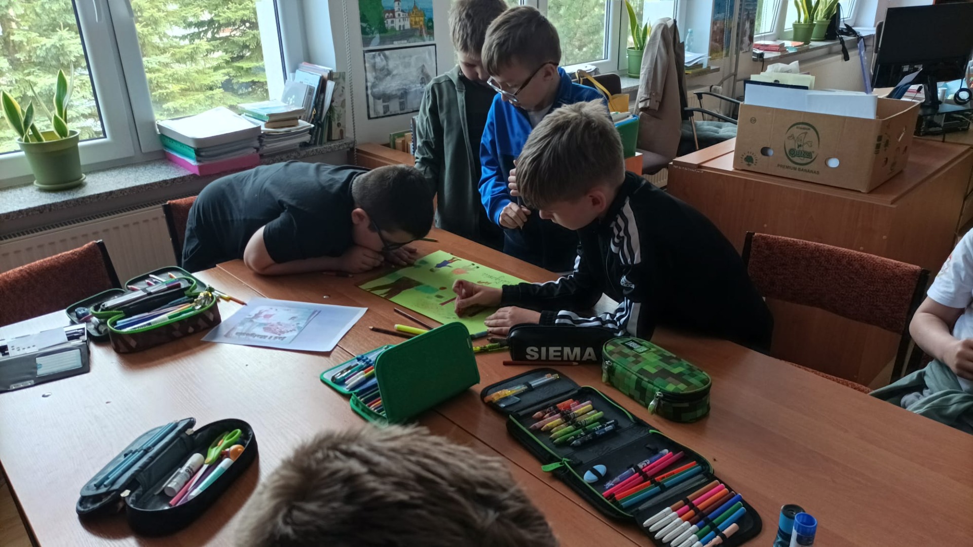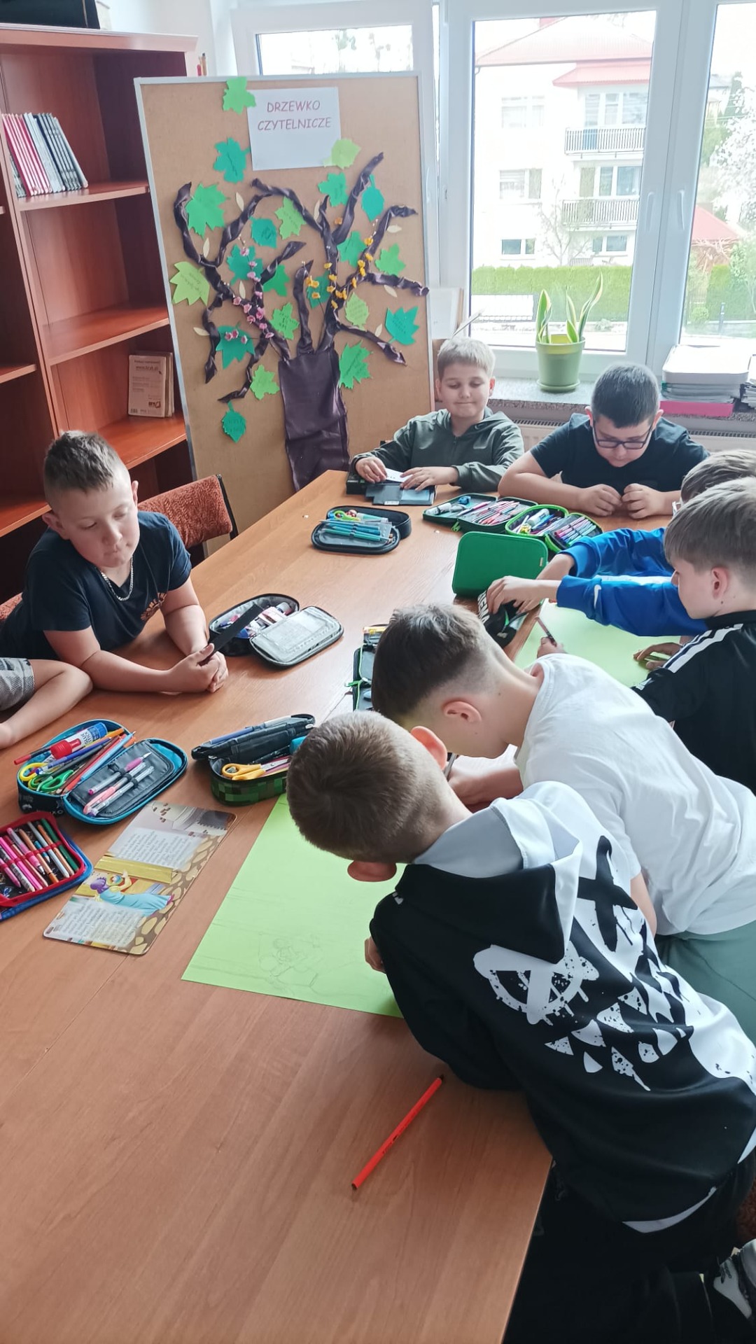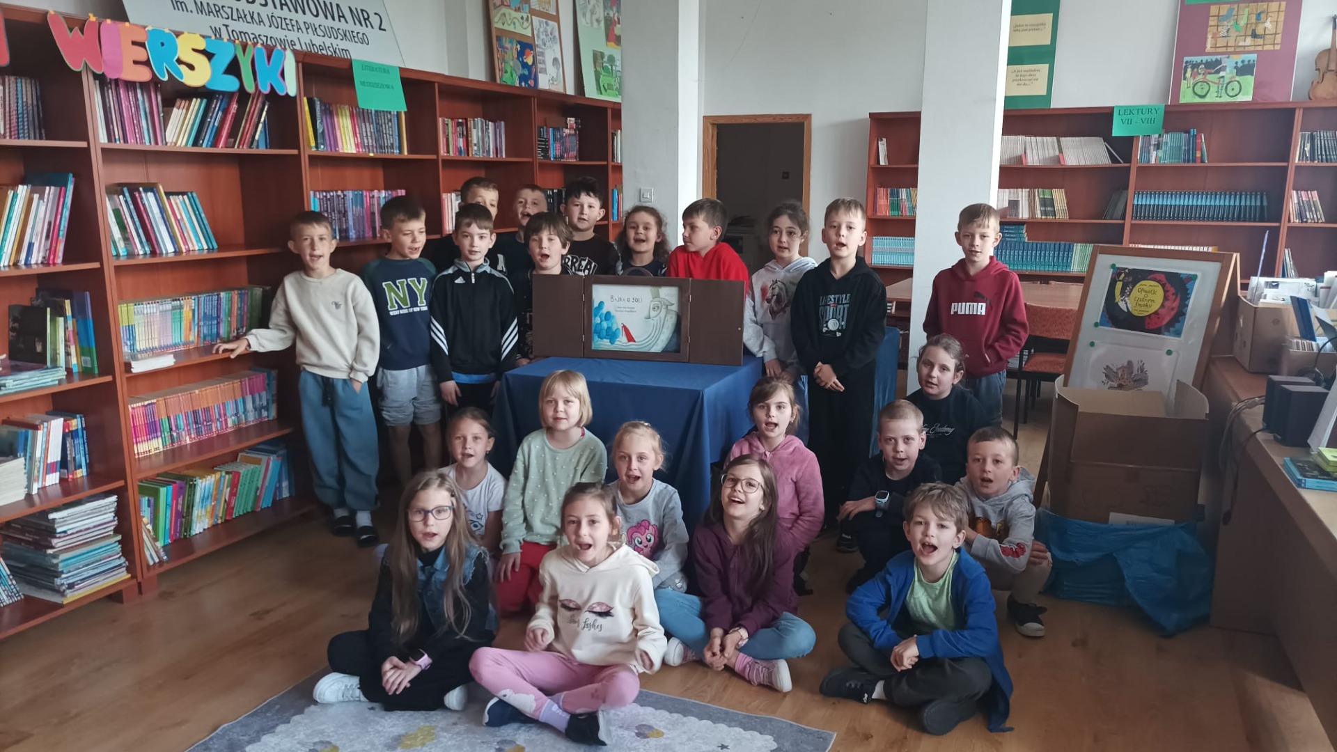 W miesiącach marzec – maj 2025 r. nauczyciele bibliotekarze realizowali innowację pedagogiczną „Teatr Ilustracji Kamishibai – Opowiemy Wam ...”. Adresatami innowacji byli uczniowie klas młodszych. Na zajęciach uczniowie zostali zapoznani z historią kamishibai, obejrzeli i wysłuchali teatr kamishibai „Bajka o soli” oraz opowiadania: „Żyrafa na rowerze, „Opowieść o Czarnym Smoku”, „Gadatliwy Ptak Narina”. Uczniowie samodzielnie stworzyli niepowtarzalne ilustracje do wybranych baśni, bajek i opowiadań: kl. I a „Czerwony Kapturek”, kl. I b „Zazdrosny Kabriolet”, kl. I c „Brzydkie Kaczątko”, kl. II a „Śpiąca królewna”, kl. II b „Dwa pociągi”, kl. II c „Jaś i Małgosia”, kl. III a „Mała Syrenka”, kl. III b „Alicja w Krainie Czarów”, kl. III c „Żabi król”.Teatrzyk kamishibai wzbudził duże zainteresowanie. Była to doskonała forma zabawy, edukacji i twórczego działania oraz promowania czytelnictwa wśród dzieci.