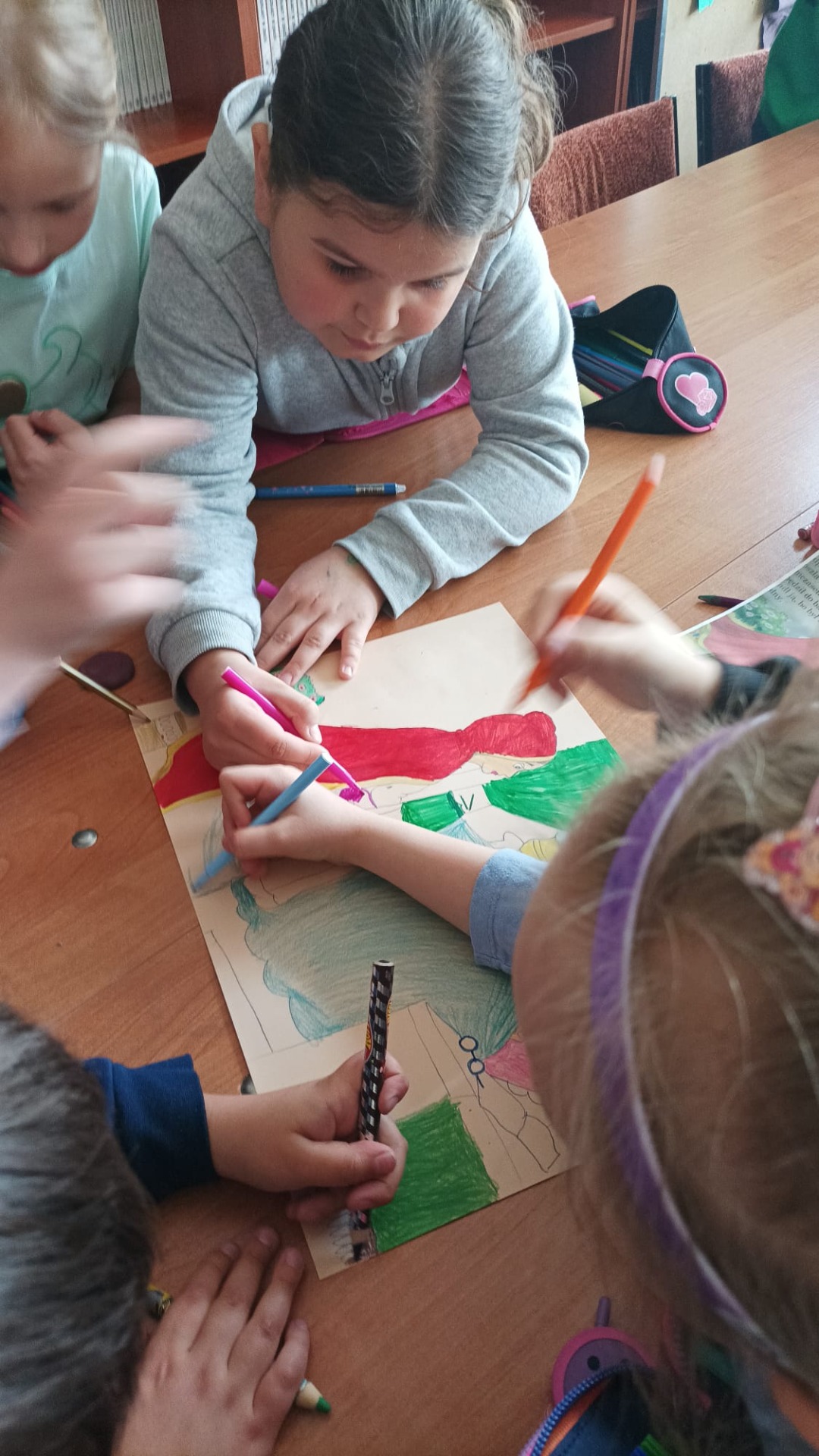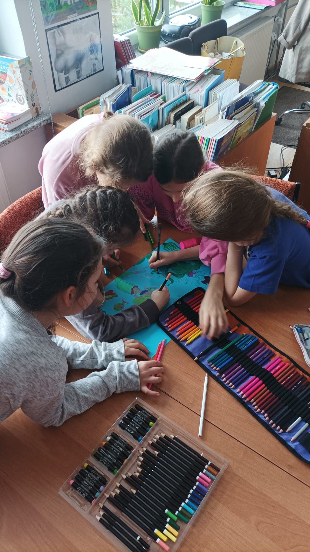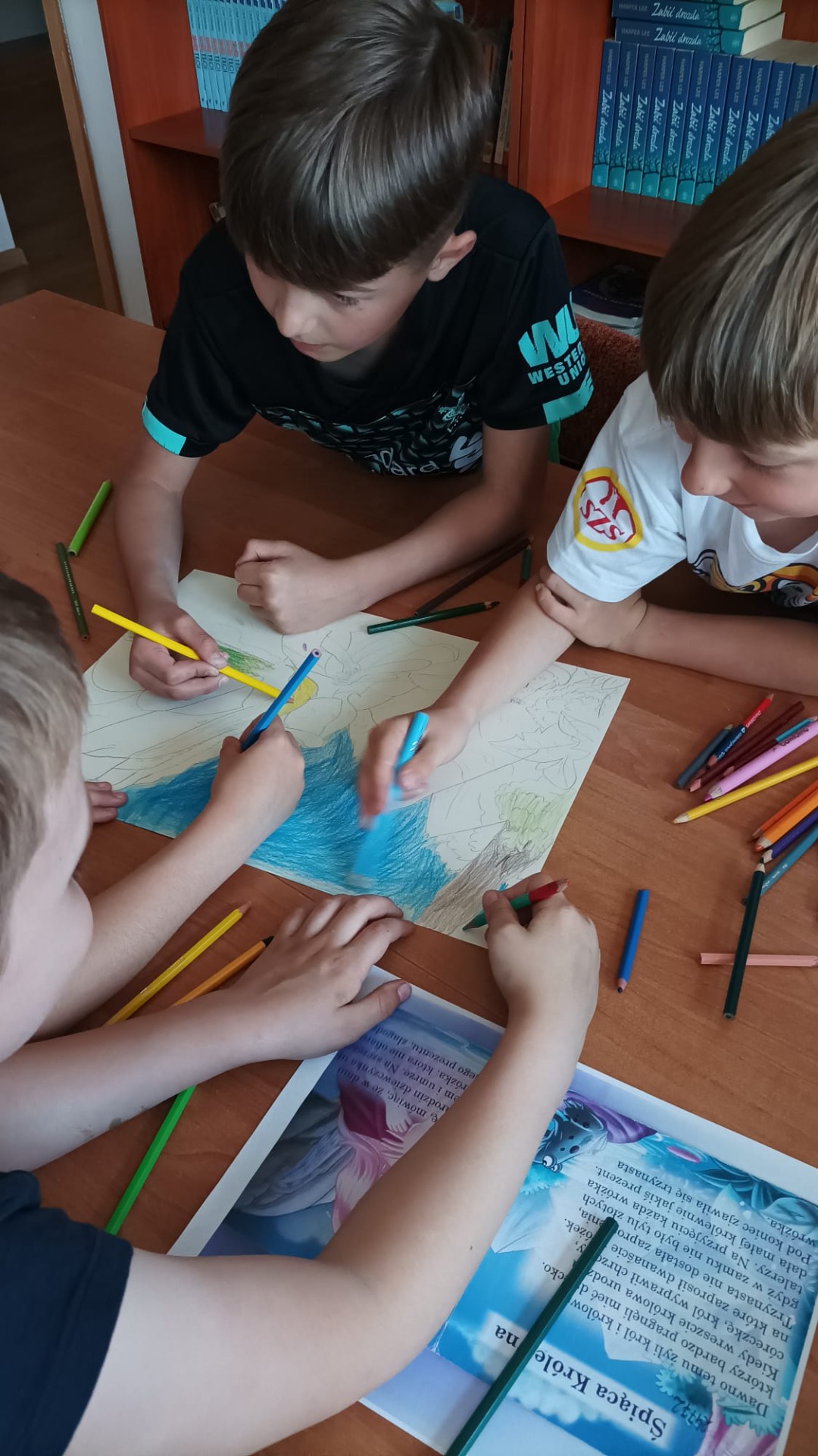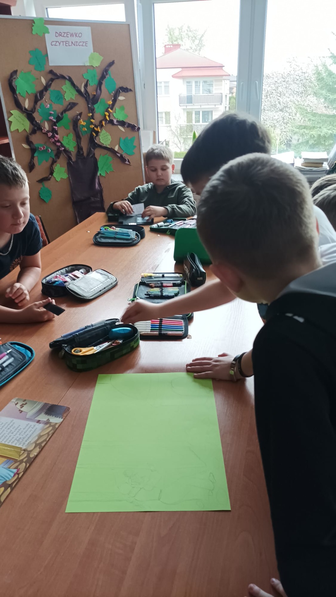 W miesiącach marzec – maj 2025 r. nauczyciele bibliotekarze realizowali innowację pedagogiczną „Teatr Ilustracji Kamishibai – Opowiemy Wam ...”. Adresatami innowacji byli uczniowie klas młodszych. Na zajęciach uczniowie zostali zapoznani z historią kamishibai, obejrzeli i wysłuchali teatr kamishibai „Bajka o soli” oraz opowiadania: „Żyrafa na rowerze, „Opowieść o Czarnym Smoku”, „Gadatliwy Ptak Narina”. Uczniowie samodzielnie stworzyli niepowtarzalne ilustracje do wybranych baśni, bajek i opowiadań: kl. I a „Czerwony Kapturek”, kl. I b „Zazdrosny Kabriolet”, kl. I c „Brzydkie Kaczątko”, kl. II a „Śpiąca królewna”, kl. II b „Dwa pociągi”, kl. II c „Jaś i Małgosia”, kl. III a „Mała Syrenka”, kl. III b „Alicja w Krainie Czarów”, kl. III c „Żabi król”.Teatrzyk kamishibai wzbudził duże zainteresowanie. Była to doskonała forma zabawy, edukacji i twórczego działania oraz promowania czytelnictwa wśród dzieci.