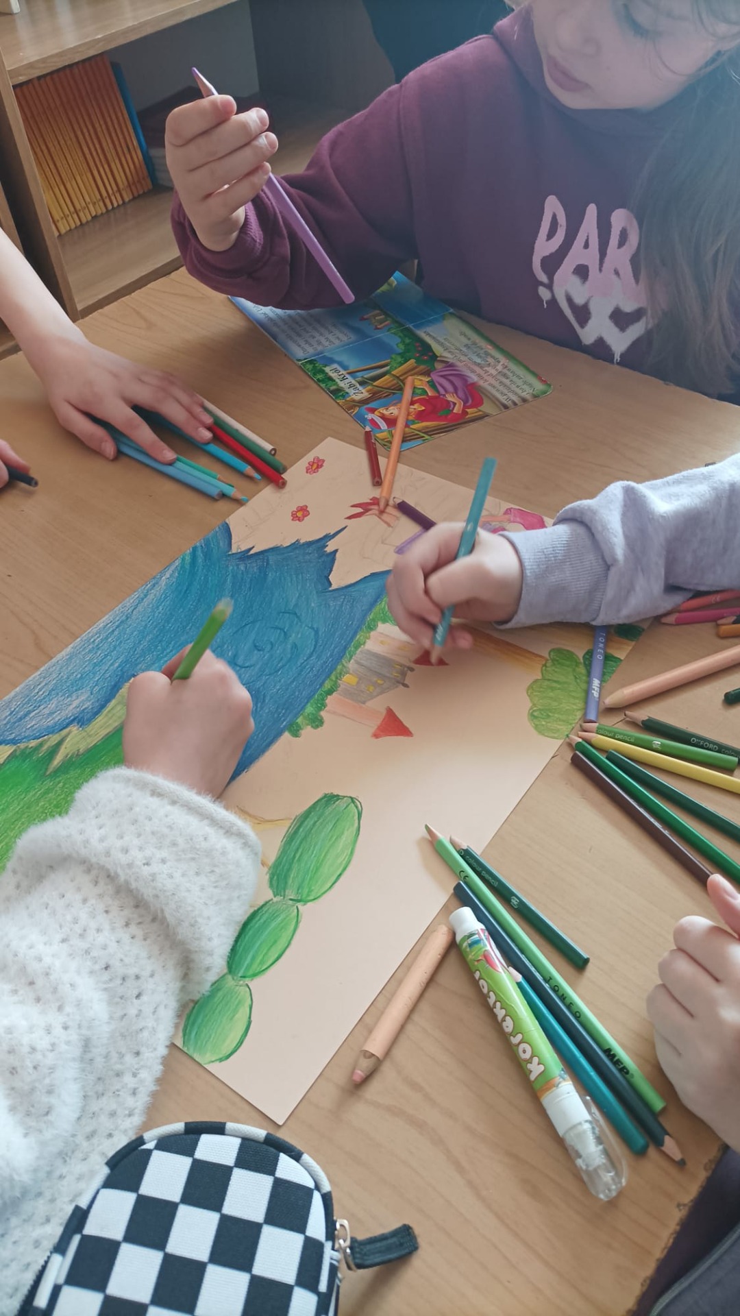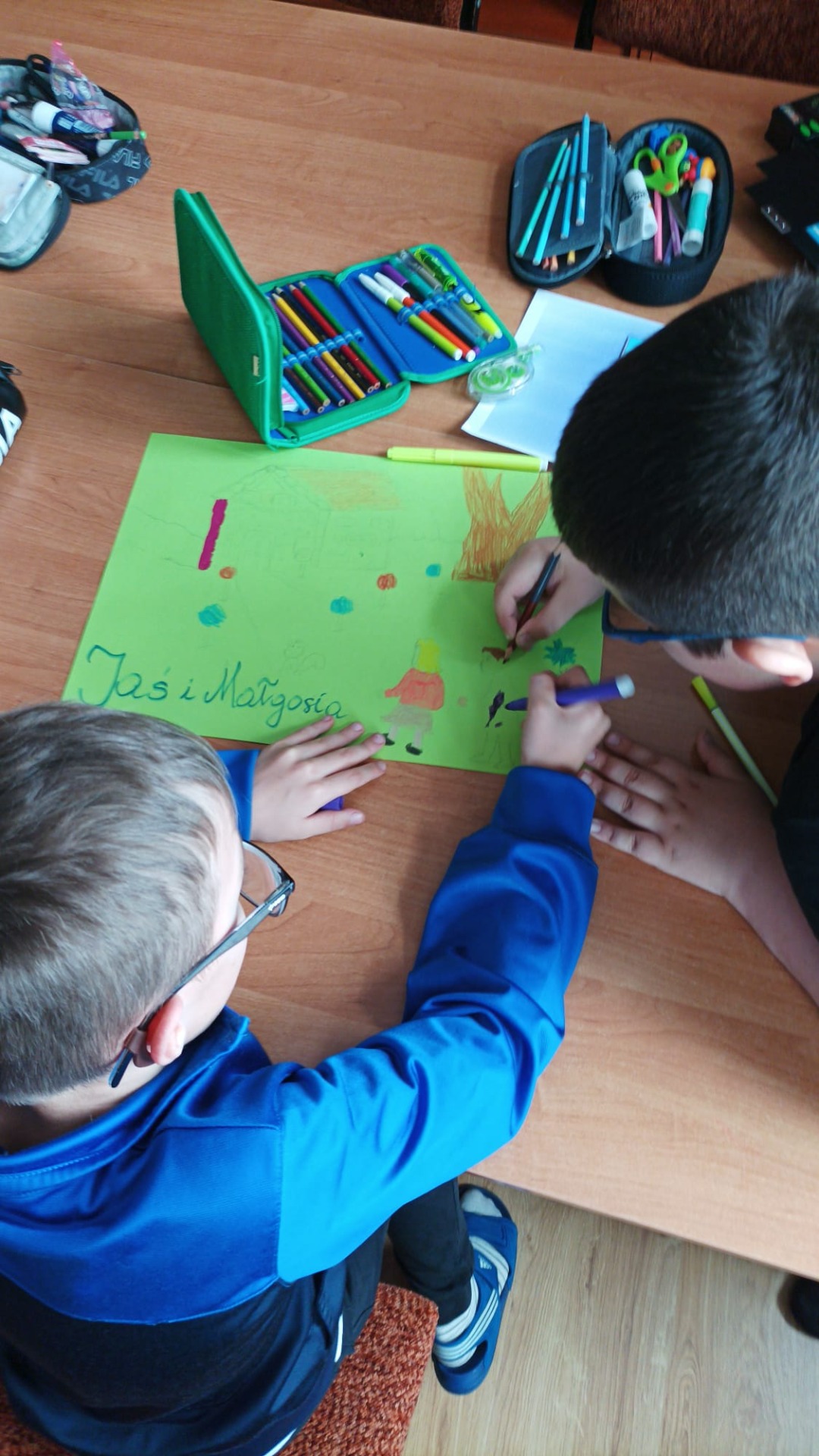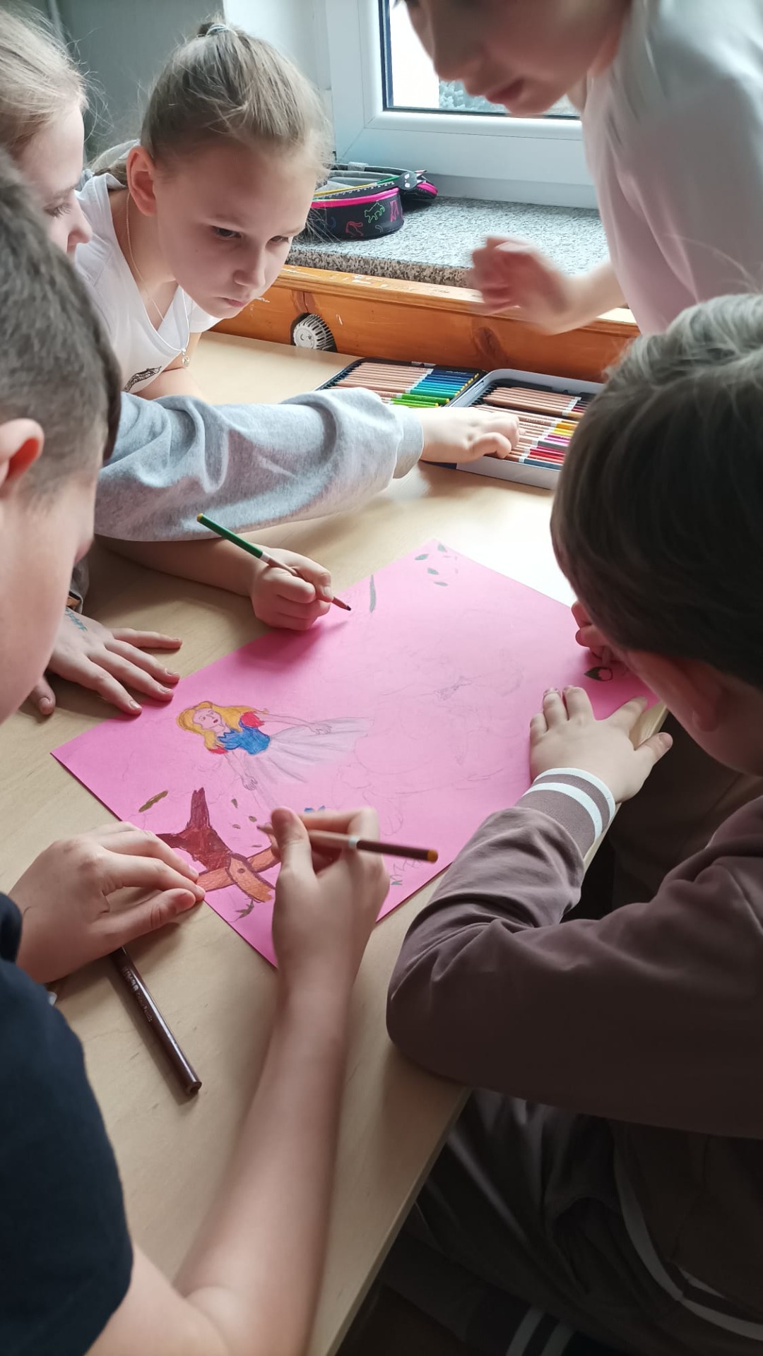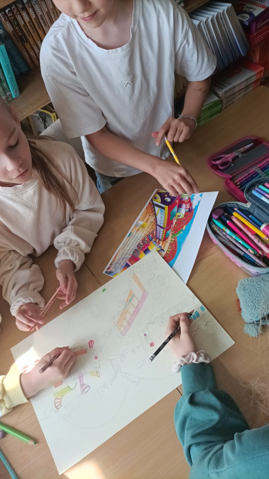 W miesiącach marzec – maj 2025 r. nauczyciele bibliotekarze realizowali innowację pedagogiczną „Teatr Ilustracji Kamishibai – Opowiemy Wam ...”. Adresatami innowacji byli uczniowie klas młodszych. Na zajęciach uczniowie zostali zapoznani z historią kamishibai, obejrzeli i wysłuchali teatr kamishibai „Bajka o soli” oraz opowiadania: „Żyrafa na rowerze, „Opowieść o Czarnym Smoku”, „Gadatliwy Ptak Narina”. Uczniowie samodzielnie stworzyli niepowtarzalne ilustracje do wybranych baśni, bajek i opowiadań: kl. I a „Czerwony Kapturek”, kl. I b „Zazdrosny Kabriolet”, kl. I c „Brzydkie Kaczątko”, kl. II a „Śpiąca królewna”, kl. II b „Dwa pociągi”, kl. II c „Jaś i Małgosia”, kl. III a „Mała Syrenka”, kl. III b „Alicja w Krainie Czarów”, kl. III c „Żabi król”.Teatrzyk kamishibai wzbudził duże zainteresowanie. Była to doskonała forma zabawy, edukacji i twórczego działania oraz promowania czytelnictwa wśród dzieci.