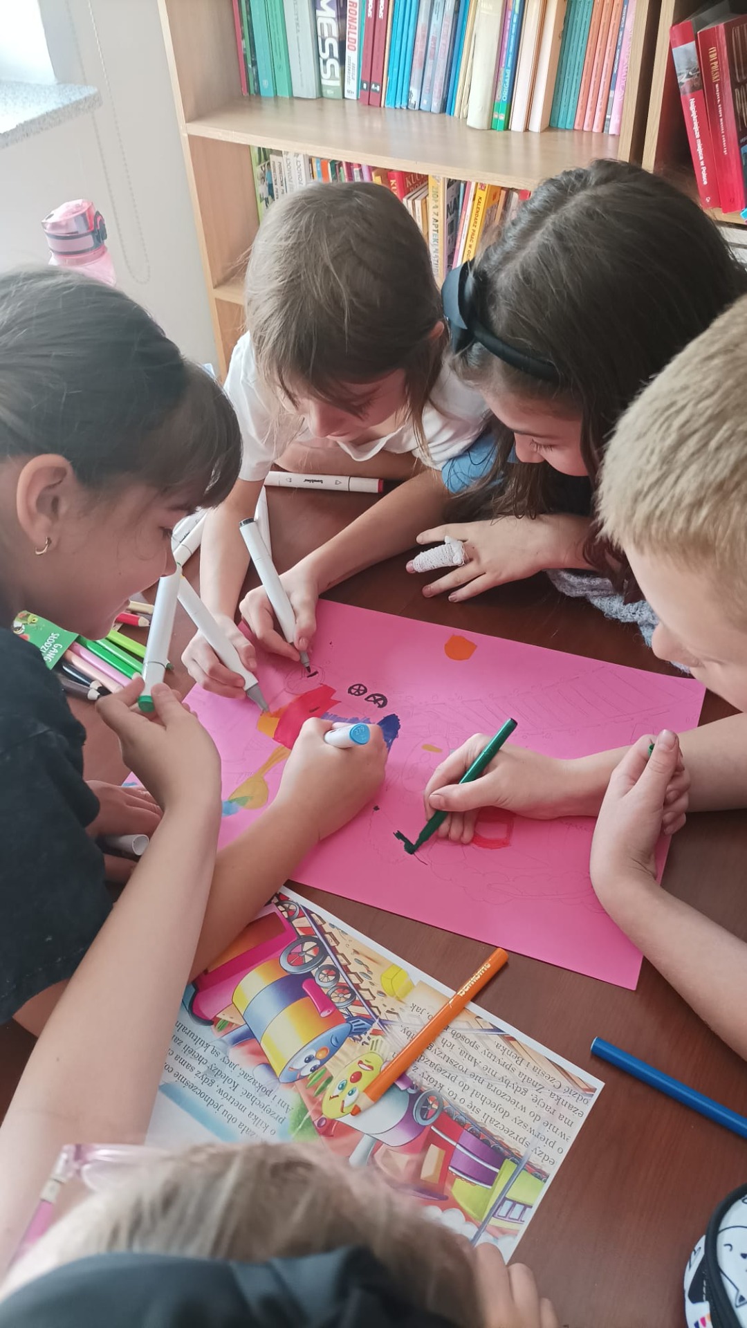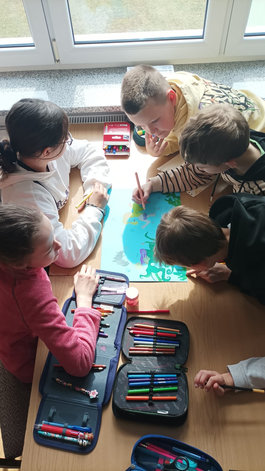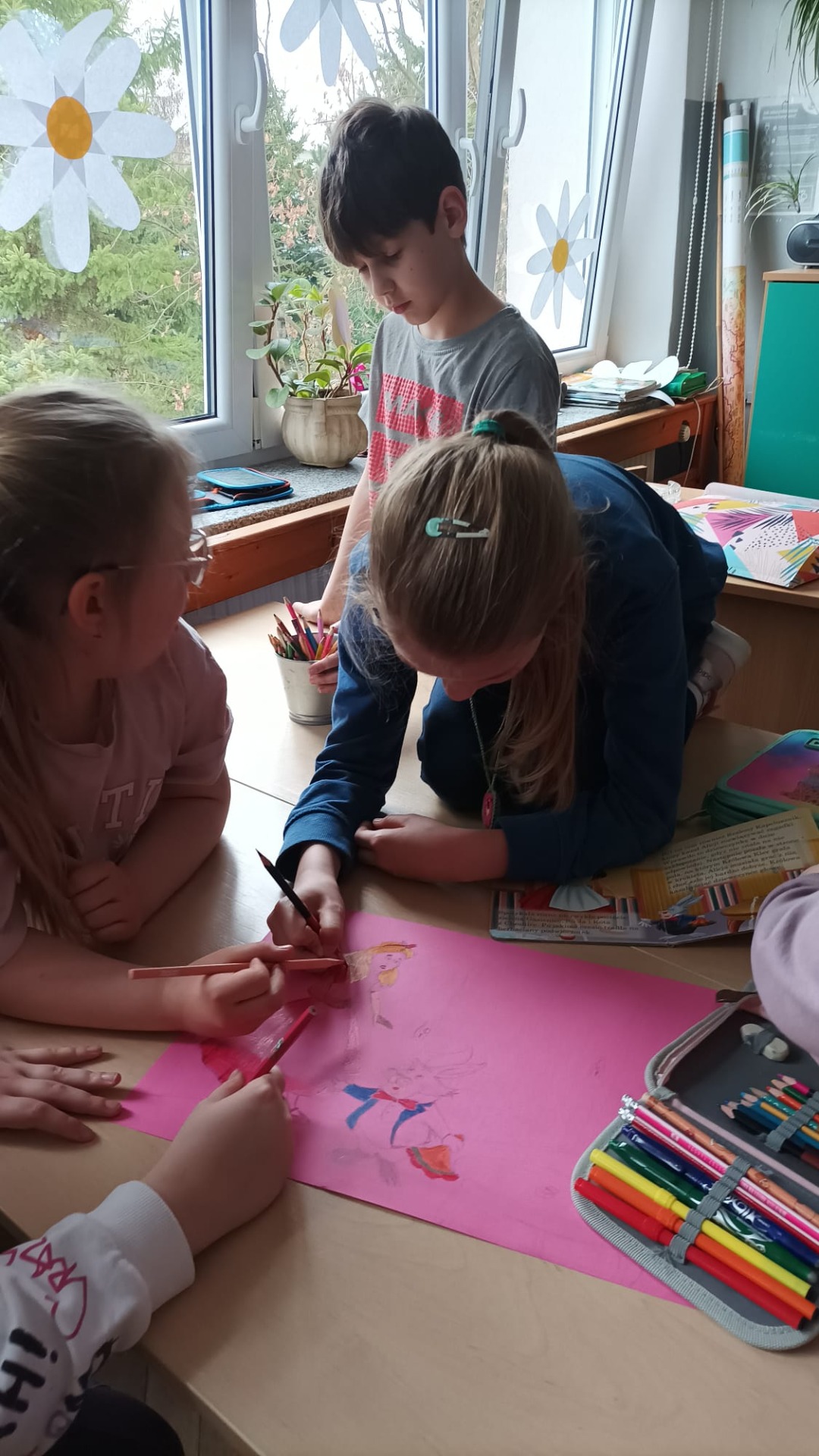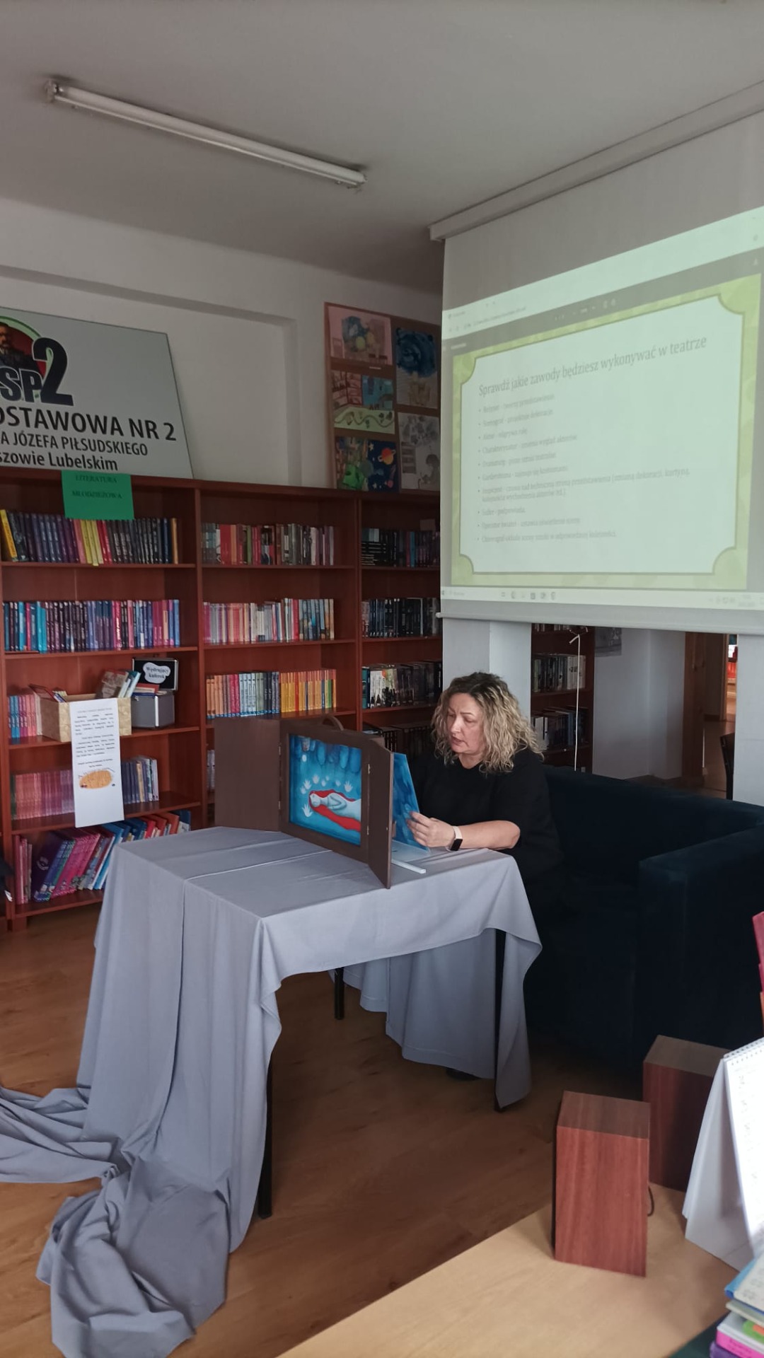 W miesiącach marzec – maj 2025 r. nauczyciele bibliotekarze realizowali innowację pedagogiczną „Teatr Ilustracji Kamishibai – Opowiemy Wam ...”. Adresatami innowacji byli uczniowie klas młodszych. Na zajęciach uczniowie zostali zapoznani z historią kamishibai, obejrzeli i wysłuchali teatr kamishibai „Bajka o soli” oraz opowiadania: „Żyrafa na rowerze, „Opowieść o Czarnym Smoku”, „Gadatliwy Ptak Narina”. Uczniowie samodzielnie stworzyli niepowtarzalne ilustracje do wybranych baśni, bajek i opowiadań: kl. I a „Czerwony Kapturek”, kl. I b „Zazdrosny Kabriolet”, kl. I c „Brzydkie Kaczątko”, kl. II a „Śpiąca królewna”, kl. II b „Dwa pociągi”, kl. II c „Jaś i Małgosia”, kl. III a „Mała Syrenka”, kl. III b „Alicja w Krainie Czarów”, kl. III c „Żabi król”.Teatrzyk kamishibai wzbudził duże zainteresowanie. Była to doskonała forma zabawy, edukacji i twórczego działania oraz promowania czytelnictwa wśród dzieci.
