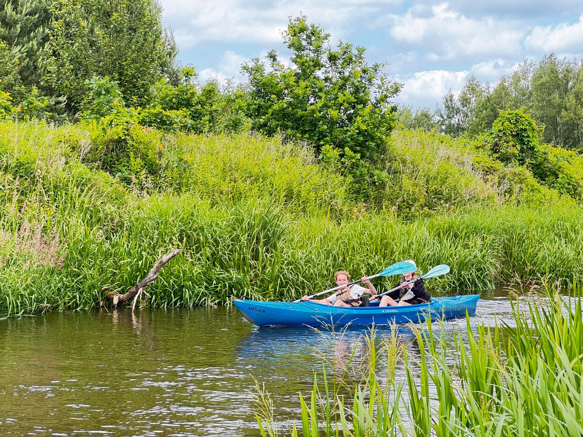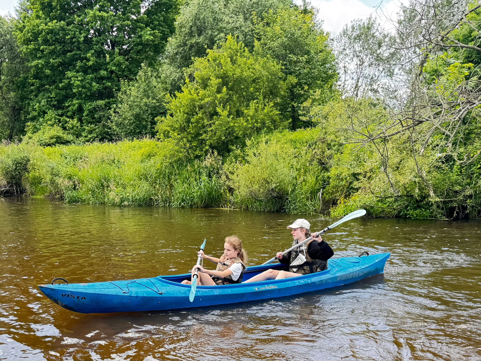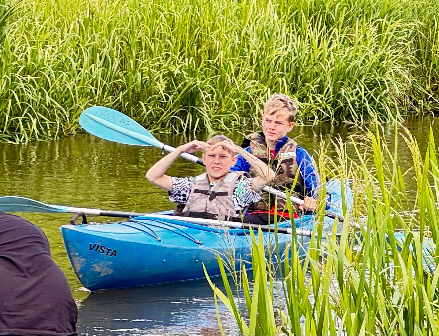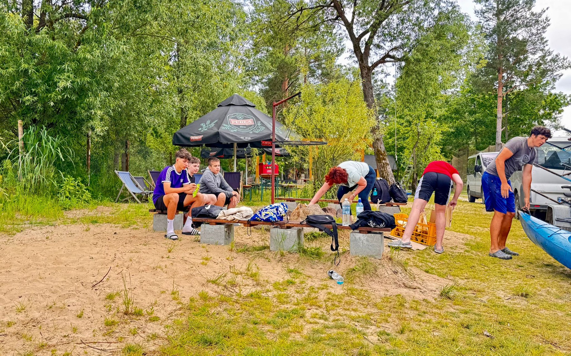 Rzeka Tanew przyjęła nas z otwartymi ramionami (i niektórych nawet przytuliła do dna). Spotkaliśmy ważki, ptaki, a podobno ktoś widział bobra – chociaż równie dobrze to mógł być… plecak kolegi. Po wodnych zmaganiach, gdy dotarliśmy wreszcie do celu, zamiast odpocząć – VI b zrobiła desant do wody! Kto mógł, wskakiwał do rzeki z piskiem i śmiechem. Były wyścigi w pluskaniu, pływanie „na leniwca” . Wszyscy ochłodzili się na maksa – niektórzy nawet tak bardzo, że długo nie mogli znaleźć ręcznika. A potem – klasyk: ognisko! Kiełbaski piekły się raz szybciej, raz wolniej (czasem z lekką nutą węgla), ale smakowały jak z najlepszej restauracji. A przy okazji – dużo śmiechu. Wróciliśmy zmęczeni, trochę mokrzy, ale mega szczęśliwi. Ten wyjazd to była klasa sama w sobie – VI b pokazała, że nie boi się wyzwań, a przygody na wodzie (i w wodzie!) to coś, co zapamiętamy na długo.😀👍☀️