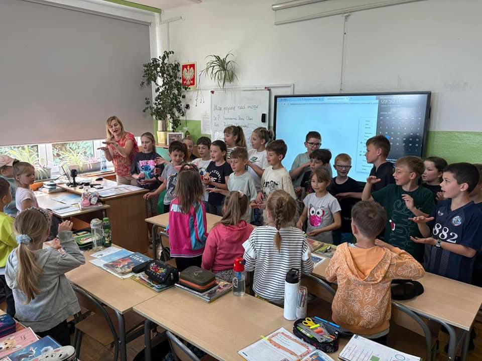 Naszą szkołę odwiedziły Żabki.🐸🙃 Nie takie prawdziwe, ale wesołe i sympatyczne dzieci z Samorządowego Przedszkola nr 1.👍😀 Po minach widać, że chyba im się u nas podobało.🥰 Dziękujemy.💓