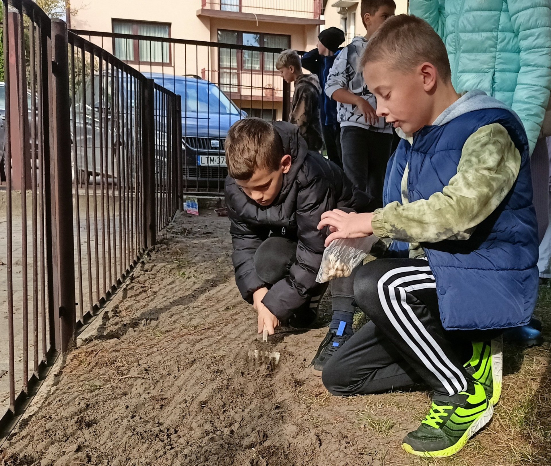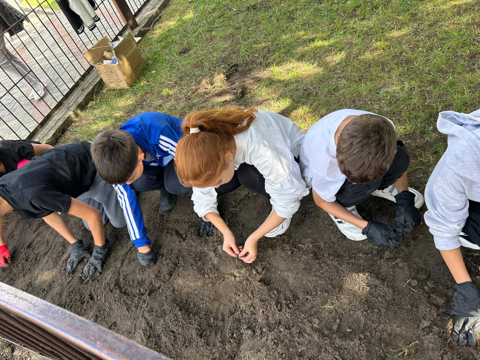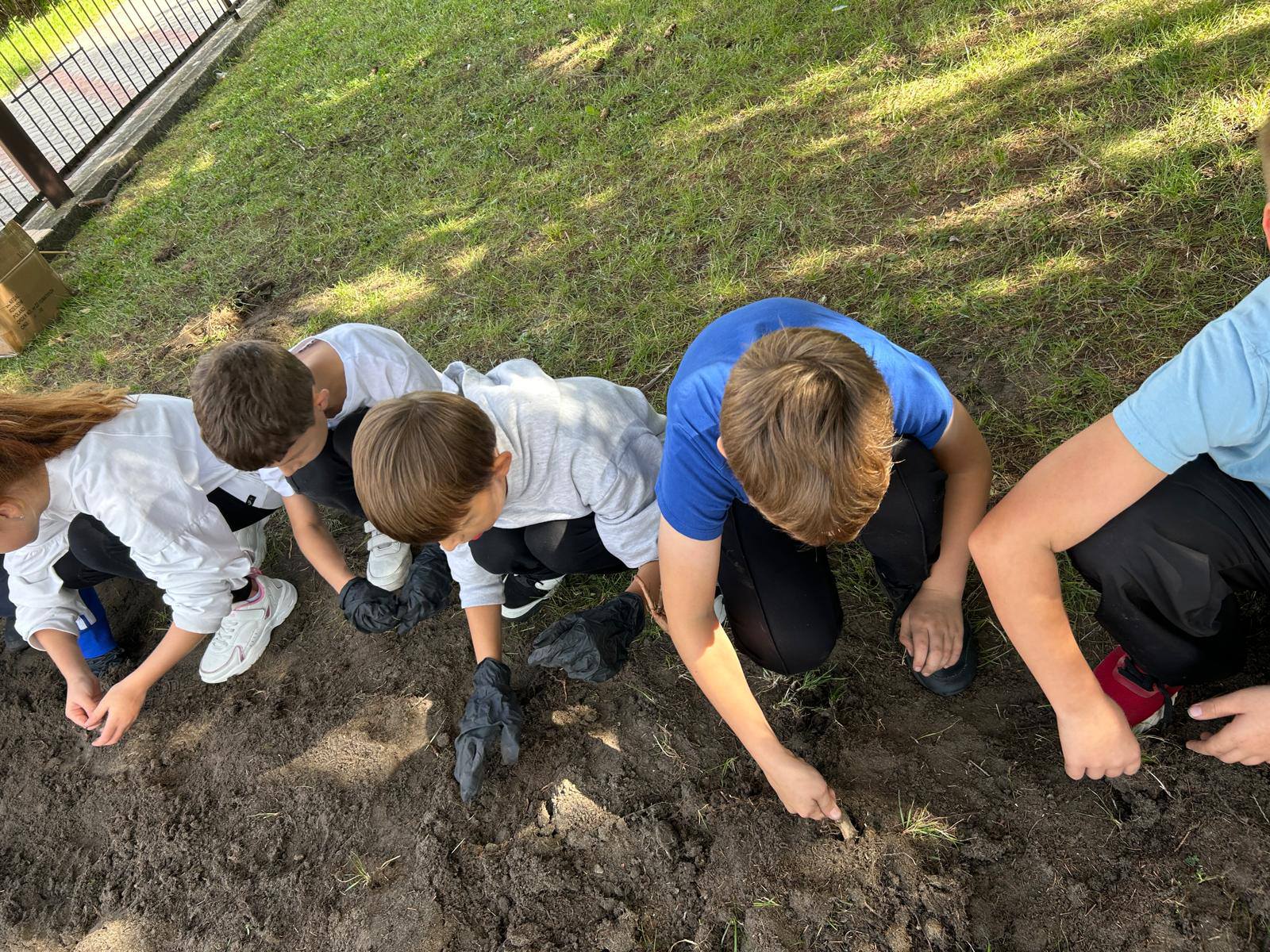 Trzecioklasiści wpadli na pomysł ukwiecenia terenu przy szkole.😇 Z pomocą rodziców zakupione zostały cebulki kwiatów. Uczniowie pełni zapału i ekscytacji sadzili tulipany, żonkile, szafirki, krokusy, hiacynty i inne.🌾🌹🌼 Niektórzy odkryli w sobie talent do ogrodnictwa.😉🤠 Teraz z niecierpliwością oczekujemy wiosny i pierwszych kwiatów w naszym ogródku.🤩 Trzymajcie kciuki.✊😀