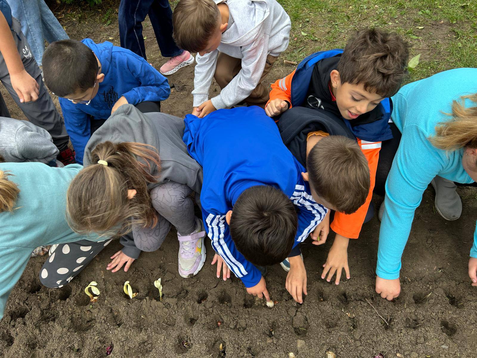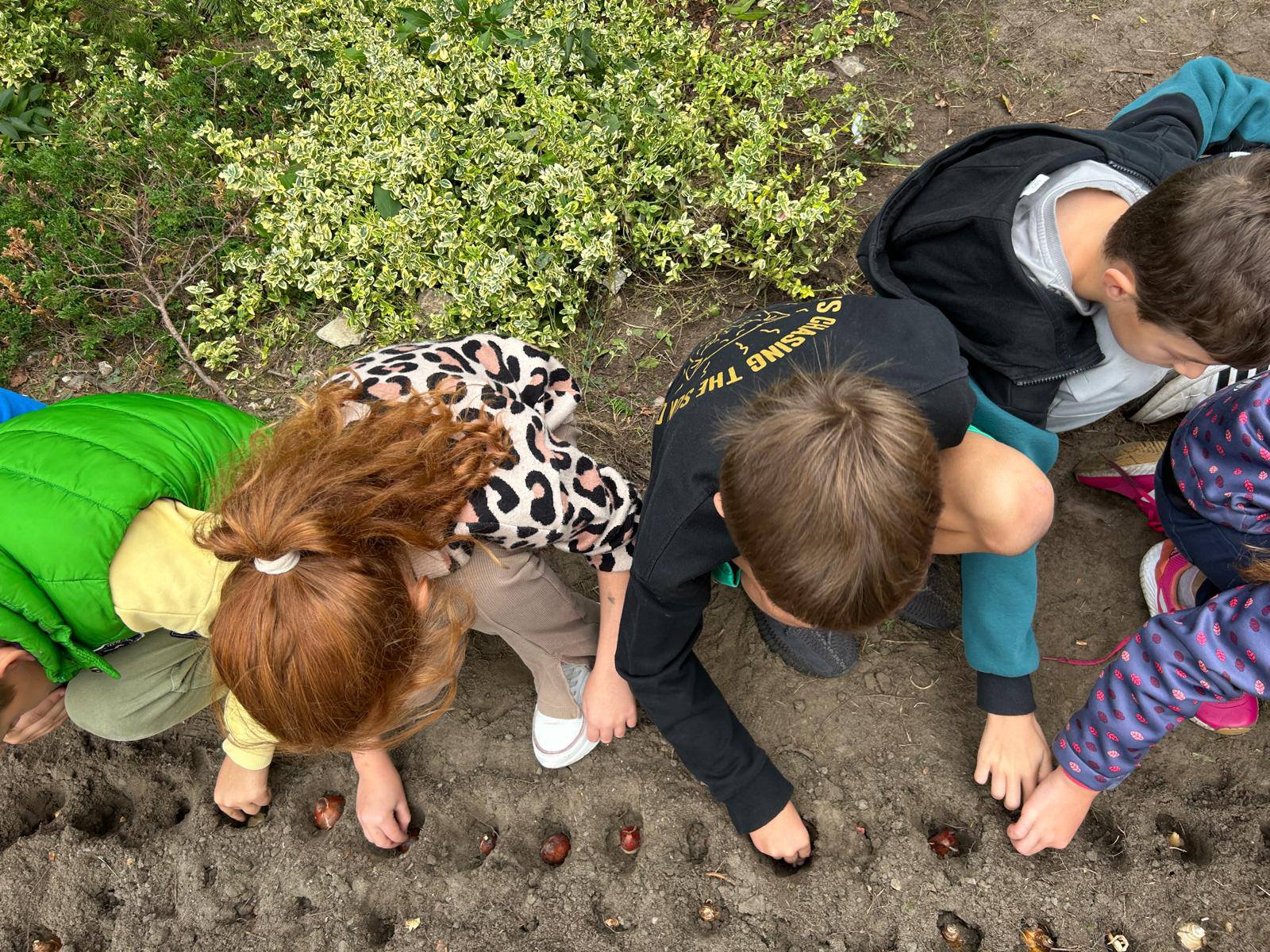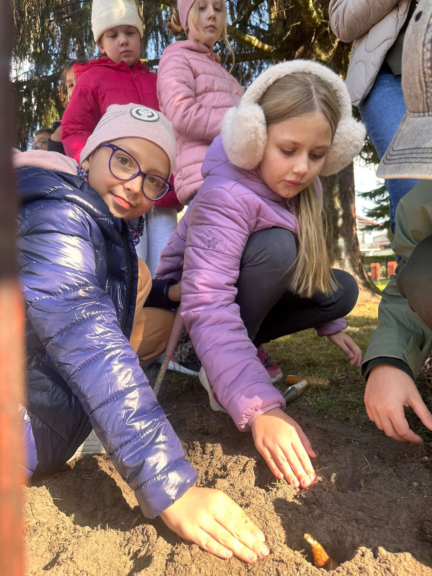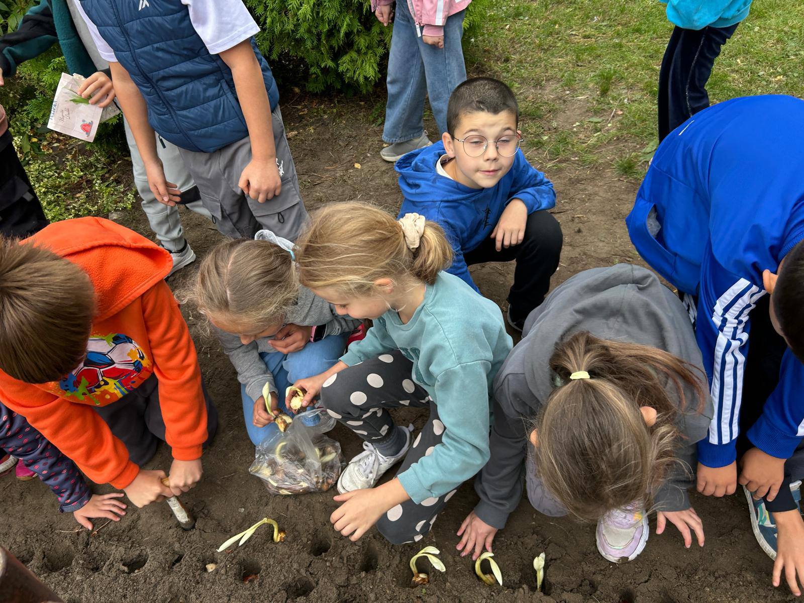 Trzecioklasiści wpadli na pomysł ukwiecenia terenu przy szkole.😇 Z pomocą rodziców zakupione zostały cebulki kwiatów. Uczniowie pełni zapału i ekscytacji sadzili tulipany, żonkile, szafirki, krokusy, hiacynty i inne.🌾🌹🌼 Niektórzy odkryli w sobie talent do ogrodnictwa.😉🤠 Teraz z niecierpliwością oczekujemy wiosny i pierwszych kwiatów w naszym ogródku.🤩 Trzymajcie kciuki.✊😀